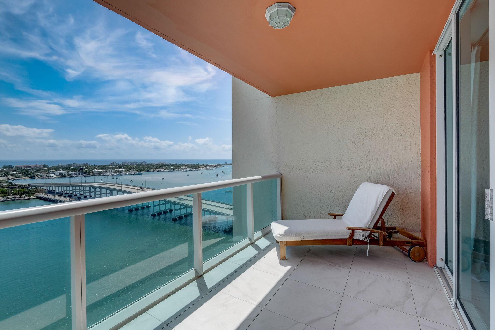WELCOME TO COASTAL LIVING! This one-of-kind 20th floor retreat situated directly on the widest part of the pristine blue intracoastal, Atlantic Ocean, Singer Island, boating harbor and nighttime city lights. Unique 2 bd. 3 ba. home plus large den/3rd bedroom has endless upgrades, meticulously designed contemporary white kitchen with newer upgraded appliances: paneled Thermador refrigerator and dishwasher, induction cooktop, Wolf microwave, Bosch oven, extra storage, long counter height quartz island, perfect for entertaining, large master suite with 2 walk-in closets, walk out of your 9ft impact floor to ceiling sliders to enjoy morning sunrises, sea life, and boaters from your private balcony, remodeled Inside laundry room for your convenience,