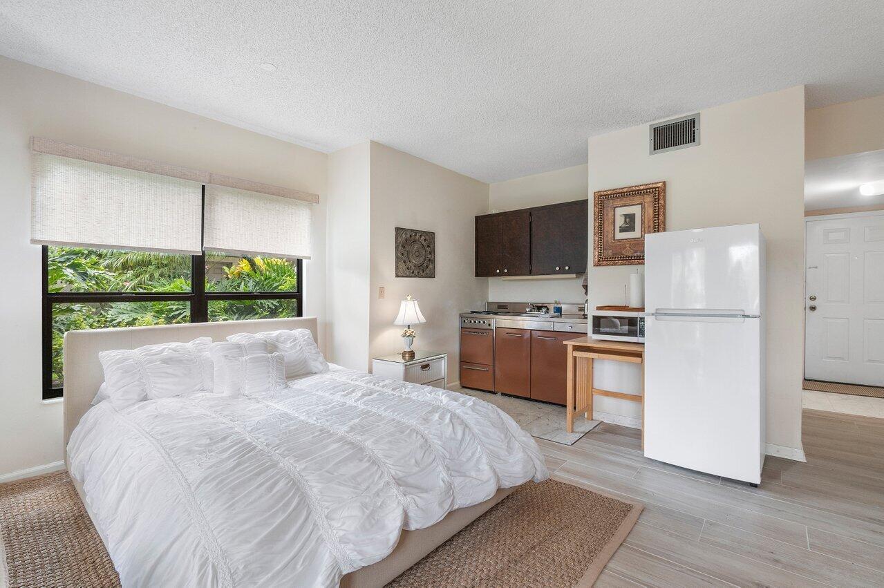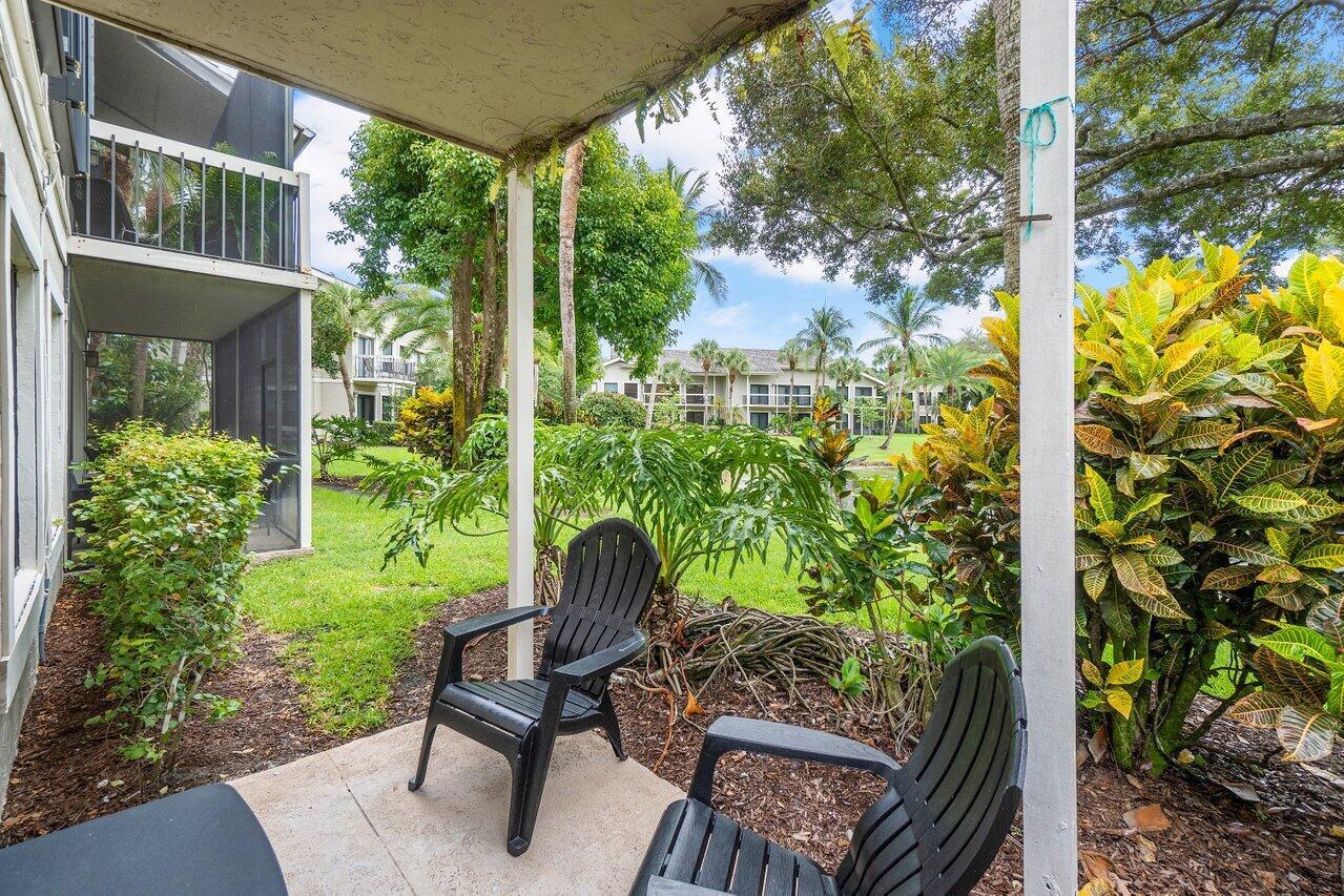 Available annually for $2,000 per month, Seasonal rate is $3,000 per month beginning January 16th, 2025. Nicely furnished studio in Tennis Lodges at Polo Club with amazing water views right from the patio. New wood-like tile flooring has been installed, within walking distance to community heated pool. Unit is located on the first floor and has a beautiful pond view from the patio. You will find everything you'll need during your stay, including washer/dryer inside the apartment, linens, kitchen utensils, dinnerware, cable and wifi.