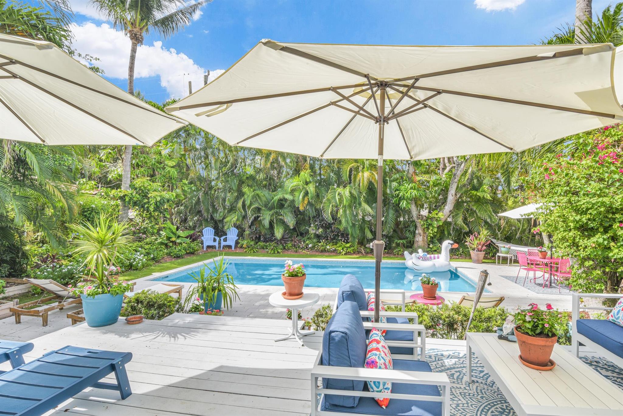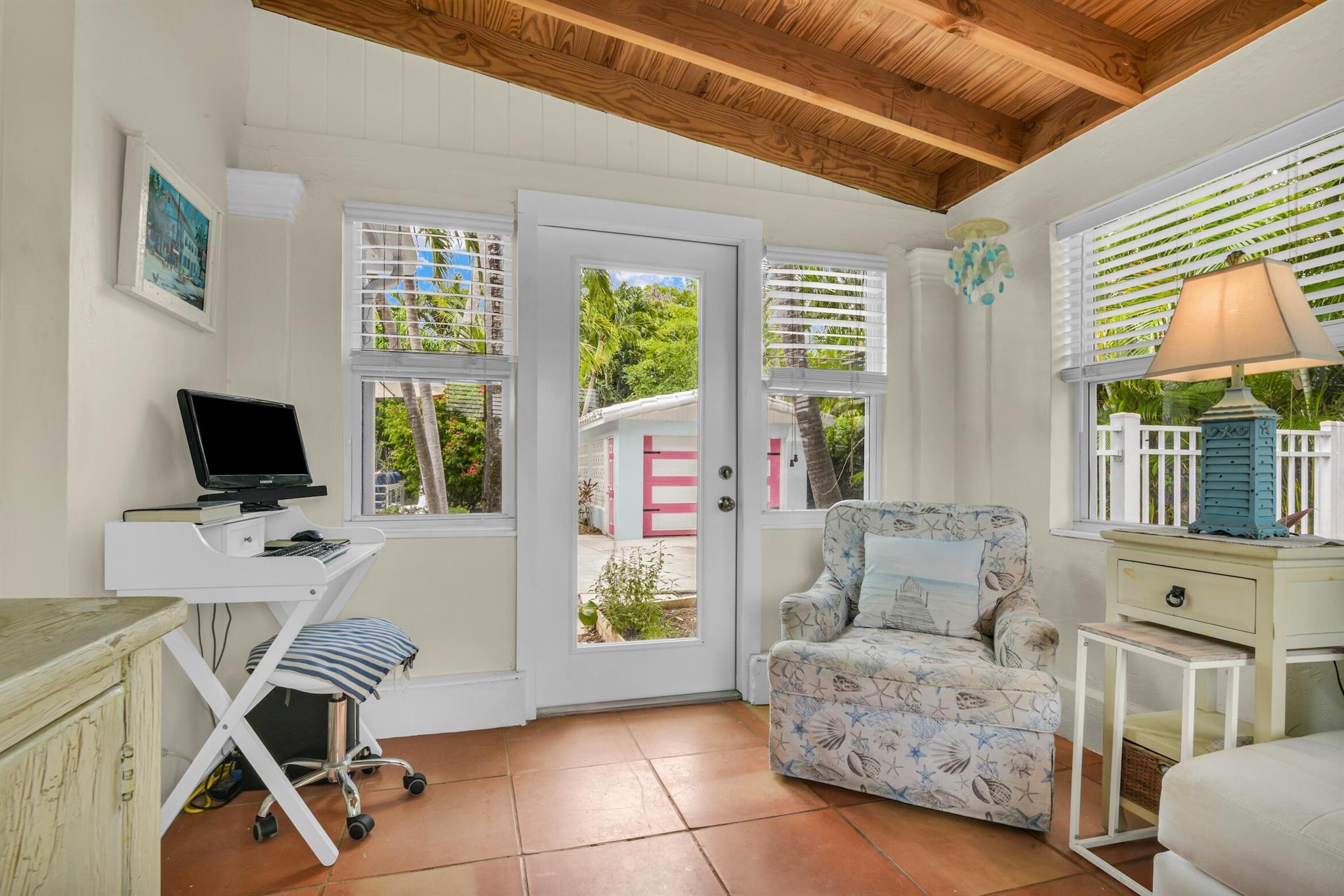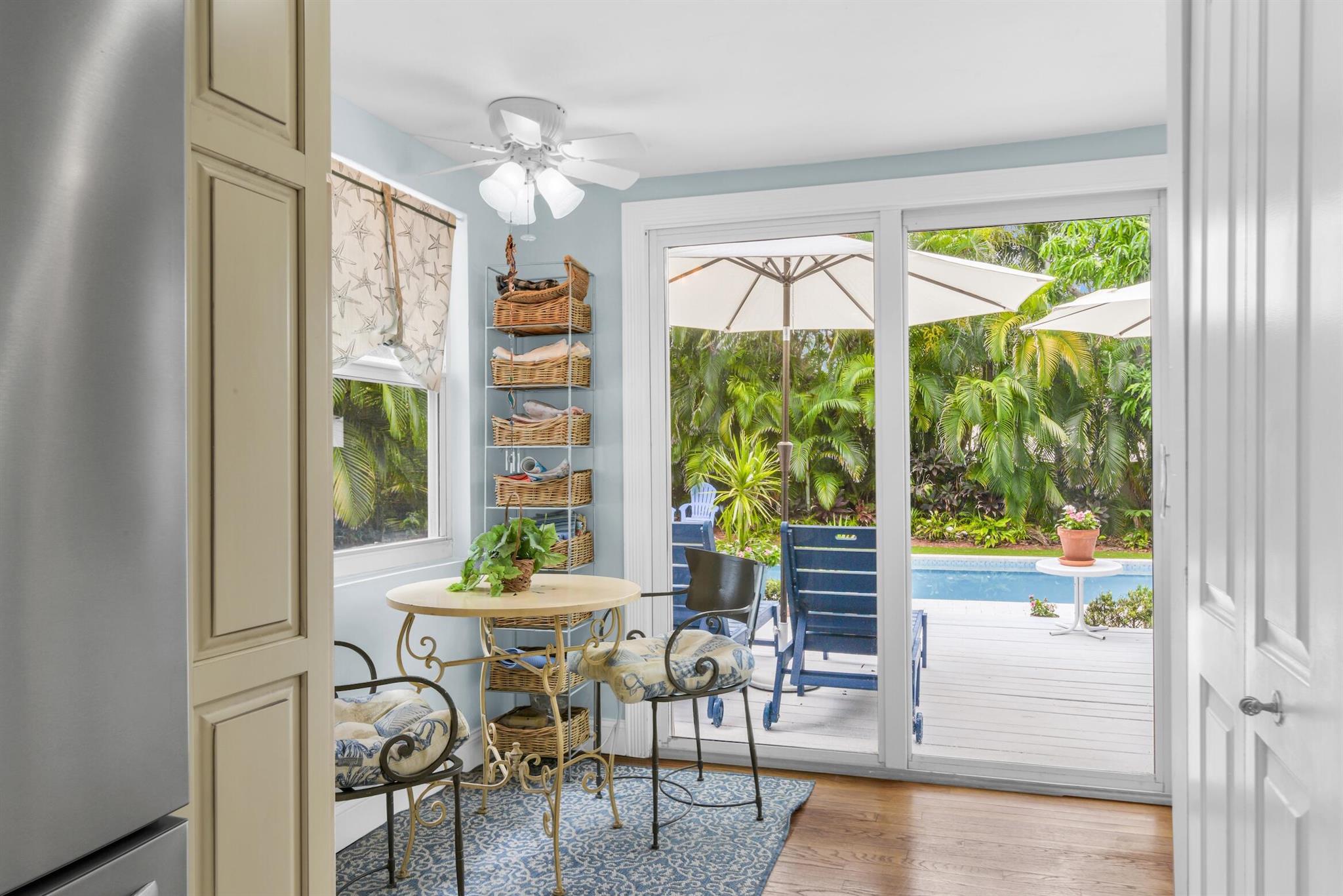 Rent annually or seasonally. Key West style beach house only steps to the beach and so easy to walk to all the downtown restaurants, shops and events. New 30' x 15' salt-chlorinated pool with heater and chiller. Wood-burning fireplace, spacious kitchen with breakfast nook in addition to dining room. Separate sunroom could be used as family room, office, or play room. Large, private backyard surrounded by trees with gated space to park two cars and an additional couple cars in the driveway. Dogs allowed--no weight limit.