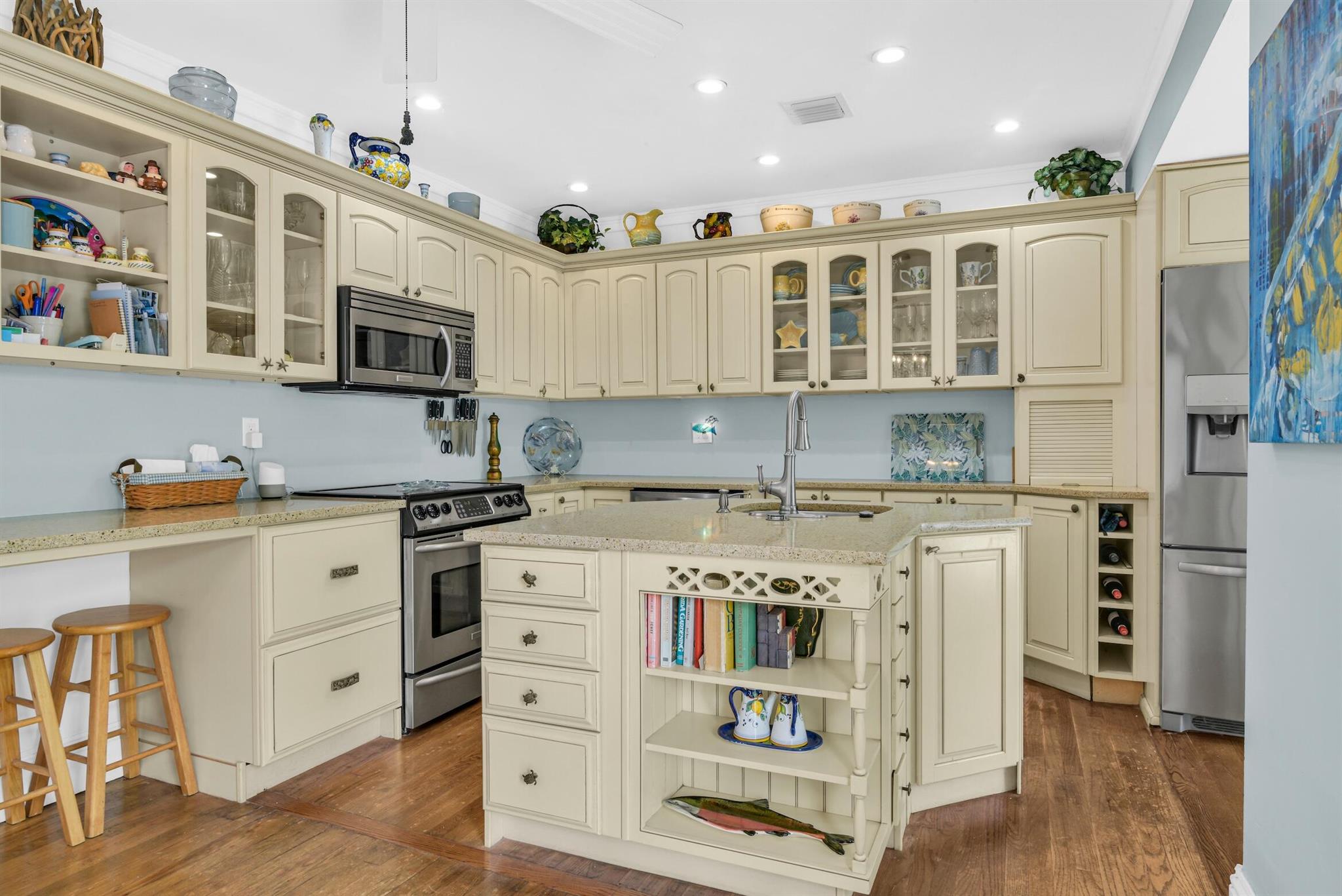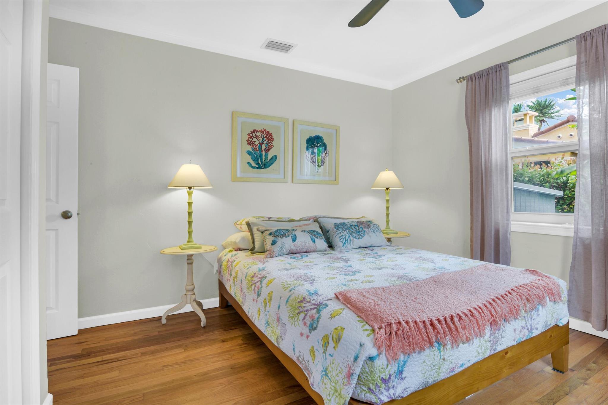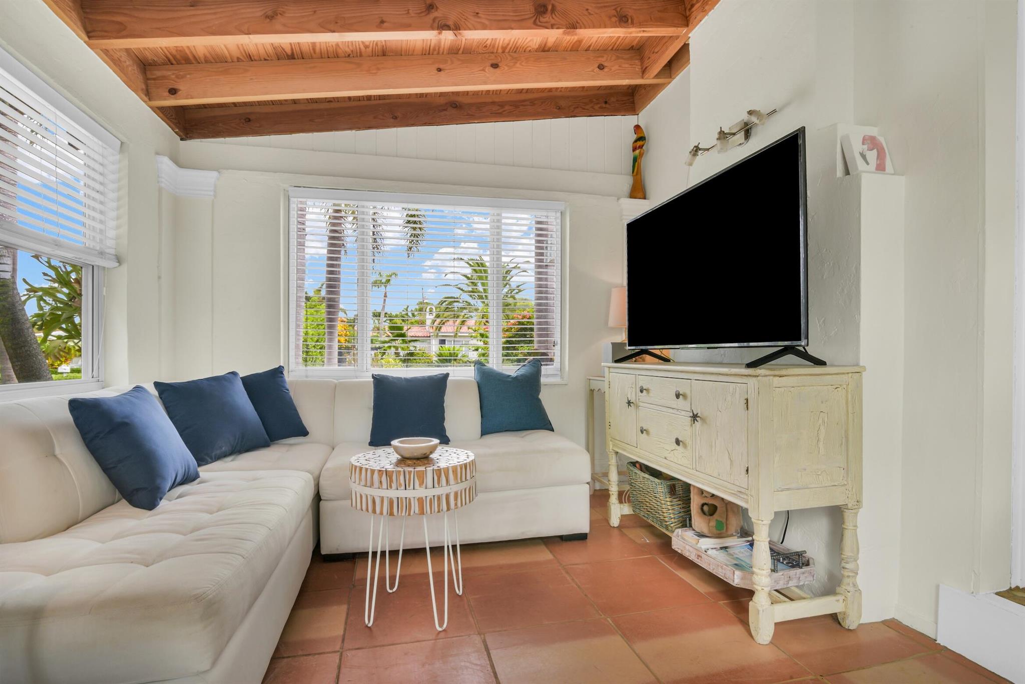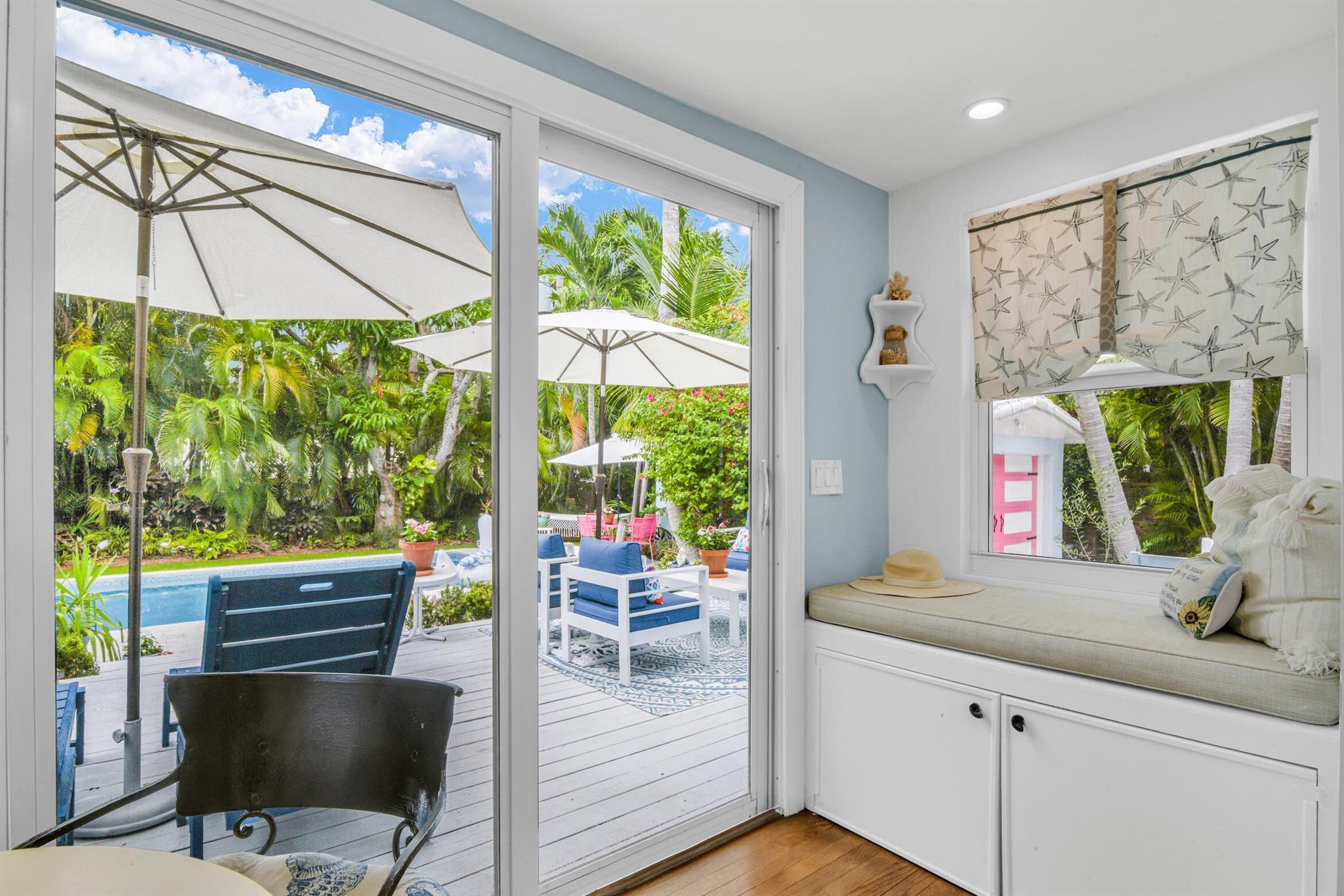 Rent annually or seasonally. Key West style beach house only steps to the beach and so easy to walk to all the downtown restaurants, shops and events. New 30' x 15' salt-chlorinated pool with heater and chiller. Wood-burning fireplace, spacious kitchen with breakfast nook in addition to dining room. Separate sunroom could be used as family room, office, or play room. Large, private backyard surrounded by trees with gated space to park two cars and an additional couple cars in the driveway. Dogs allowed--no weight limit.