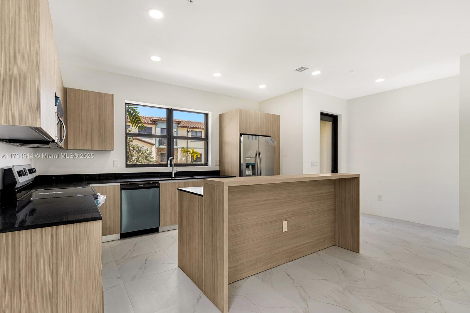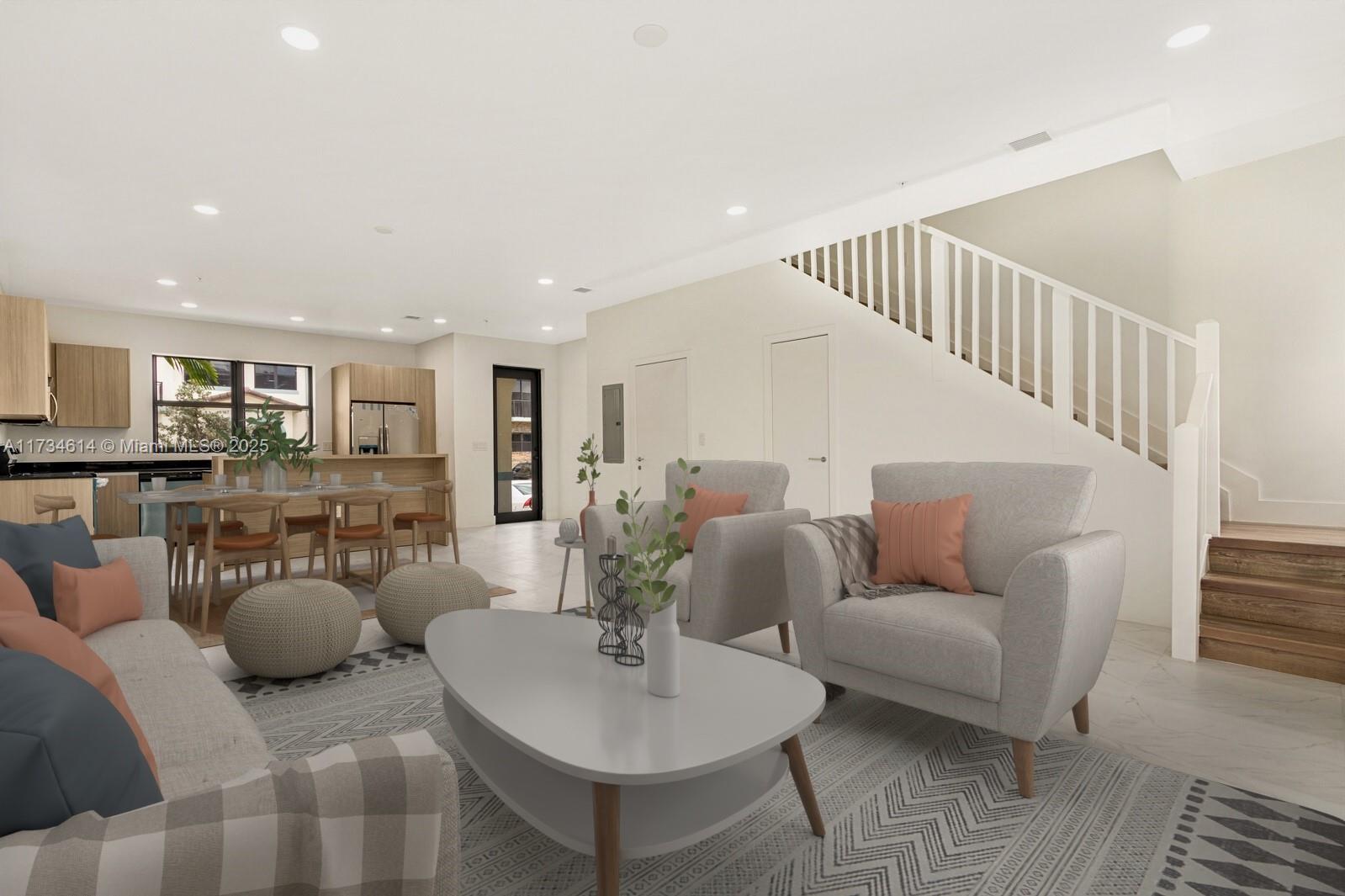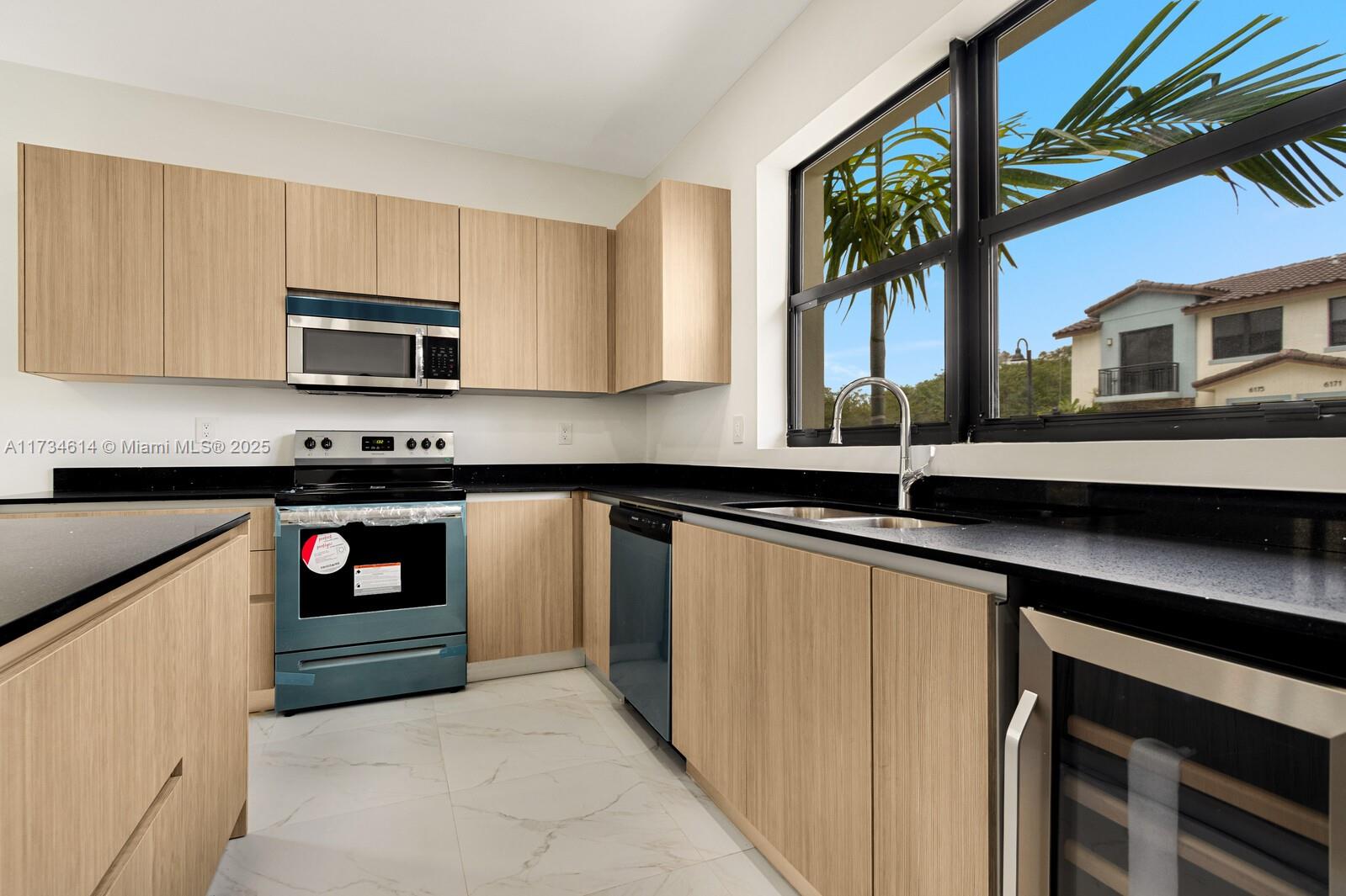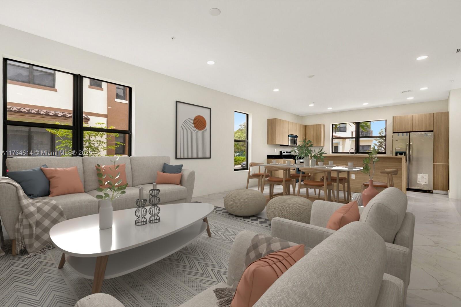 You will LOVE to live in THE BEST townhome in a newer, quiet & friendly community. Its corner location gives you extra windows, more natural light, added space on the side & is the closest to the huge park & shopping nearby. Enjoy high quality modern finishes throughout 2 levels with volume ceilings & LED lights. Cook in your chef's kitchen with stainless steel appliances, quartz countertops & wine storage; first floor is all open & includes a powder room; impact glass to protect from hurricanes & keep the inside quiet & peaceful. Porcelain floors on the 1st floor and laminate on the 2nd, which also includes all the bedrooms, 2 full baths; washer & dyer and ample closet space for a comfortable living for you & yours. A fabulous landlord looking for an awesome tenant @ a great rental price!