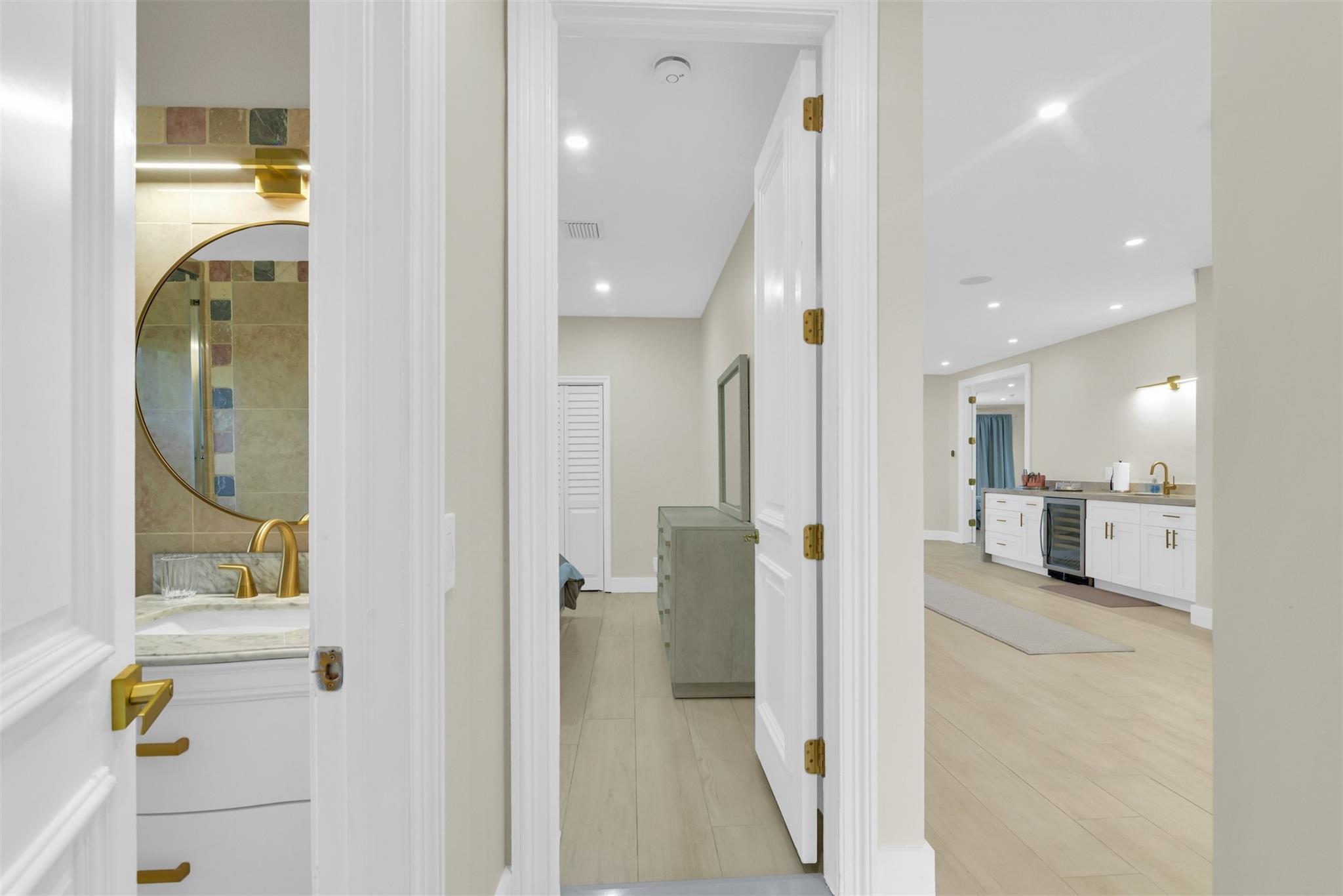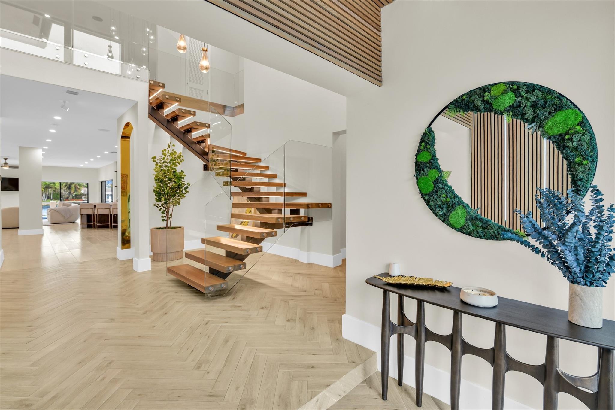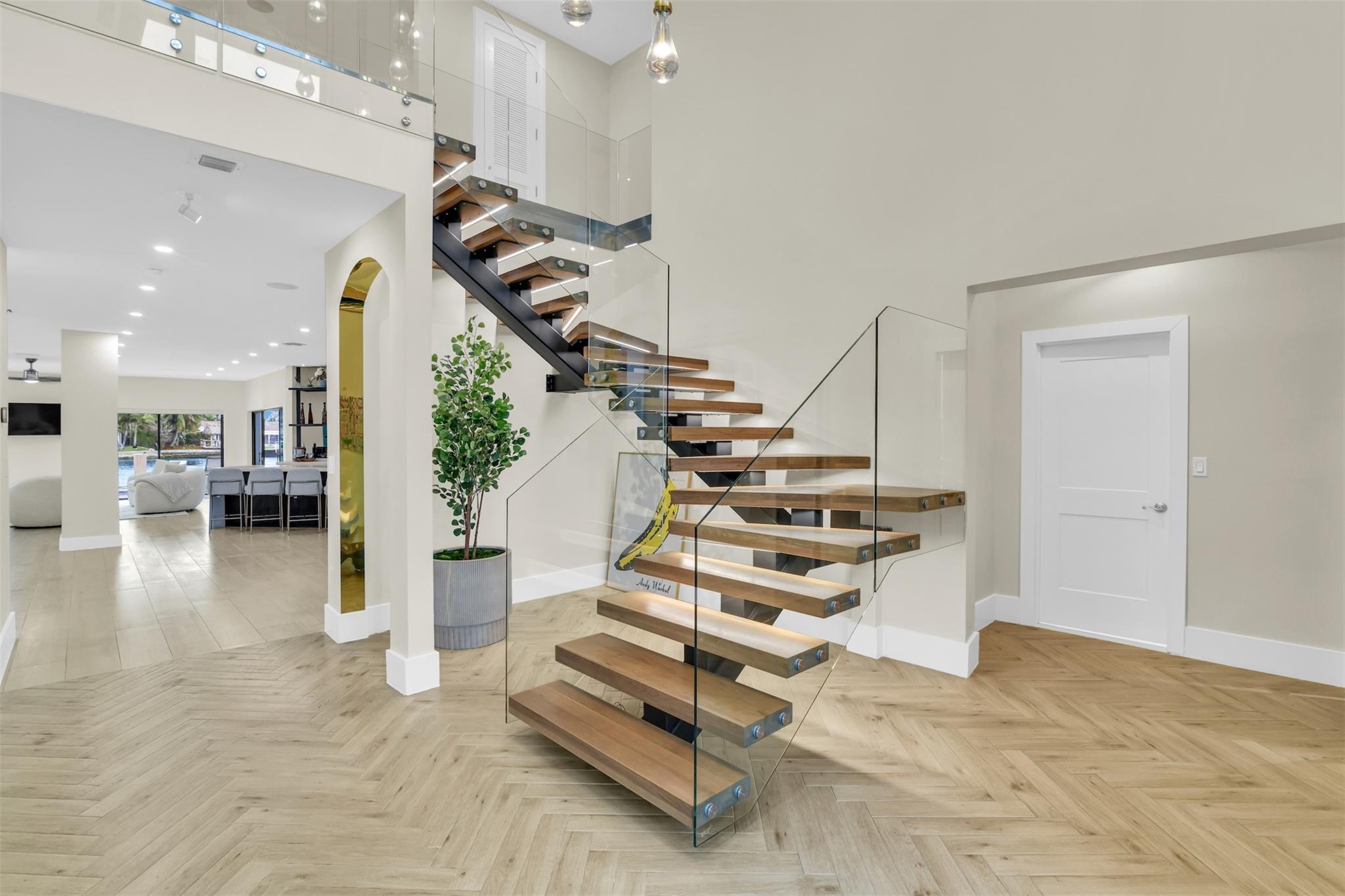 Stunningly remodeled, intracoastal front 6 bedroom, 6 bathroom home ready for you to move in. Every inch of this property as been transformed with the finest finishes. Beautiful foyer welcomes you into this 5,196 square foot masterpiece. Chef's kitchen is dressed with Cristallo Island, SubZero refrigerator and freezer, Wolf range, and wall espresso machine. The wet bar with wine cooler leads you to your open family room and formal dining room with incredible views of the intracoastal waterway. Summer kitchen for entertaining at your gorgeous pool overlooking 60 ft. dock. Fully equipped theater room + separate office on the first floor. Second floor has very large loft and coffee bar along with a fireplace. Primary bedroom boasts water views and extra large shower with dual shower heads.