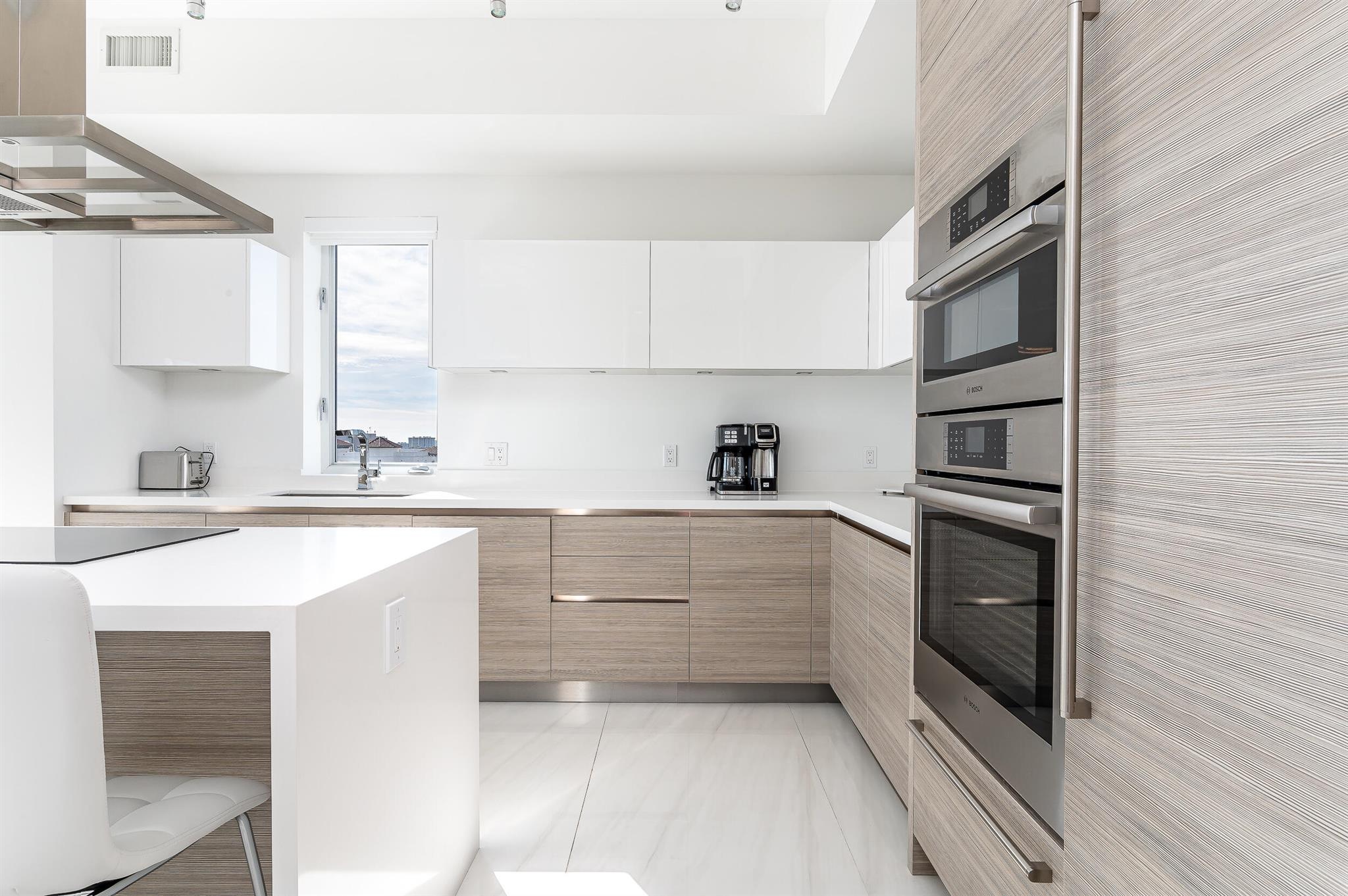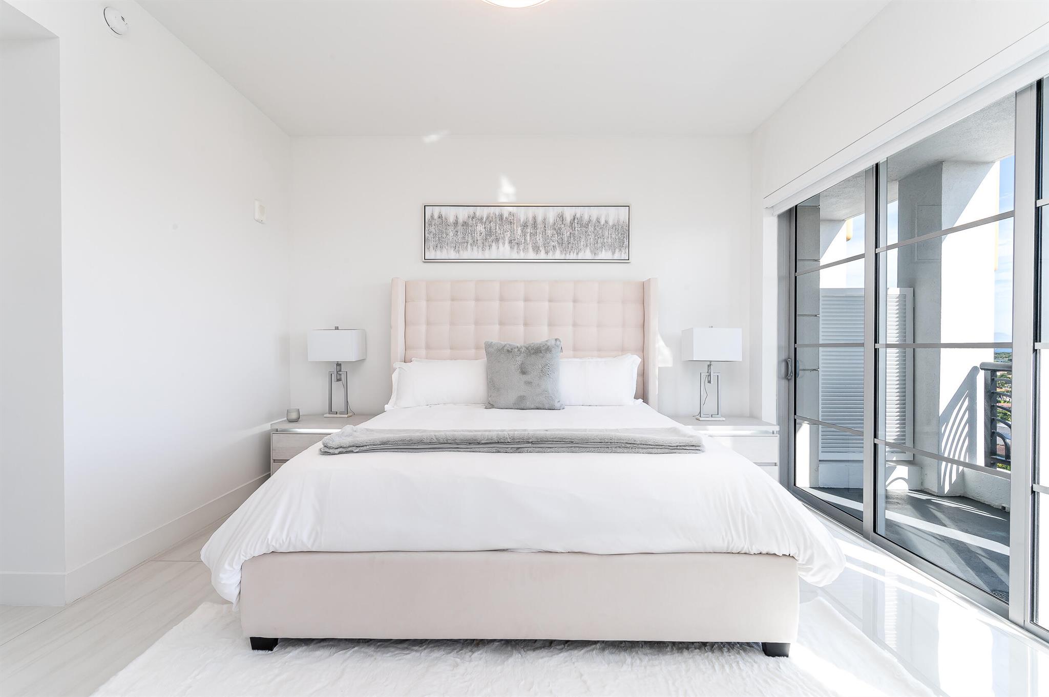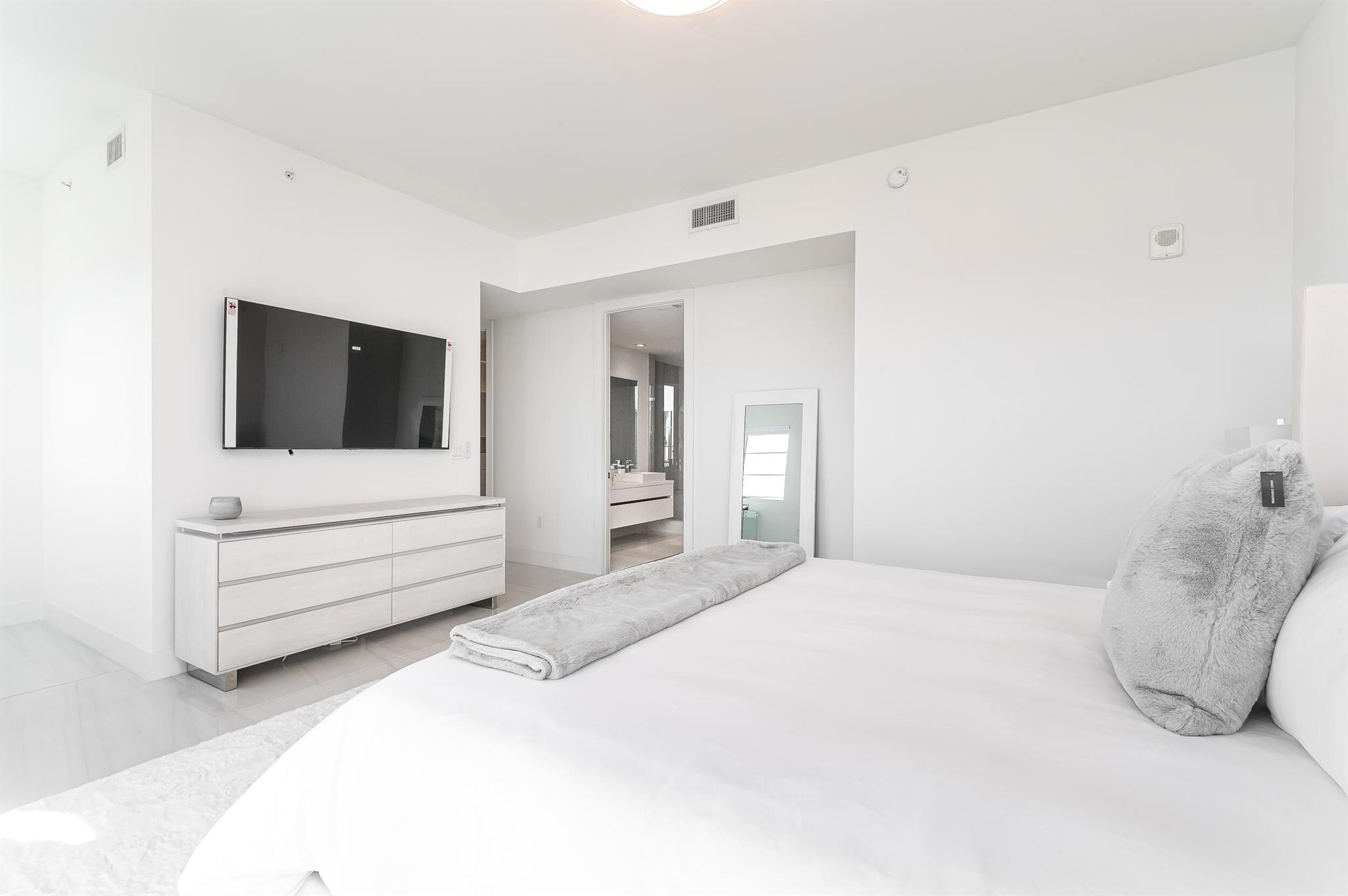 FULLY FURNISHED and TURNKEY. High Floor South East Corner 2-Bedroom Rental in Tower 155 with Stunning Ocean Views! This Fully Furnished beautifully appointed residence has roughly 2,000 total square feet with fantastic natural light and beautiful views. Great open concept floor plan with upgrades throughout. Italian porcelain tile floors, 10-foot ceilings, Chef's kitchen with handmade Italian cabinetry, Quartz counters, and top-of-the-line Bosch appliances with double wall oven, center island and custom waterfall feature. Spacious master suite with walk-in closet and luxurious bathroom featuring a dual sink floating vanity and high-end fixtures. Walk in laundry room with a lot of storage. Built-out closets and motorized shades.