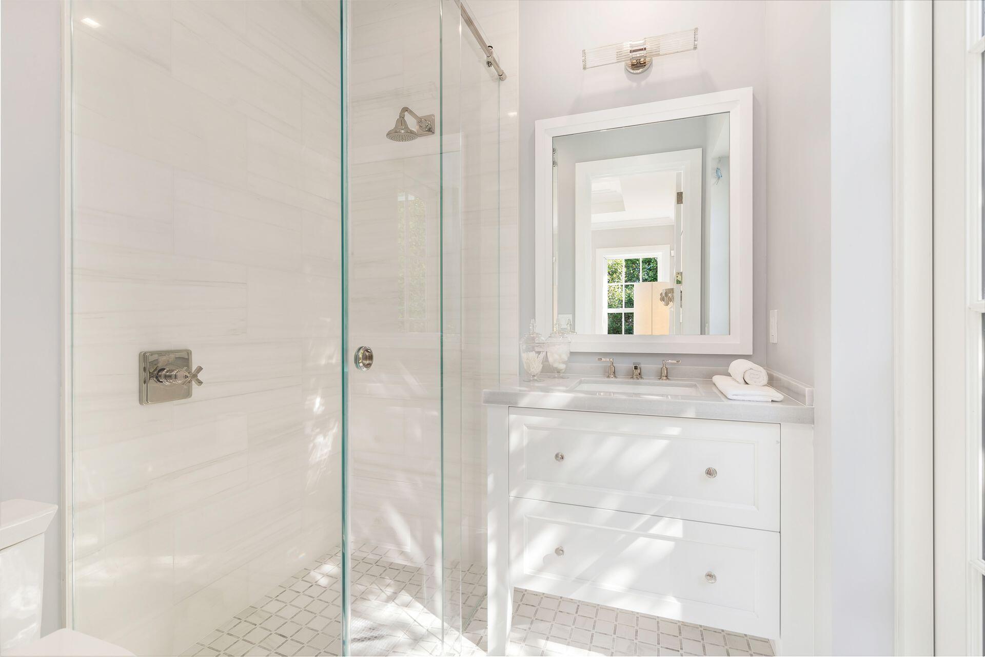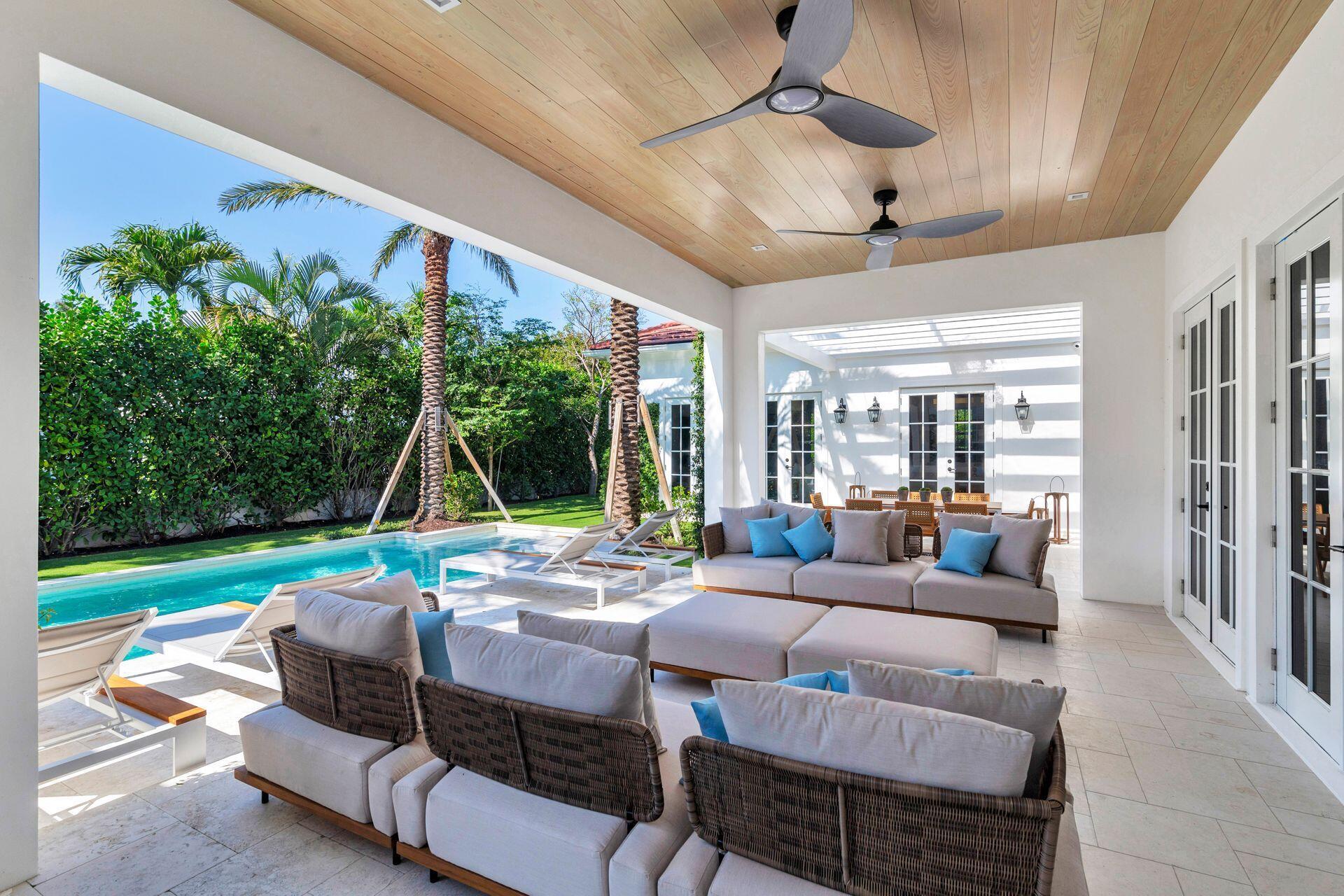 This luxurious new construction rental located in the Estate Section of Palm Beach offers 4 BD/ 4.5 BA plus office. This elegantly decorated coastal contemporary home boasts a large entrance hall, high ceilings and a spacious open plan living room and dining area perfect for entertaining. The kitchen is equipped with high end appliances and joins a large family room flooded with natural light and trey ceilings for a bright and airy feel, bar and butler's pantry and 2 laundry rooms for added convenience. The expansive primary suite includes a seating area, a large private terrace, two baths and walk in closets. The exterior showcases a covered patio overlooking a lovely garden, pool, large grassy lawn. Beach access, full house generator and 2 car garage are an added bonus.