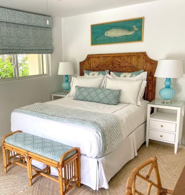 This 1970's bungalow was completely transformed in 2023 by Trish Becker Design, FGS Design Architects, and Ritzzo Development into a three bedroom/three bath stunner. The galley kitchen has new cabinetry, a Lieberr fridge, Cafe smart gas range and Bosche dishwasher. There is one King and one Queen, both with en-suite bathrooms, sizable closets and access to the pool. Directly off the kitchen is a covered dining porch with seating for 8. The fully enclosed garden features a new heated saltwater pool, built-in grill area with smoker, and a small garden shed obscured by new landscaping. An air of island chic is evident throughout, emanating from the vibrant color palette of encaustic tiles and fun fabrics. Weekly maid service included. Booked 12/19/25-3/30/26.