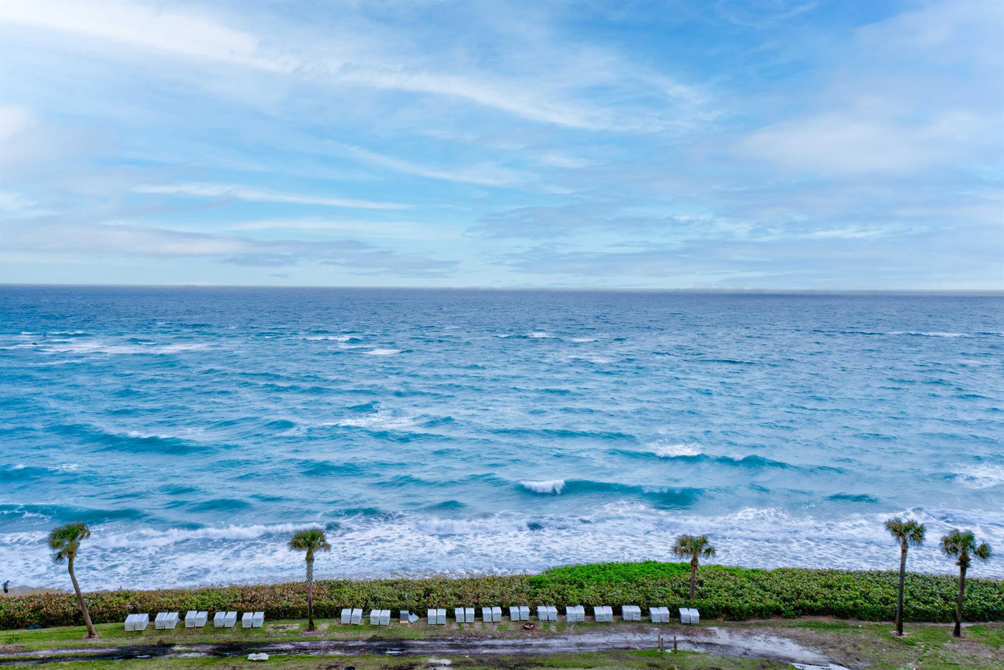 Enjoy stunning blue water ocean views from this 9th floor condo in Ocean Trail Towers, a gated resort style community, located in the heart of all the best Jupiter has to offer! Ocean Trail boasts 22 acres of beachfront property including tennis courts, pools, gym and hot tubs. The balcony and every room in this 2 bedroom, 2 bath condo offer spectacular views of the ocean. This unit is fully furnished and ready to move-in featuring a split floorplan and upgrades throughout including new flooring. Walk down within minutes and enjoy the beautiful ocean or take your sandy feet right next door to the Jupiter Beach Resort's beach bar for sunset happy hours. Nestled in Jupiter Beach Rd, you are a ''Zeke's'' Golf Cart Taxi away from all dining, entertainment and shopping experiences.