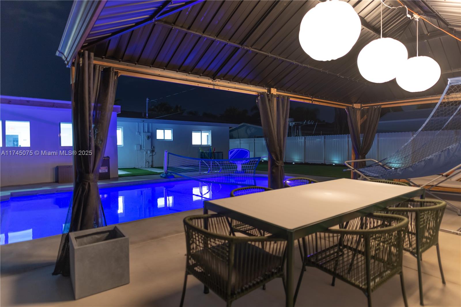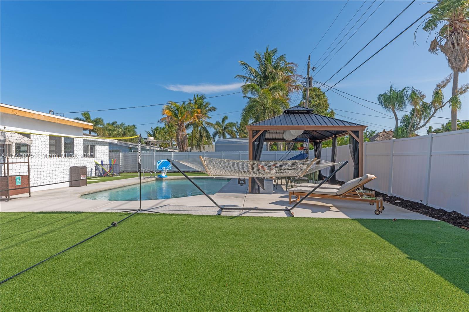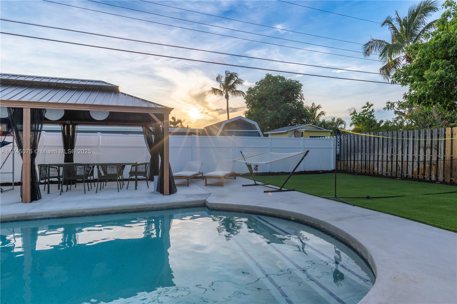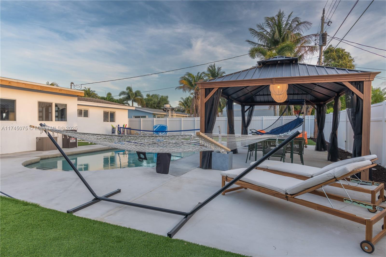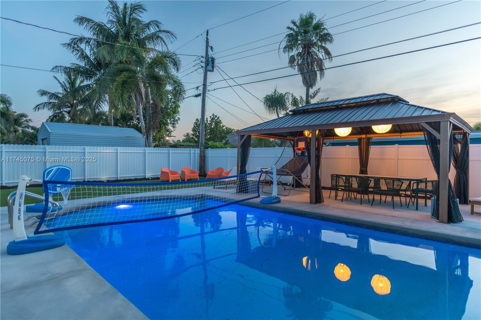 See Virtual Tour. You will definitely enjoy your stay in this fully furnished home located in a great neighborhood only 6 minutes to everything beautiful Deerfield Beach has to offer. The ample backyard offers plenty of space and games to entertain and for the kids to play while enjoying the sunset from the pool. The home features a circular driveway with room for a boat or jet skis, all impact windows and doors, updated floors and bathrooms, new washer and dryer, new indoor and outdoor furniture, new gazebo, new synthetic lawn throughout the backyard, new TV's in every room, and a very well-equipped gym.