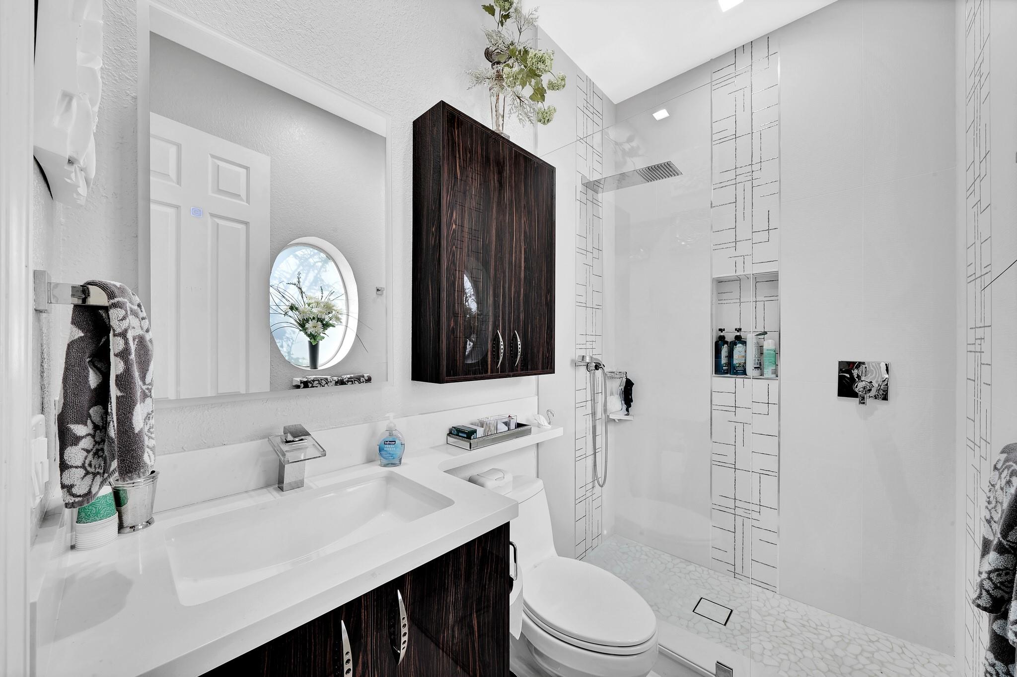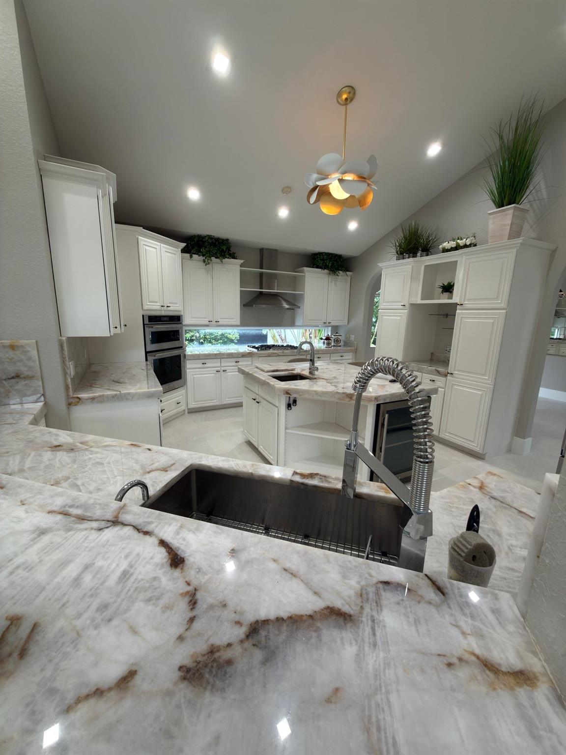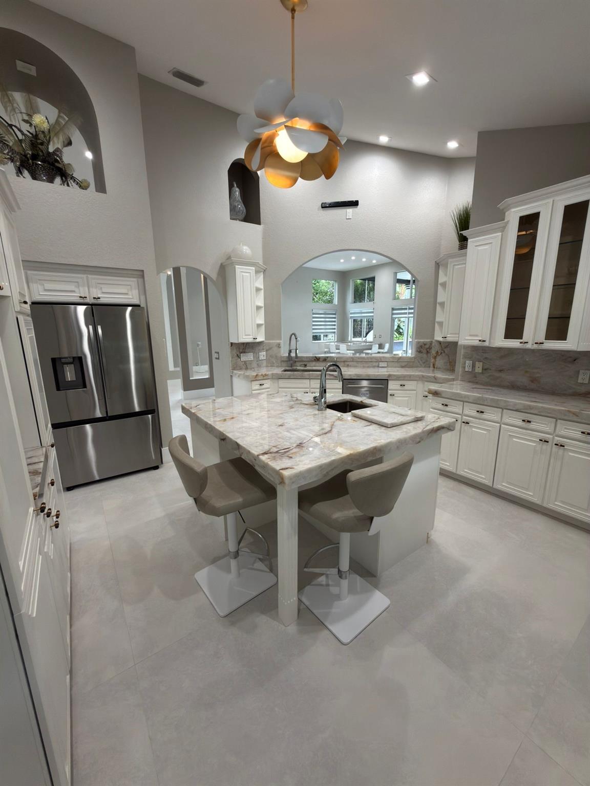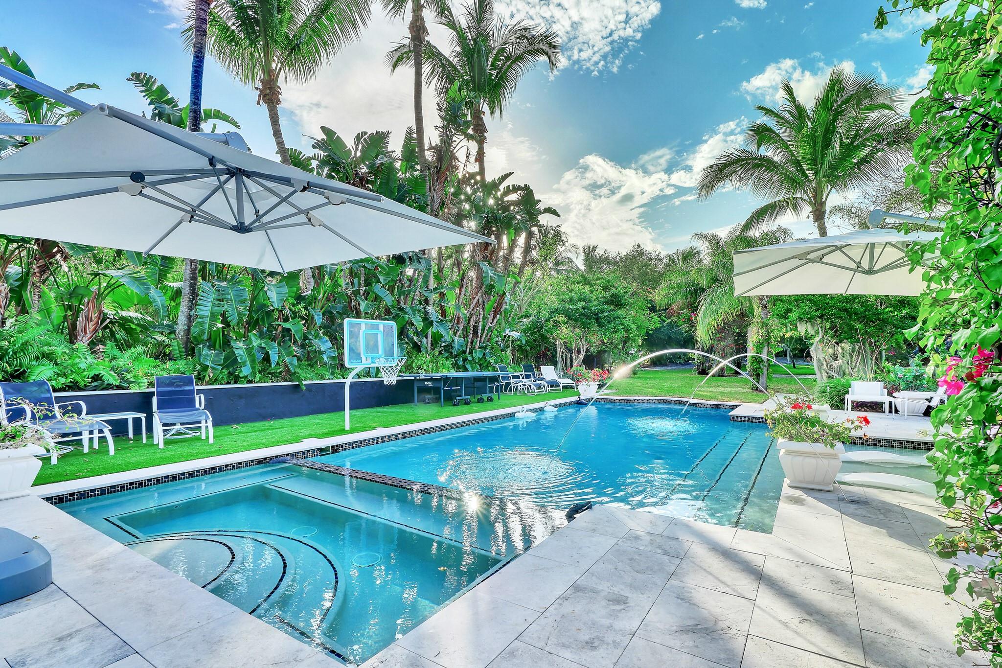 Renovated to perfection, This elegant home features new flooring, custom master closets, modern kitchen cabinetry, all-new doors, updated garage floor, fresh paint, and a stylish laundry room. Offering 4 spacious bedrooms with abundant natural light and 5 luxurious bathrooms with designer fixtures, it blends comfort and sophistication. The gourmet kitchen with premium appliances and Cristallo countertops flows seamlessly into open living and dining areas with sleek new tile floors and expansive windows. Step outside to your private oasis with lush landscaping, a sparkling pool, and ample space for entertaining. Nestled with a secure gate, this residence provides privacy and peace of mind, just minutes from top schools, pristine beaches, shopping, and dining.