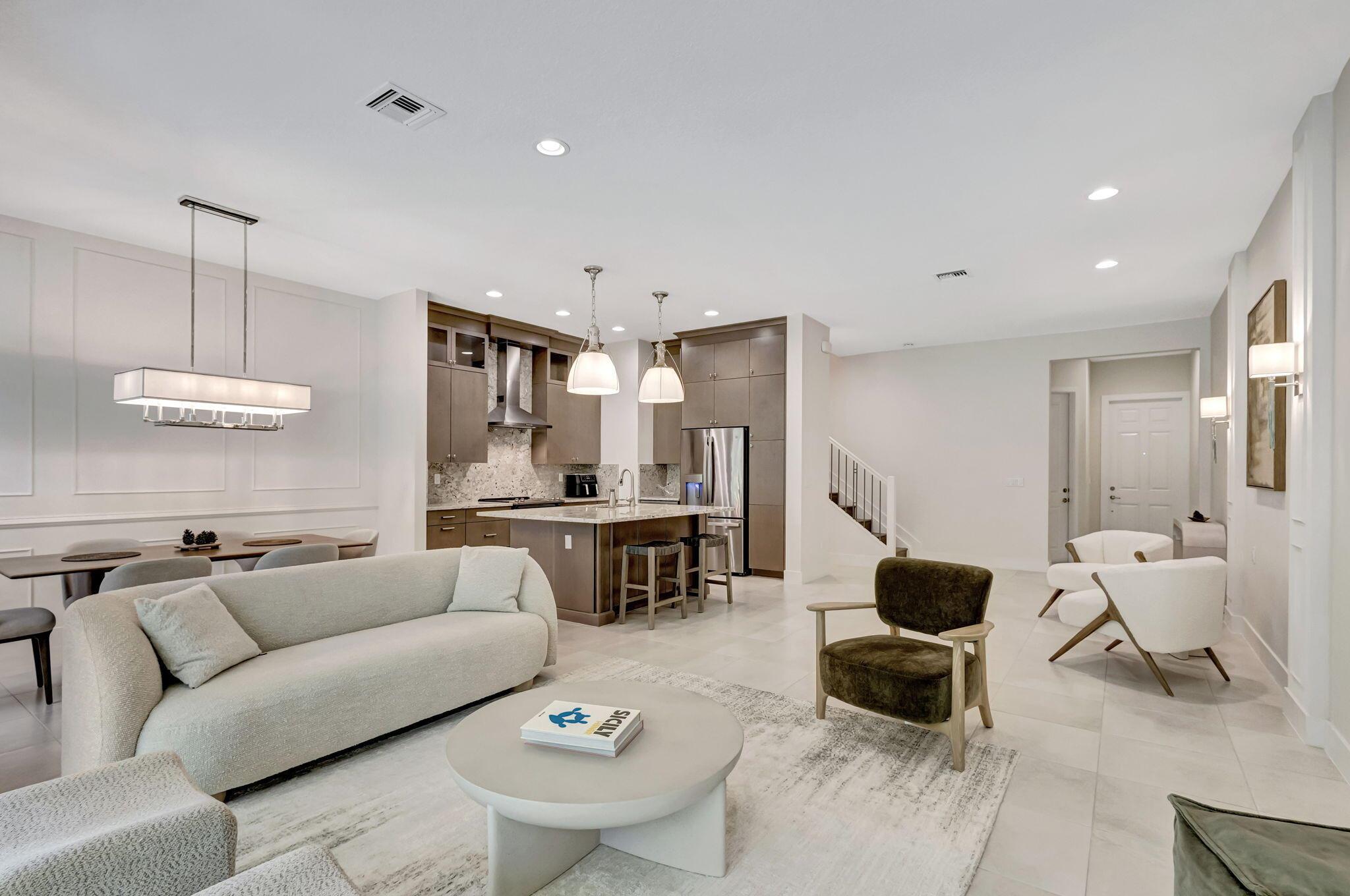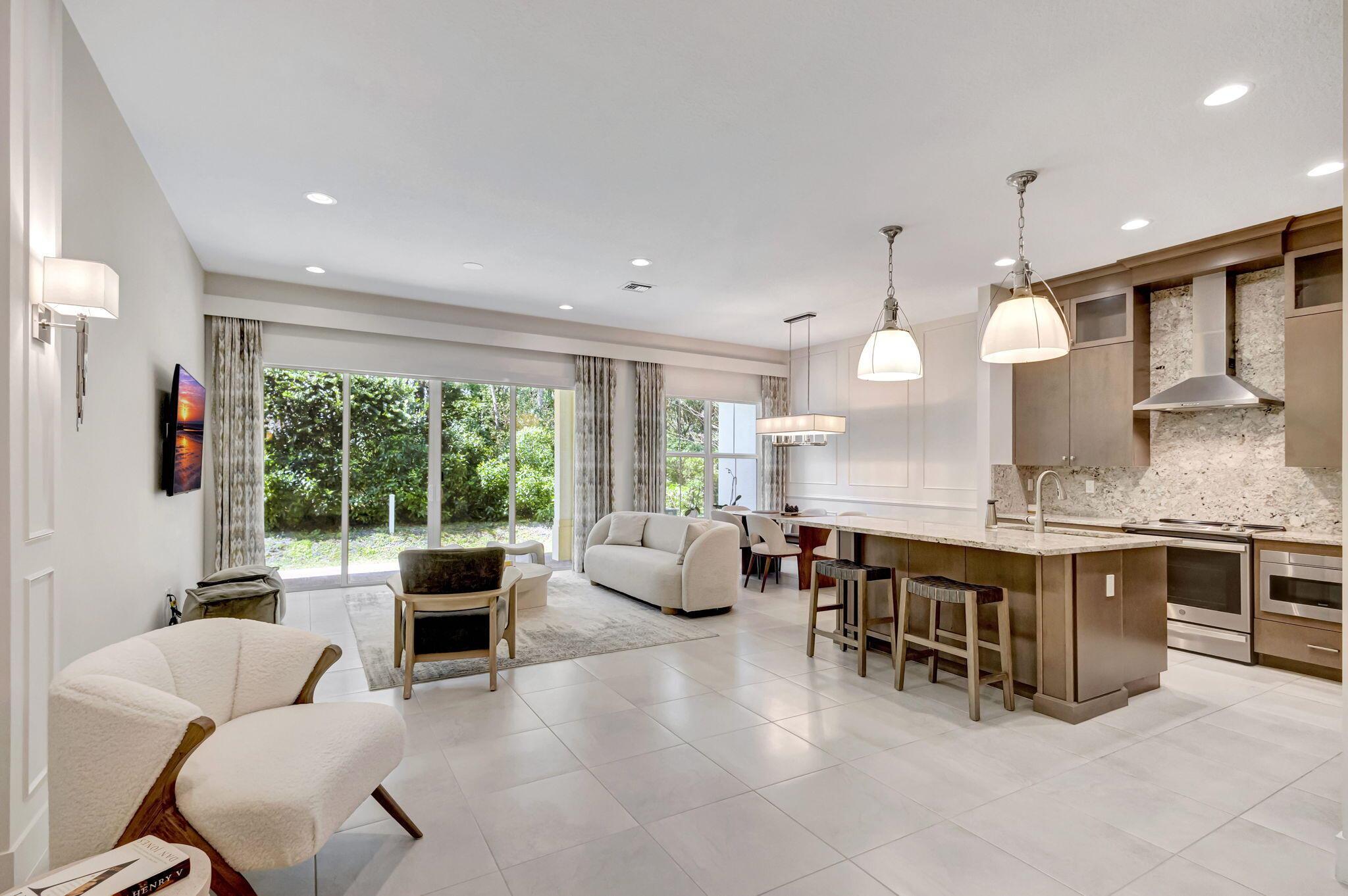 SEASONAL RENTAL This 3 bed, 3 bath townhome features a stunning open floor plan with gorgeous preserve views, and an unbeatable location just steps away from numerous dining and shopping destinations. The exquisite attention to detail can be seen from the moment you enter, with volume ceilings, intricate wall detailing, custom light fixtures, beautiful tile flooring, and upgraded cabinets and countertops.The main living area is bright and open, with floor to ceiling sliders that provide direct access to the private patio overlooking the preserve. Upstairs you'll find a spacious loft area and sizable bedrooms all with walk in closets. The primary suite enjoys breathtaking views, large custom closet, oversized walk in shower, dual vanities, and beautifully tiled floors. 2 car garage.