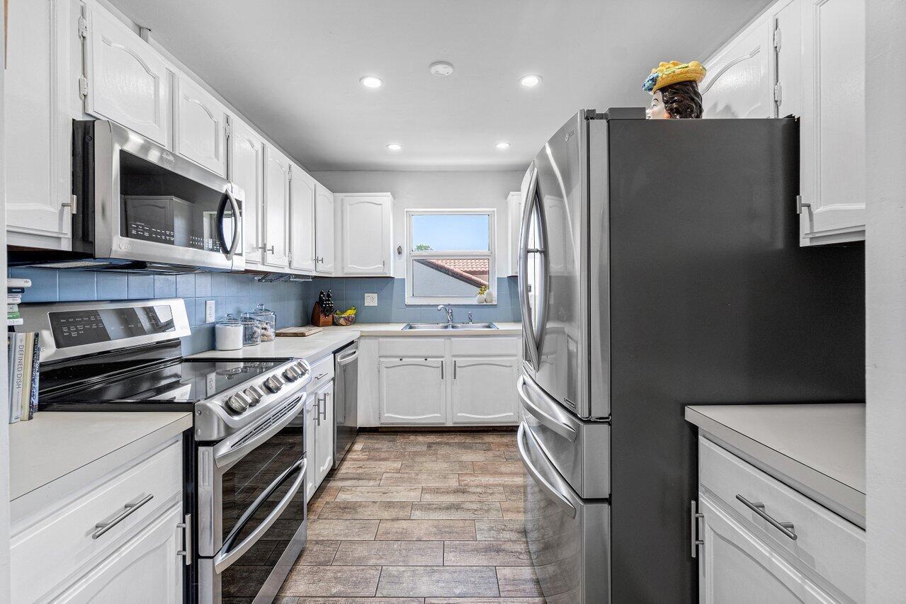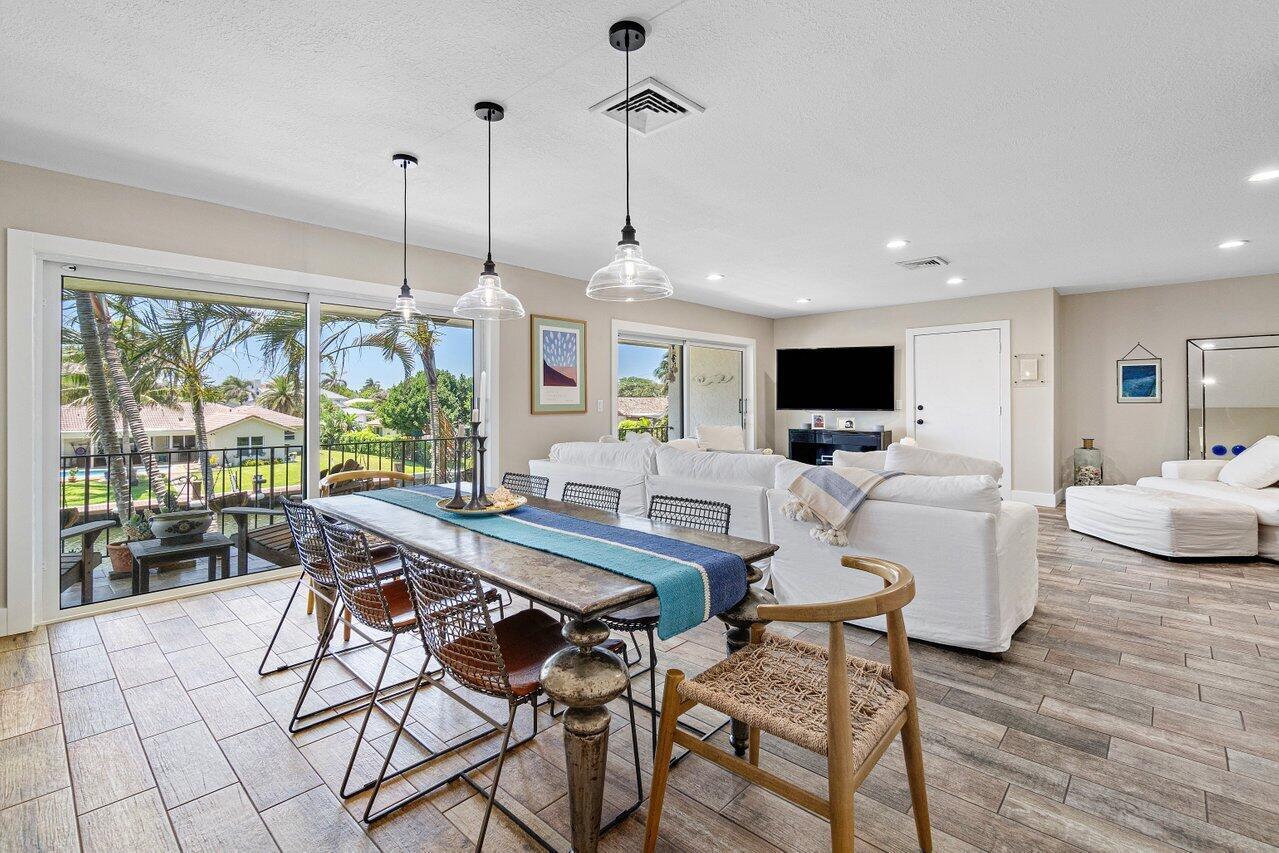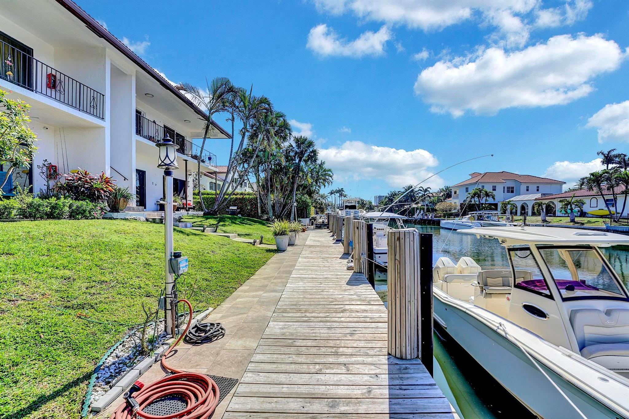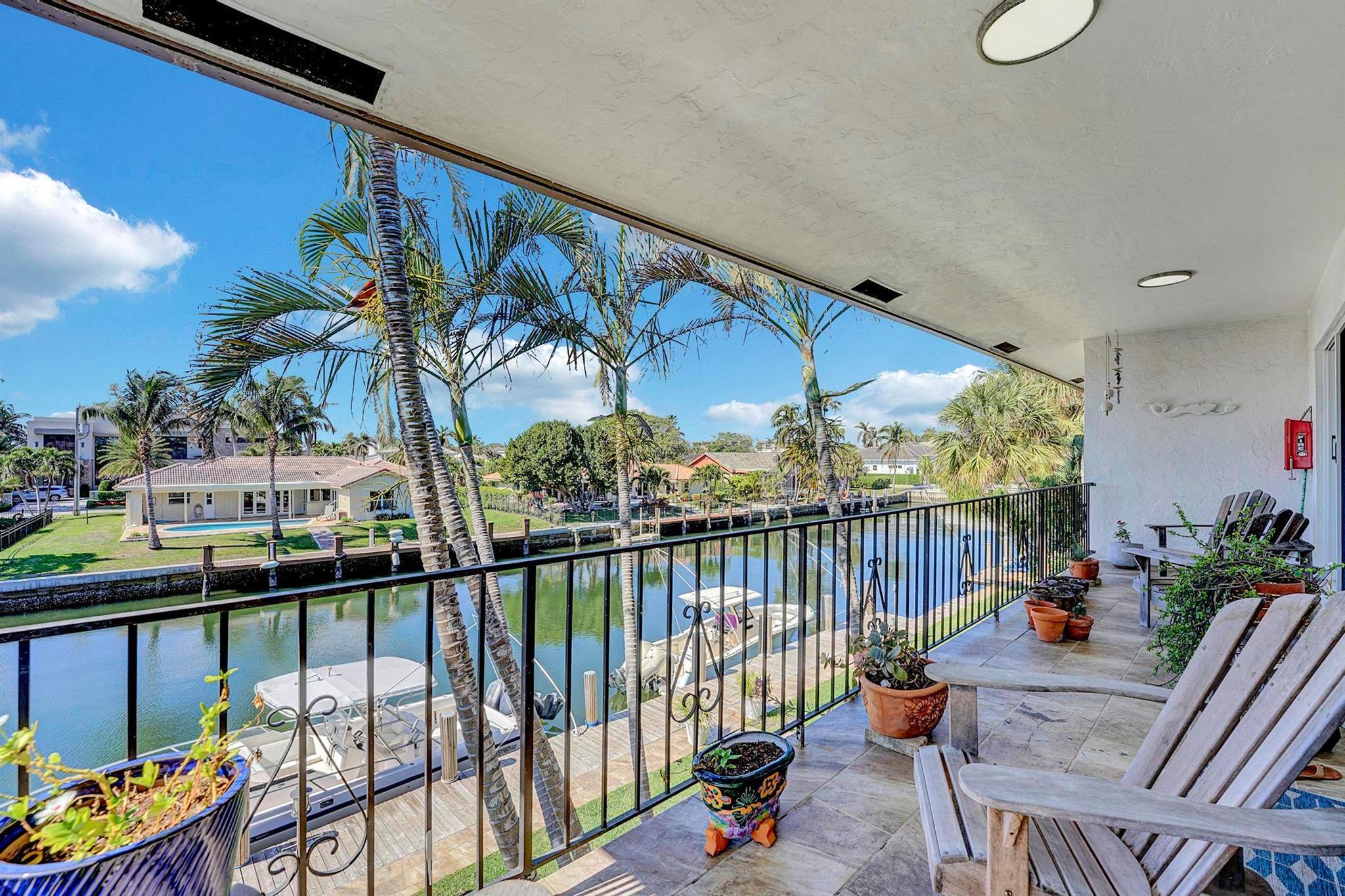 Experience coastal elegance with private beach access in this boutique, pet-friendly condo. This 2 bedroom, 2 bathroom, 2nd floor residence offers impact windows and doors, plantation shutters, an open living space, and tile flooring with upgraded baseboards throughout and no neighbors above! A dedicated dining area and a private, covered balcony provide perfect spaces for relaxation & entertainment, w/ stunning sunset views. Located just steps from the beach, the building also features first-come, first-serve boat dockage with a new dock & no fixed bridges to the ocean. Enjoy an oversized laundry room, HVAC (2025), a 1 car garage with extra storage, & walk-in closets in both bedrooms. Less than 10 minutes to Mizner Park & downtown Delray Beach.