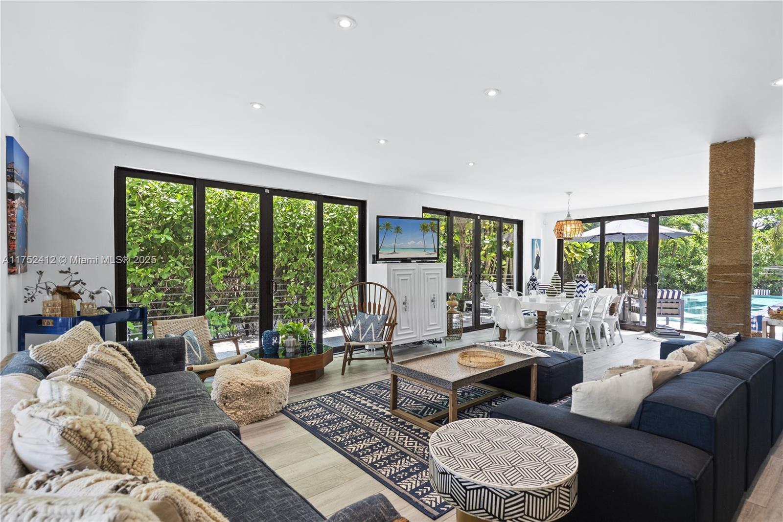 This stunning two-story villa in an elegant neighborhood offers breathtaking bay views and upscale design. It features a master bedroom with a king bed and private bathroom, a second king-bed bedroom, and a kid-friendly room with three bunk beds. The ground floor has a spacious living room, a fully equipped kitchen, and a toilet, while the first floor houses all bedrooms and a private balcony with bay views. Relax in the private backyard with a heated infinity pool surrounded by beach sand and a BBQ grill. Blending Art Deco elegance with modern amenities, this Miami retreat is near Wynwood, South Beach, and top restaurants, comfortably accommodating nine guests. Your unforgettable Miami experience awaits! Rental rates may vary based on stay length and season for stays under six months
