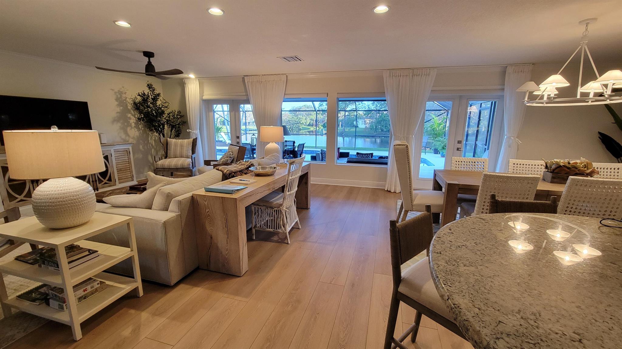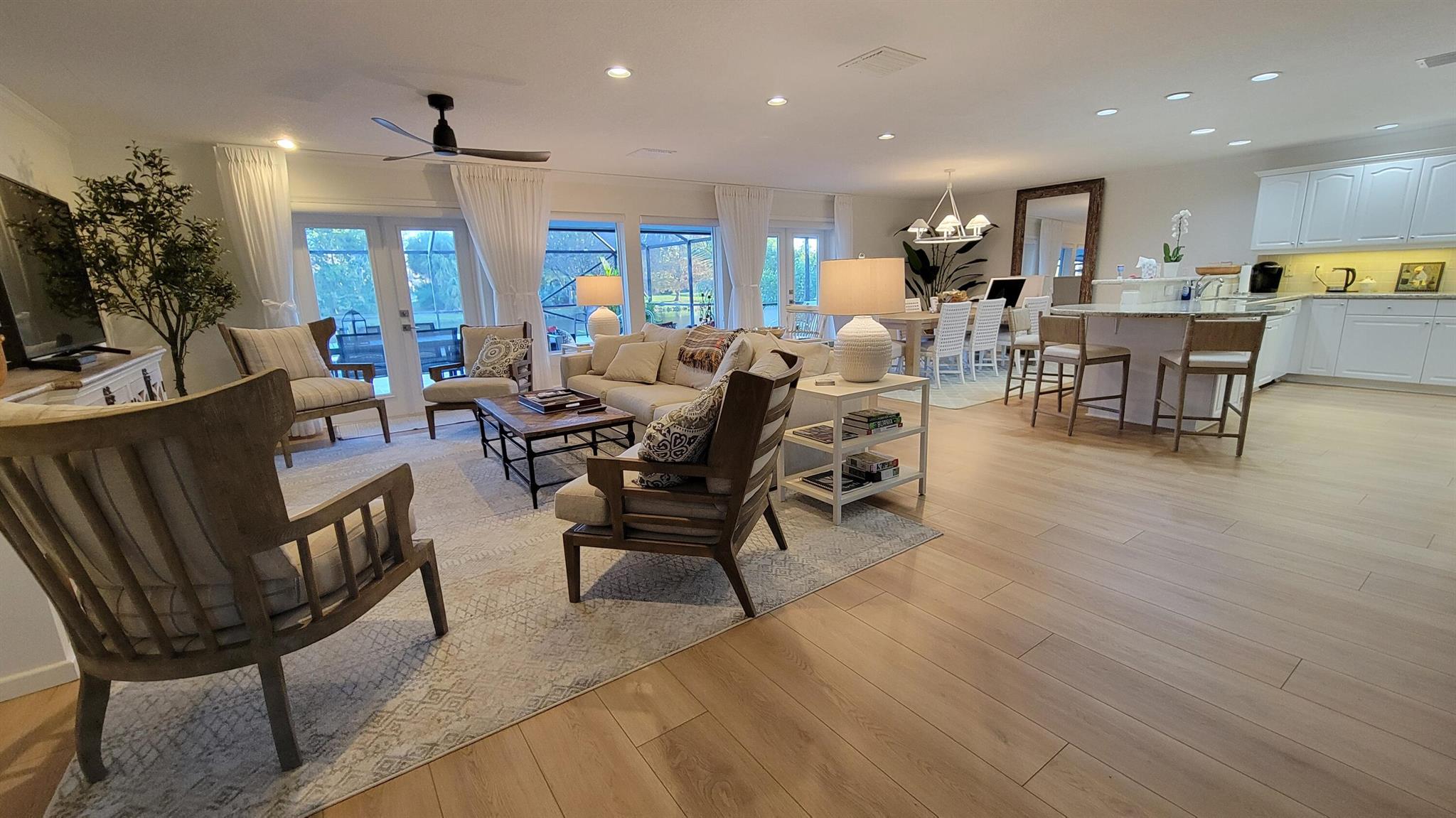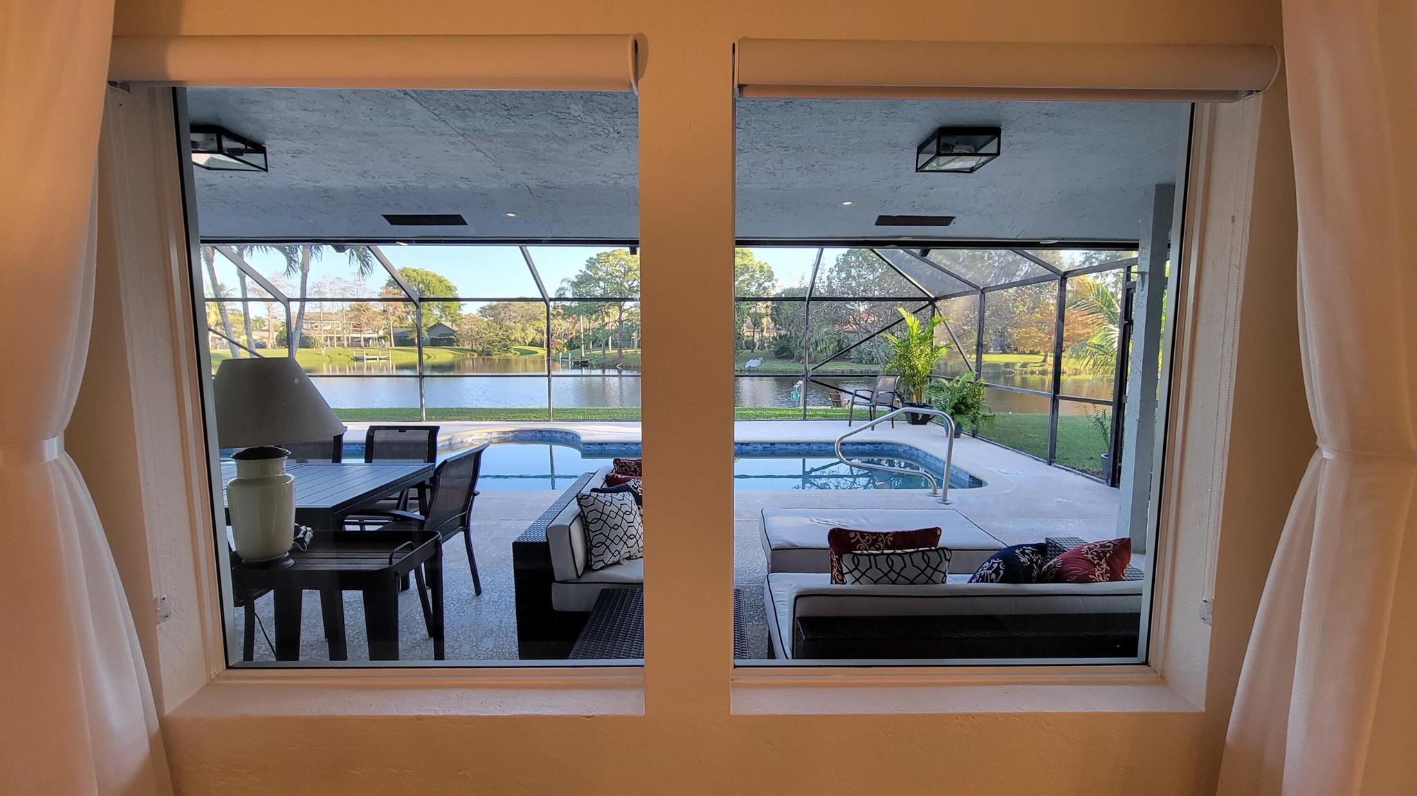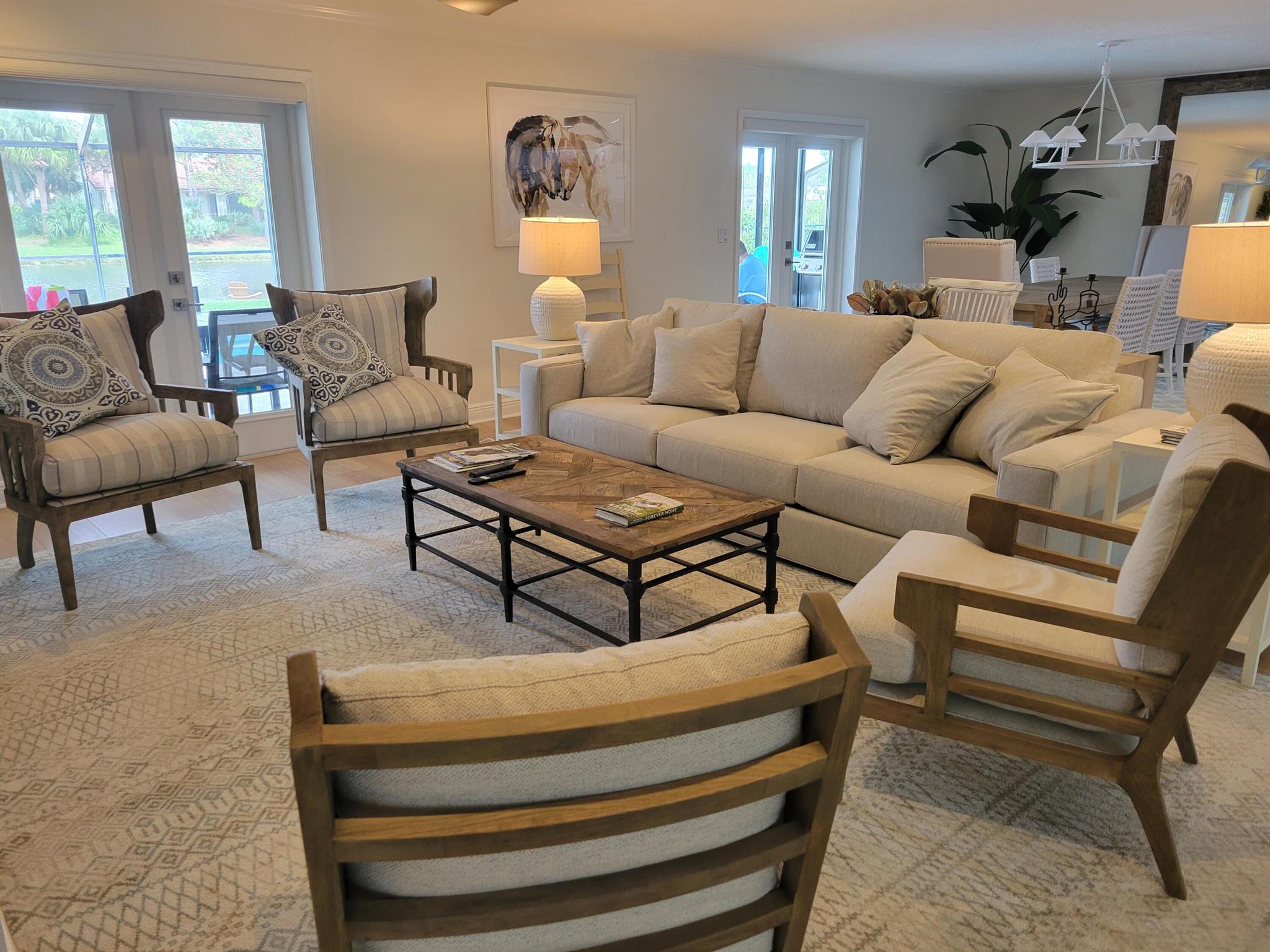 Beautifully appointed 3-bedroom, 2-bathroom home available for OFF-SEASON rental from April 7 to November 1. Fully furnished and turnkey, this property features a private pool nestled under a fully screened-in patio, offering a tranquil retreat. Enjoy breathtaking views of the serene lake from your own private dock. Ideal for a summer getaway with all the comforts of home.
