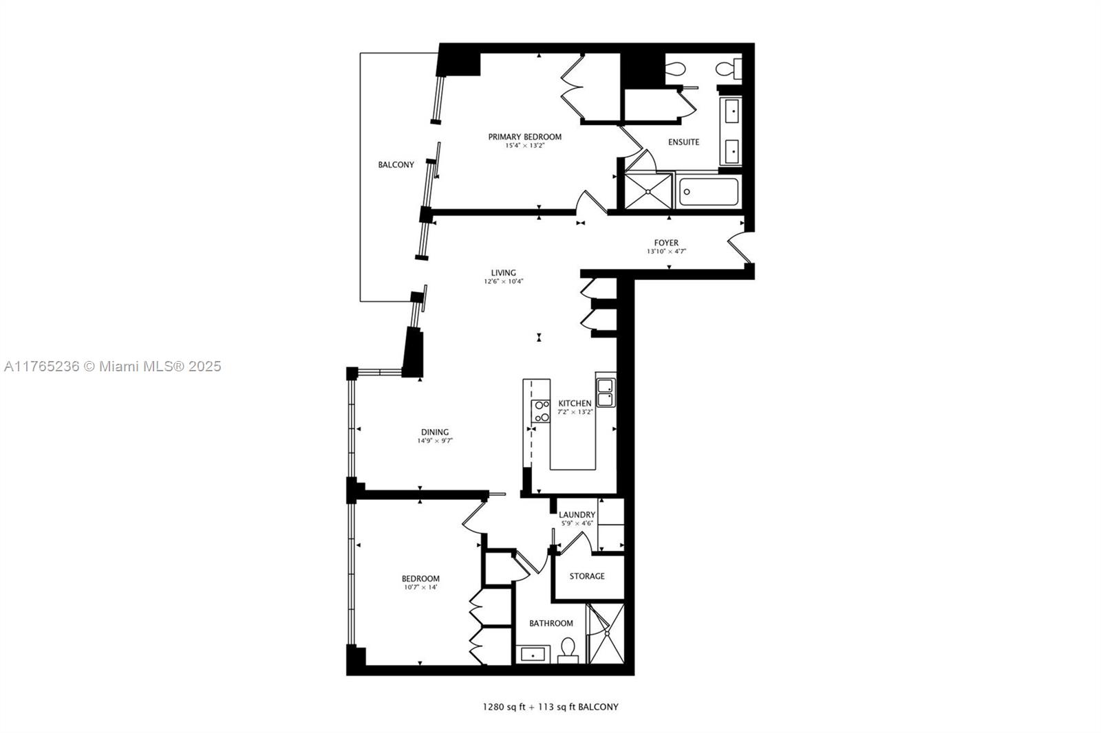 • Жилая площадь: 1280 фут² / 119 м²