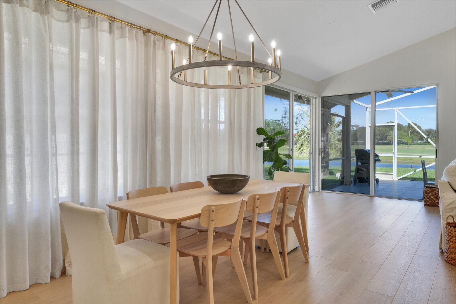 Newly renovated home in the gated club community of Eastpointe! This 3 bedroom home is filled with natural light and features soaring vaulted ceilings, wood-look tile floors, modern light fixtures, and luxurious spa-like bathrooms. The gourmet kitchen has new sleek white cabinetry, quartz countertops, stylish tile backsplash, high-end SS appliances, and a spacious island with seating for four. Tastefully furnished and available as a seasonal or annual rental (furniture negotiable). Covered & screened patio with breathtaking golf course and lake views. 2-car garage. Social Membership is available which includes tennis & pickleball! Conveniently located near top restaurants, shopping, golf, marinas, pristine beaches, and PBI. Annual rent is $6,500. Seasonal rent: $12K/mo (6-month minimum).