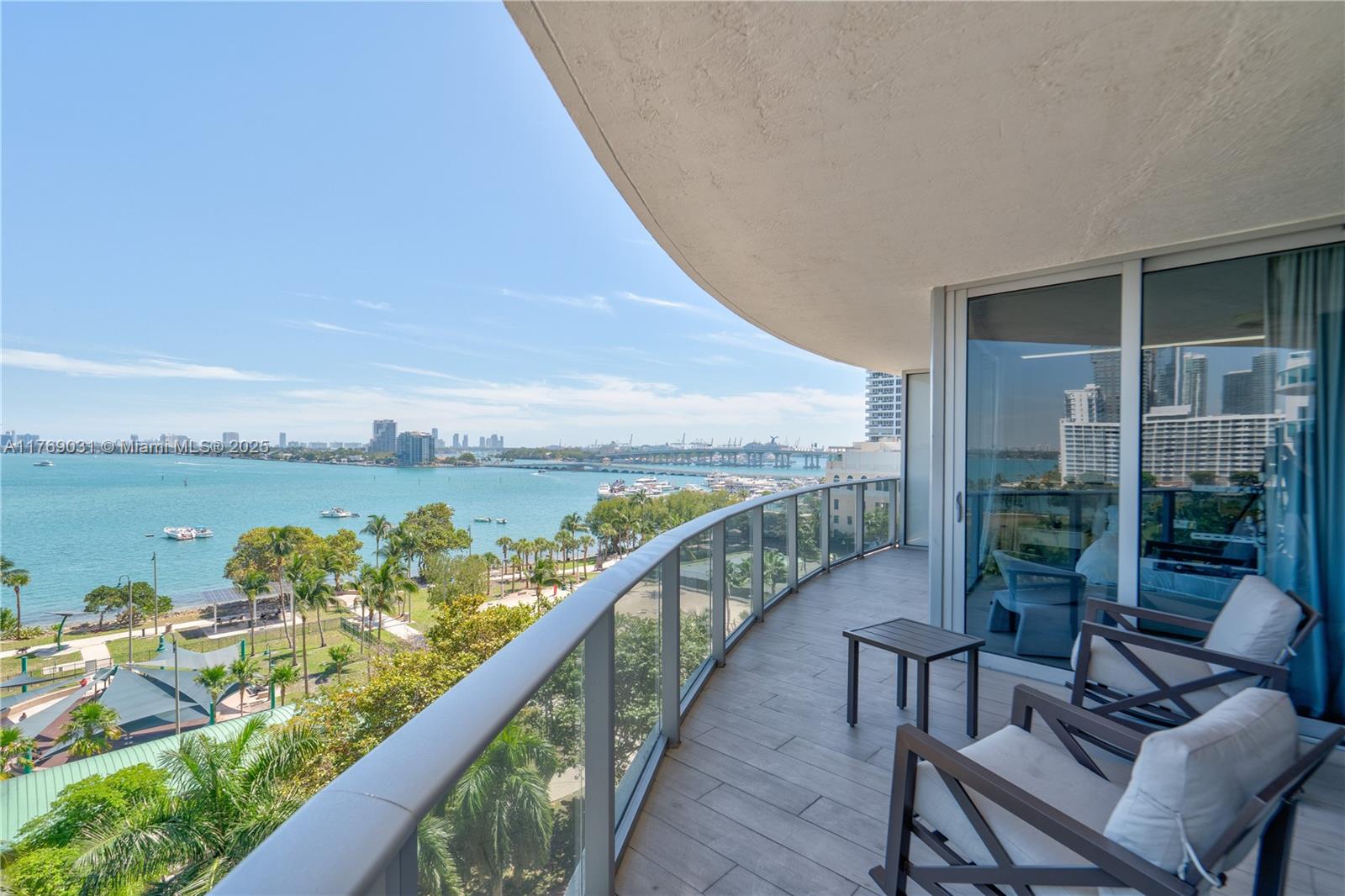 Indulge in luxury living at Aria On The Bay with this meticulously furnished 3-bedroom plus den, 4-bathroom unit. Located on the seventh floor, the residence offers the sensation of being aboard a yacht, boasting breathtaking bay and ocean views from every room. Featuring Italian cabinetry, Bosch appliances, and floor-to-ceiling windows, this 2,365 sqft home comes complete with a 613 sqft wrap-around balcony, private elevator, and foyer. Enjoy an array of building amenities including a movie theater, two pools, jacuzzi, sauna, gym, game room, and more. Ideally situated near Margaret Pace Park, I-95, Downtown Miami, Brickell, and Miami Beach. Contact Nicoleta for a showing. This unit is also available for sale.