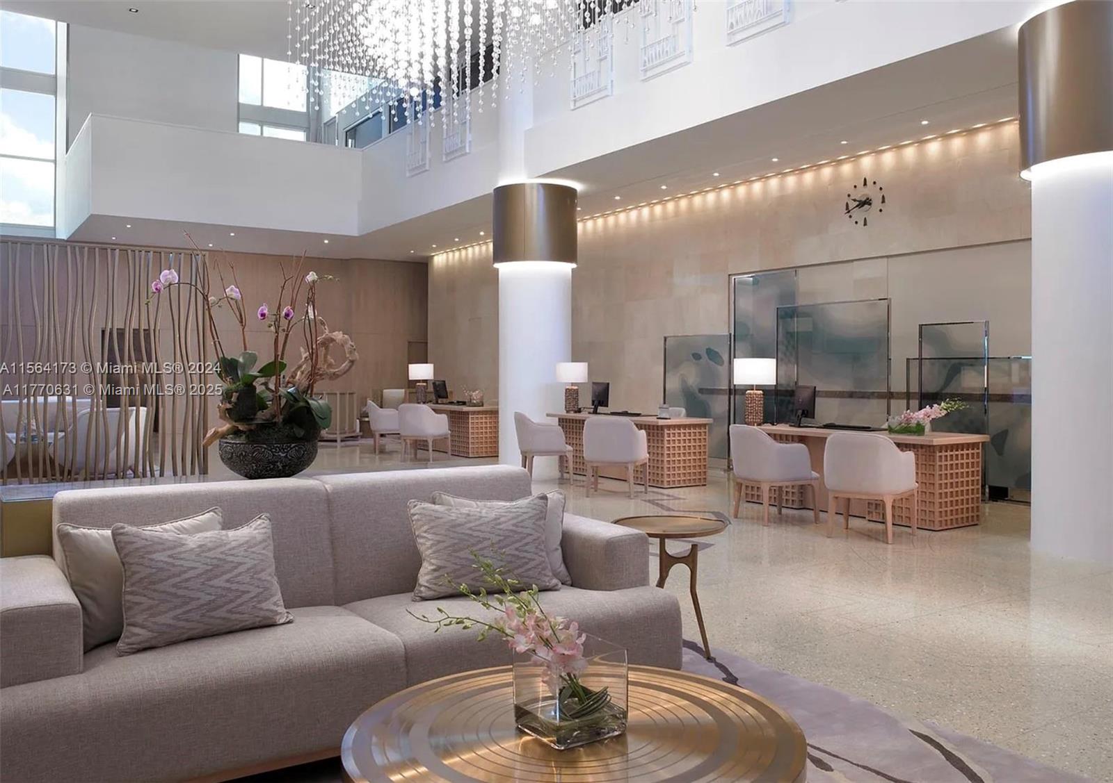 Bright Turn-Key Corner Unit at Carillon Wellness Resort - North Tower This beautifully furnished 1-bedroom, 1-bathroom corner unit features floor-to-ceiling impact windows and a pool-facing balcony. The high-end kitchen, marble floors, and spacious bathroom offer the ultimate in luxury. Enjoy exceptional amenities: 70,000 sq. ft. spa/fitness center, 40+ daily fitness classes, 4 pools, full-service concierge, farm-to-table restaurant, juice bar, boutique, 24-hour security, valet, wellness staff, and full beach service. A true turnkey oasis for those seeking a wellness-focused lifestyle.
