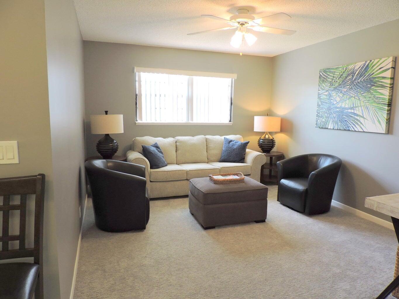Beautifully decorated 3 bedrooms, 2 baths rental available for 2025-2026 season. 2nd floor walk up with high ceilings, living room and spacious family room. King bed in master, queen beds in other 2 bedrooms. Flat screen TV's. Full size washer and dryer in laundry room. Eat in kitchen and formal dining room. Fabulous direct lake and fountain view. Garage not accessible, but driveway in front of unit. Resort style community pool. Basic cable and wifi included. Tenant pays water and electric. 6 month optional membership available at Club.