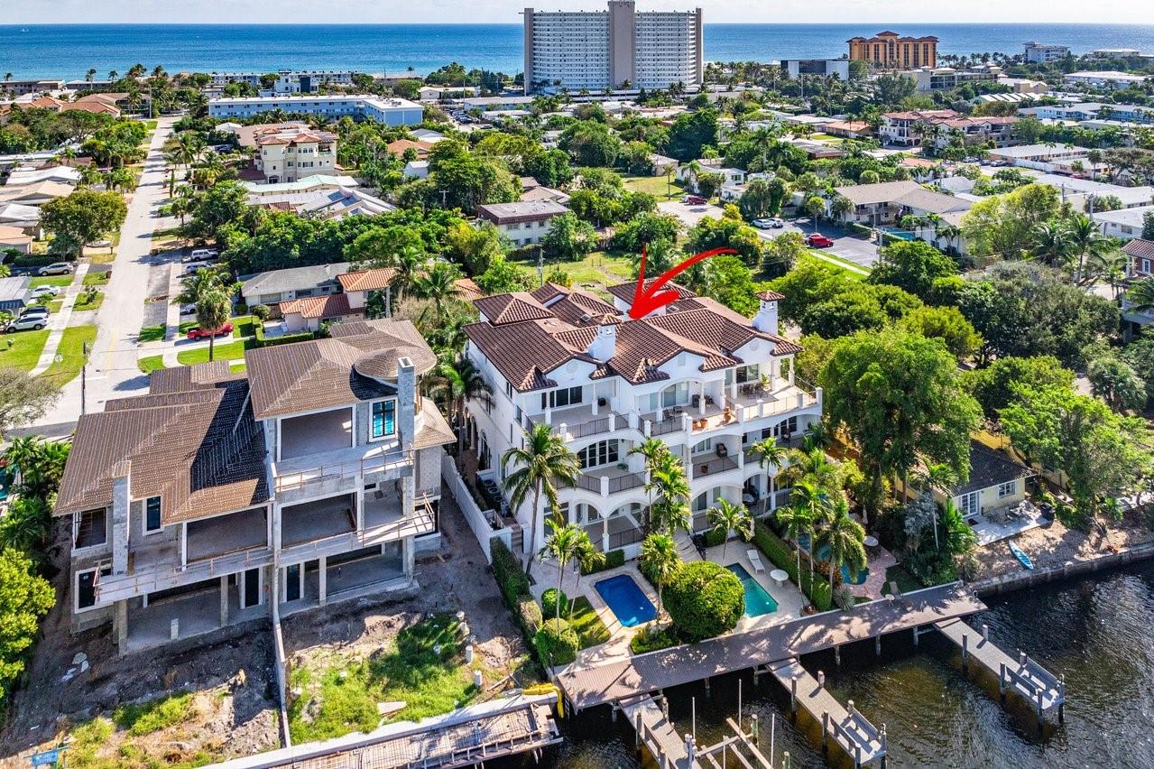 Experience luxury coastal living in this elegant 3-story townhouse on “The Island,” positioned along the Intracoastal Waterway and mere steps from iconic Deerfield Beach. This end-unit offers 3 ensuite bedrooms with private balconies, a personal study off the primary suite, and a great room that showcases sweeping views of the Deerfield Island Preserve. Features include soaring custom ceilings, stunning gourmet kitchen, Lutron LED lighting system, and a 3-stop elevator. Outside, enjoy a spacious lanai, private heated pool, dock w/boat lift, standby generator, and a 2-bay garage with a lift for a 3rd vehicle. Enjoy the charm of nearby beachfront eateries on this scenic barrier island, with the added convenience of being just minutes from vibrant downtown Boca Raton and the executive airport