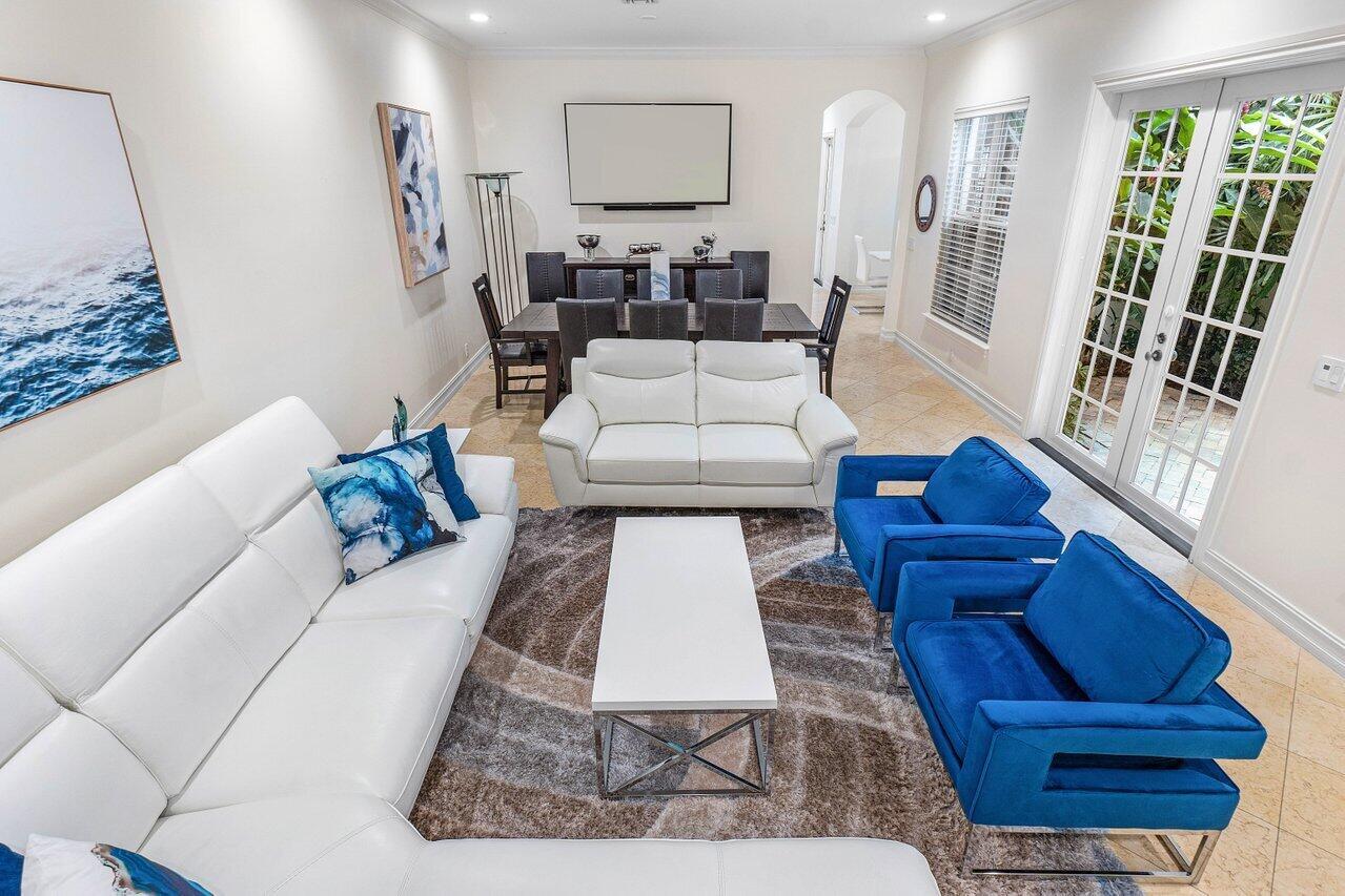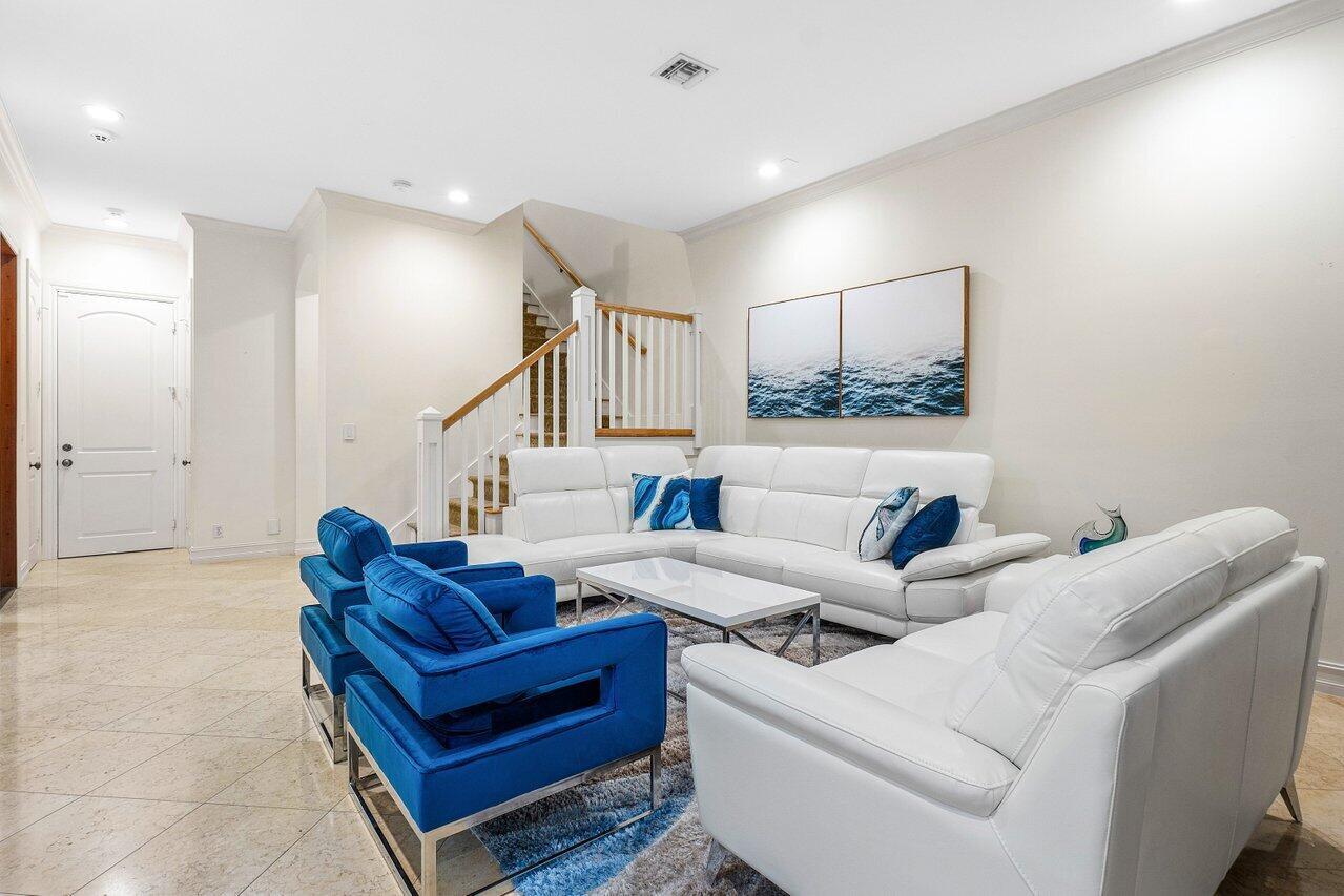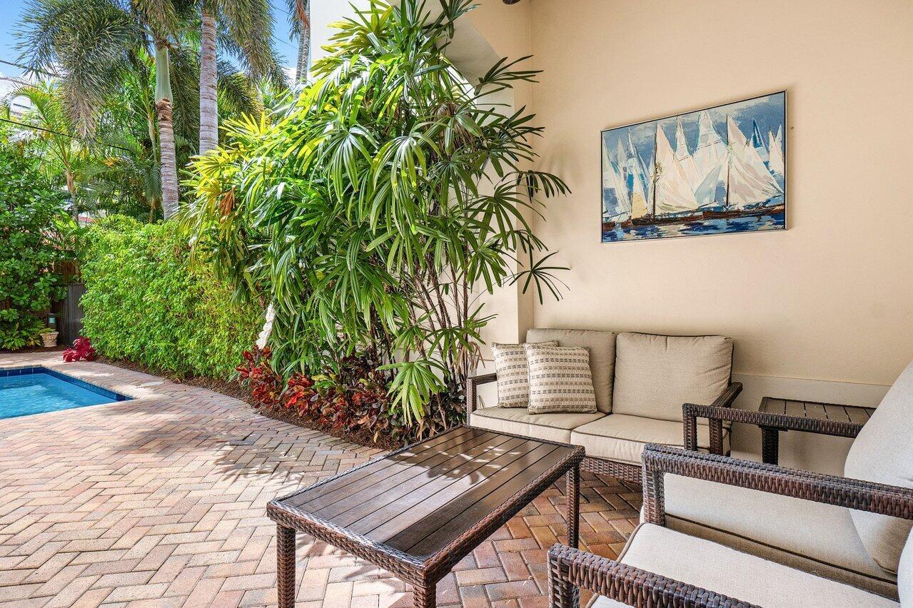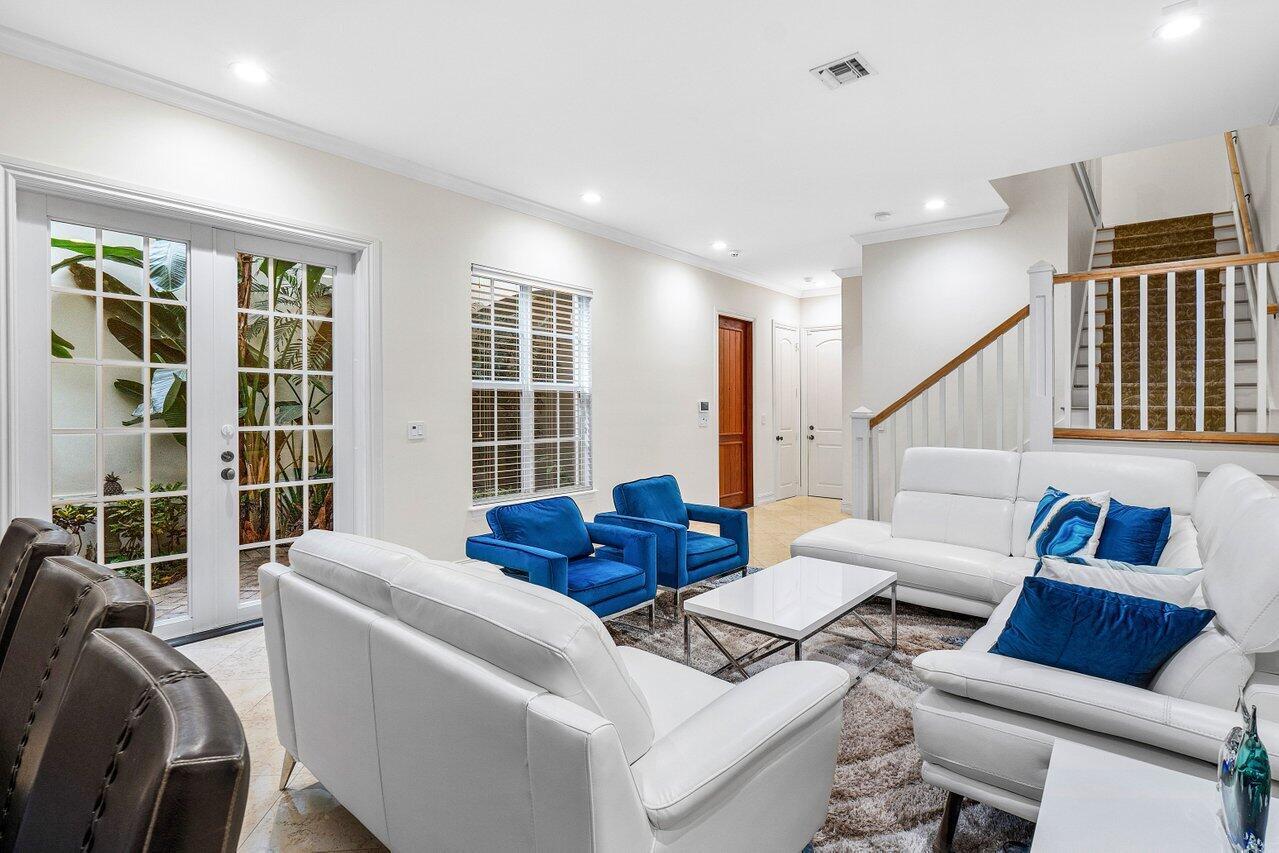 Experience the ultimate in luxury living with this Fully Furnished Seasonal rental in a stunning British West Indies-inspired townhome. Formerly a designer model, this home is beautifully furnished and ready for immediate enjoyment. Relax in the private courtyard with a lushly landscaped patio and dipping pool, just a short walk to the beach and Mizner Park, a vibrant, Mediterranean-inspired, open-air destination offering upscale shopping, dining, and cultural experiences in the heart of Boca Raton.This elegant retreat features 10ft ceilings, crown molding, marble and wood floors, custom cabinetry, French doors, impact windows, and a security system. Ideally located in the heart of Boca Raton, near world-class shopping, dining, world-class golf courses and the exclusive
