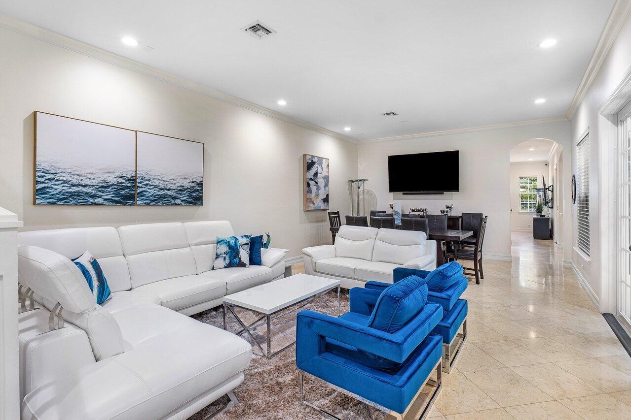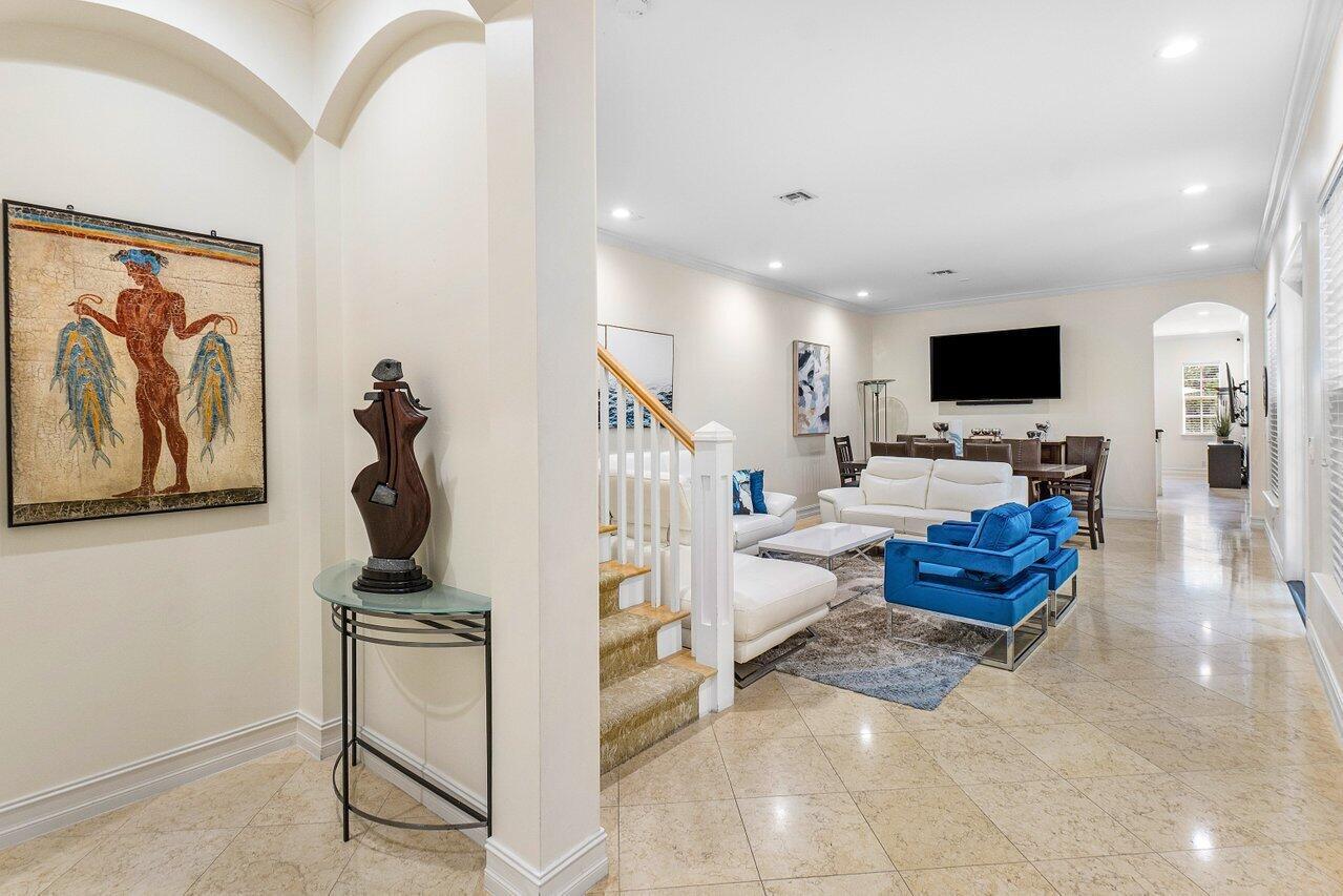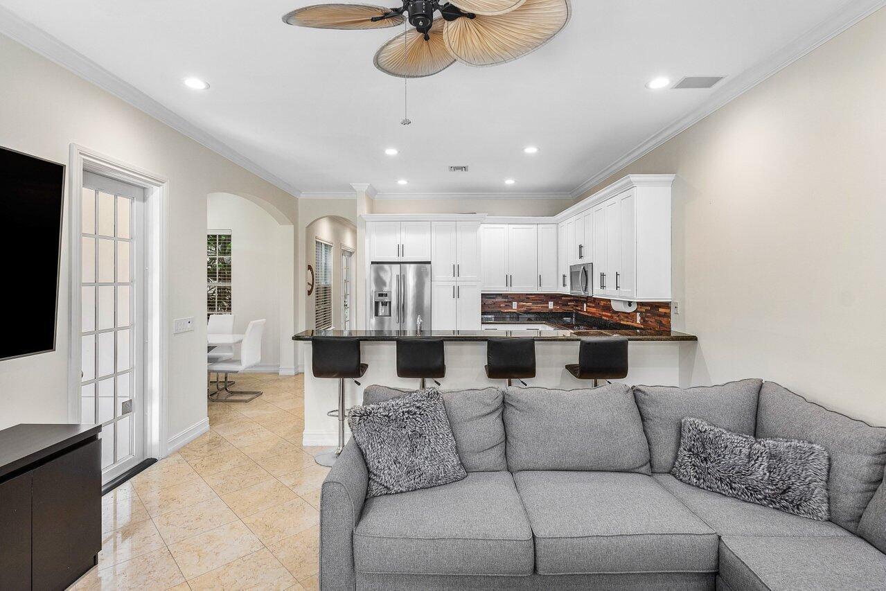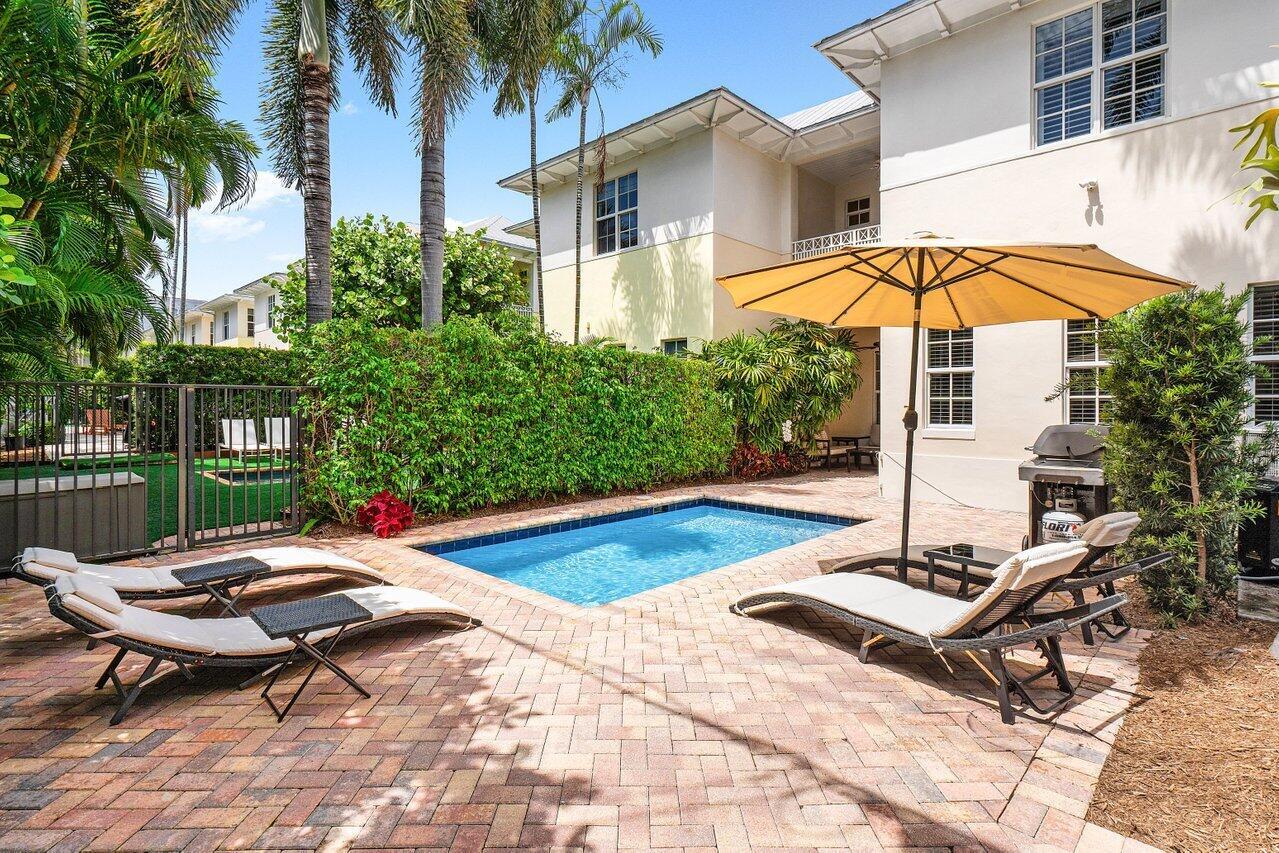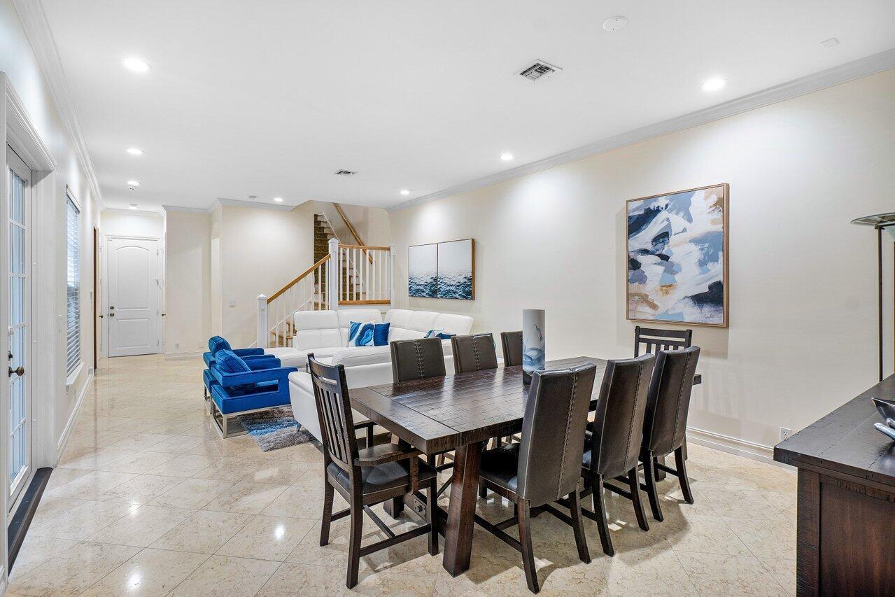 Experience the ultimate in luxury living with this Fully Furnished Seasonal rental in a stunning British West Indies-inspired townhome. Formerly a designer model, this home is beautifully furnished and ready for immediate enjoyment. Relax in the private courtyard with a lushly landscaped patio and dipping pool, just a short walk to the beach and Mizner Park, a vibrant, Mediterranean-inspired, open-air destination offering upscale shopping, dining, and cultural experiences in the heart of Boca Raton.This elegant retreat features 10ft ceilings, crown molding, marble and wood floors, custom cabinetry, French doors, impact windows, and a security system. Ideally located in the heart of Boca Raton, near world-class shopping, dining, world-class golf courses and the exclusive