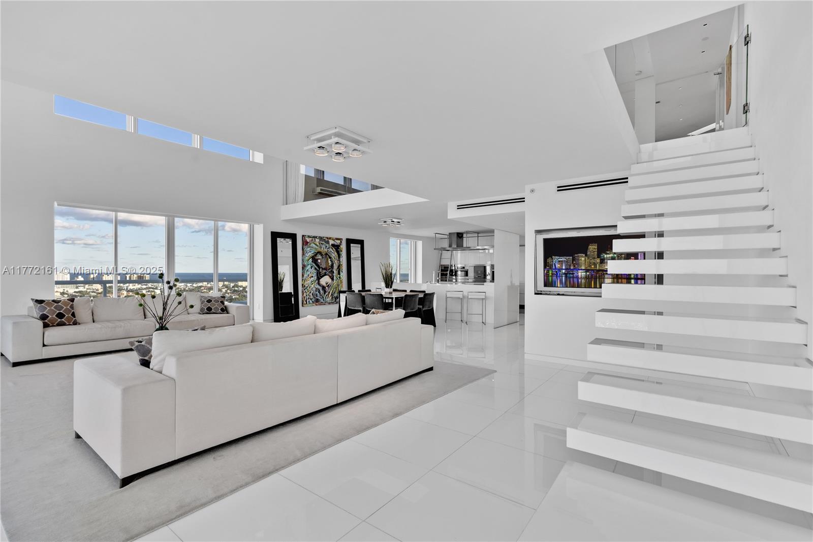Elevate your lifestyle in the corner Penthouse at the Grand Venetian, a lux boutique bldg. The unique, furnished 3-BR residence spans nearly 5,000 sqft w/ breathtaking water views of the bay, ocean, & Miami skyline from every window. Beautiful open floorpan w/ impressive 20ft ceilings & expansive wrap-around balcony. Equipped w/ bespoke Arclinea chef's kitchen, Miele-LaPerla/SubZero appliances, climate-controlled wine fridge, Crestron/Lutron, & discreet surround-sound. Upstairs is dedicated to the master suite, featuring floating sitting room, fireplace, walk-in closets, & Waterworks spa bath & steam shower. Resort-style amenities- Front desk, cabanas, gym, BBQs, mini golf, tennis/pickle court, valet & pool w/ hot tub & towel service. Best Location! Steps from The Standard & Sunset Harbour