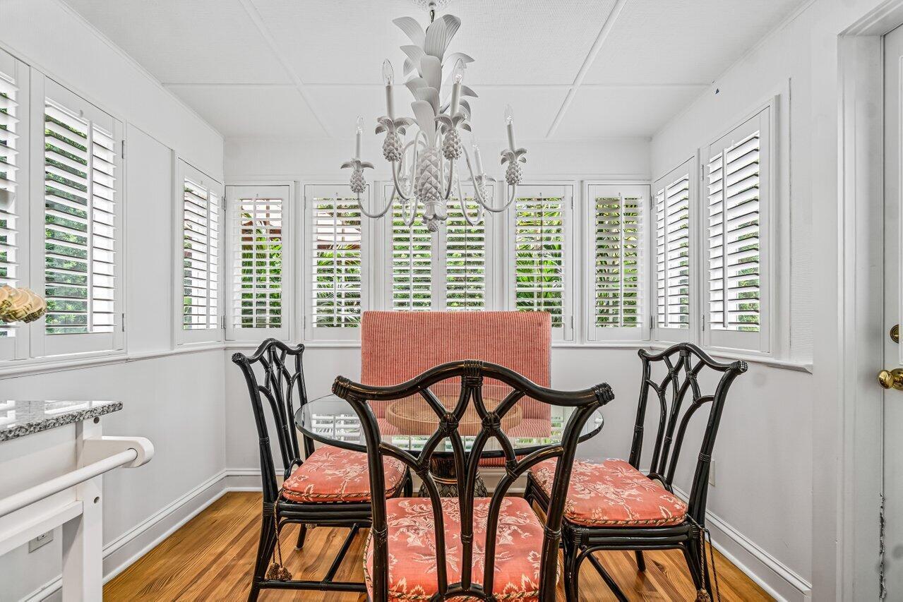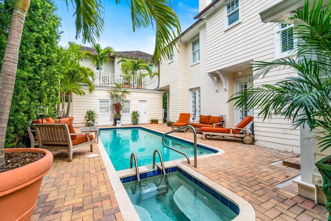 Bright, classic In-Town home with 3 bedrooms, 3 and 1 half bathrooms, featuring wood floors, new bathrooms with natural light, an updated kitchen, separate dining room, breakfast nook, tv room and large closets. Situated behind a tall privacy hedge, the home boasts a saltwater pool with jacuzzi, an outdoor dining space, and rooftop deck (above garage). This wonderful rental captures the charm of old Palm Beach while being situated in the heart of town. Walk to Meat Market, the Lake Trail, the beach, Field of Greens, Henry's, the Royal Poinciana Plaza, Publix, and more!
