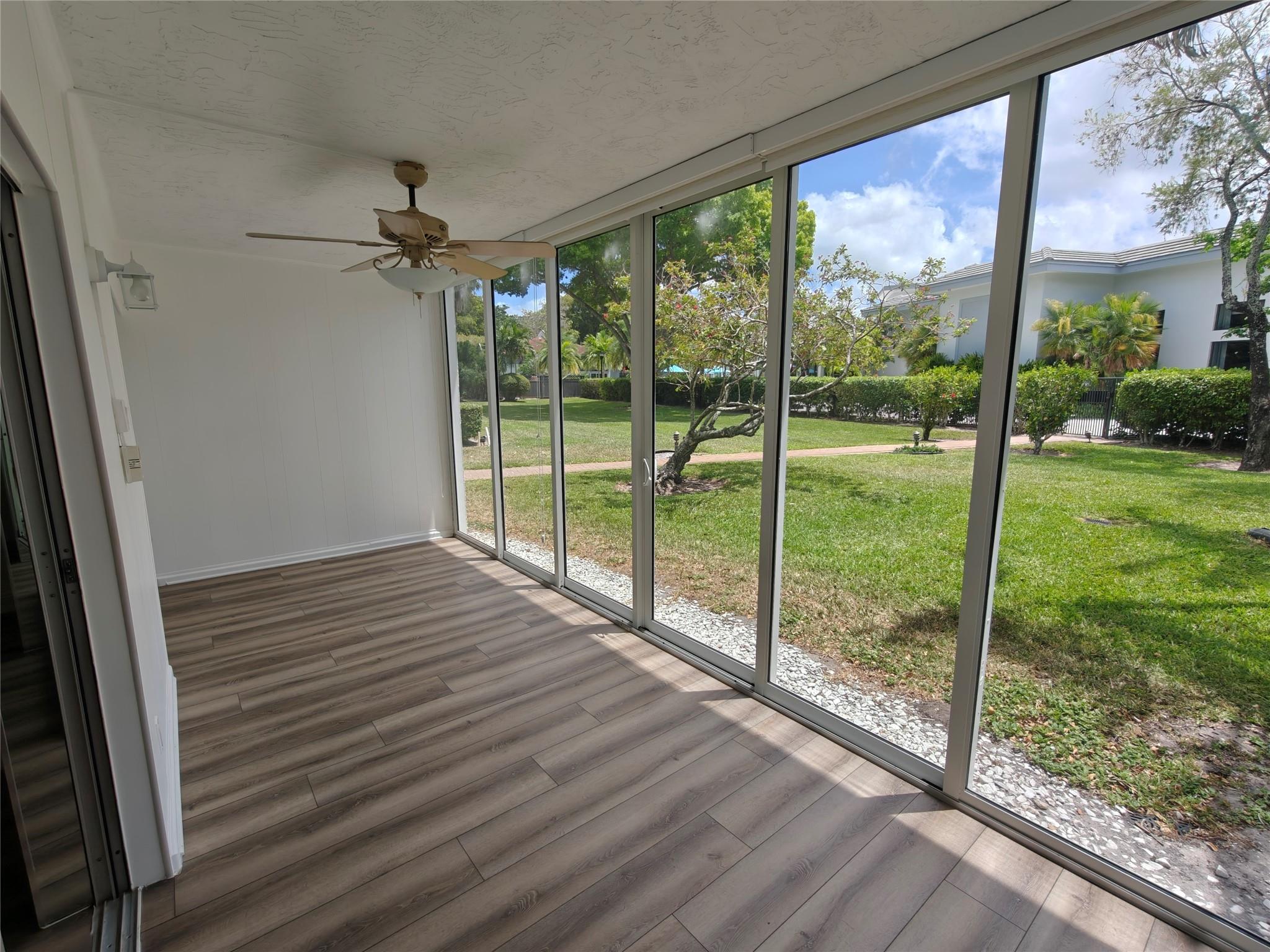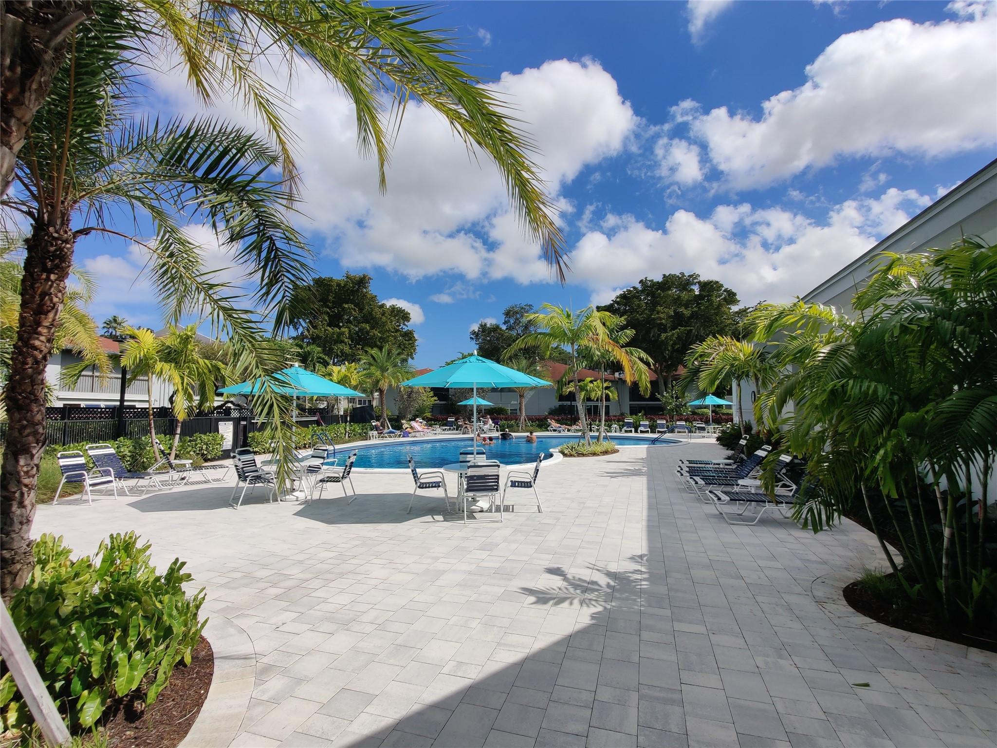 Bright and updated 2BR/2BA ground-floor corner unit in a beautifully maintained 55+ gated community! Enjoy effortless living with no stairs and easy access throughout. This spacious home offers impact windows, a large kitchen with breakfast nook, ceramic tile and laminate flooring, full-size washer/dryer, walk-in closet in the master, and a peaceful enclosed patio with a garden view. New AC, natural light, and ample storage. One of the best features? The brand-new clubhouse with gym and pool is located directly behind the unit—just steps away from your patio! Enjoy lighted walking paths, benches, BBQ grills, and an active, friendly community. Assigned parking right at your front door, plus plenty of guest spaces. Walk to Publix, shops, and dining. Florida living made easy—inside and out!