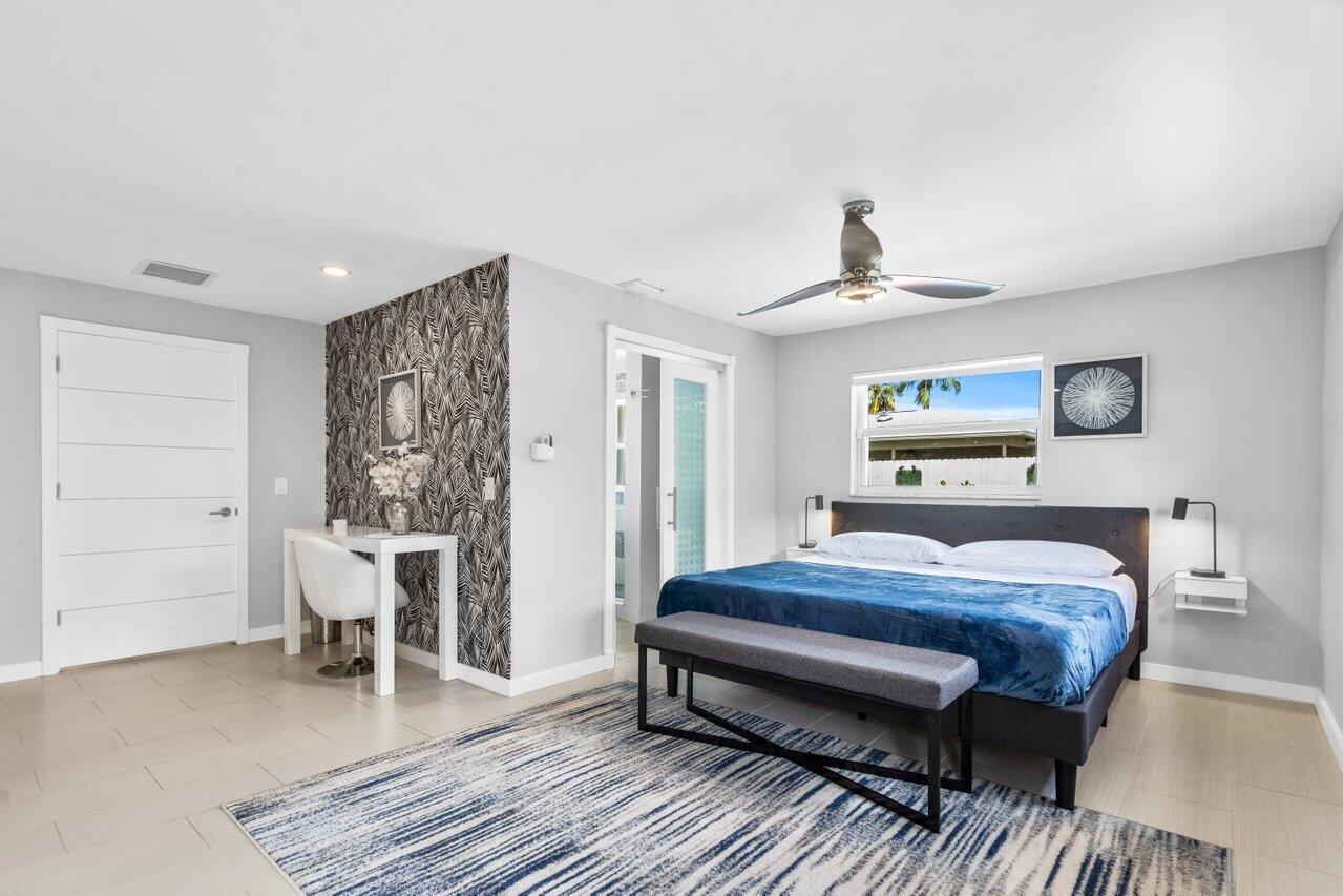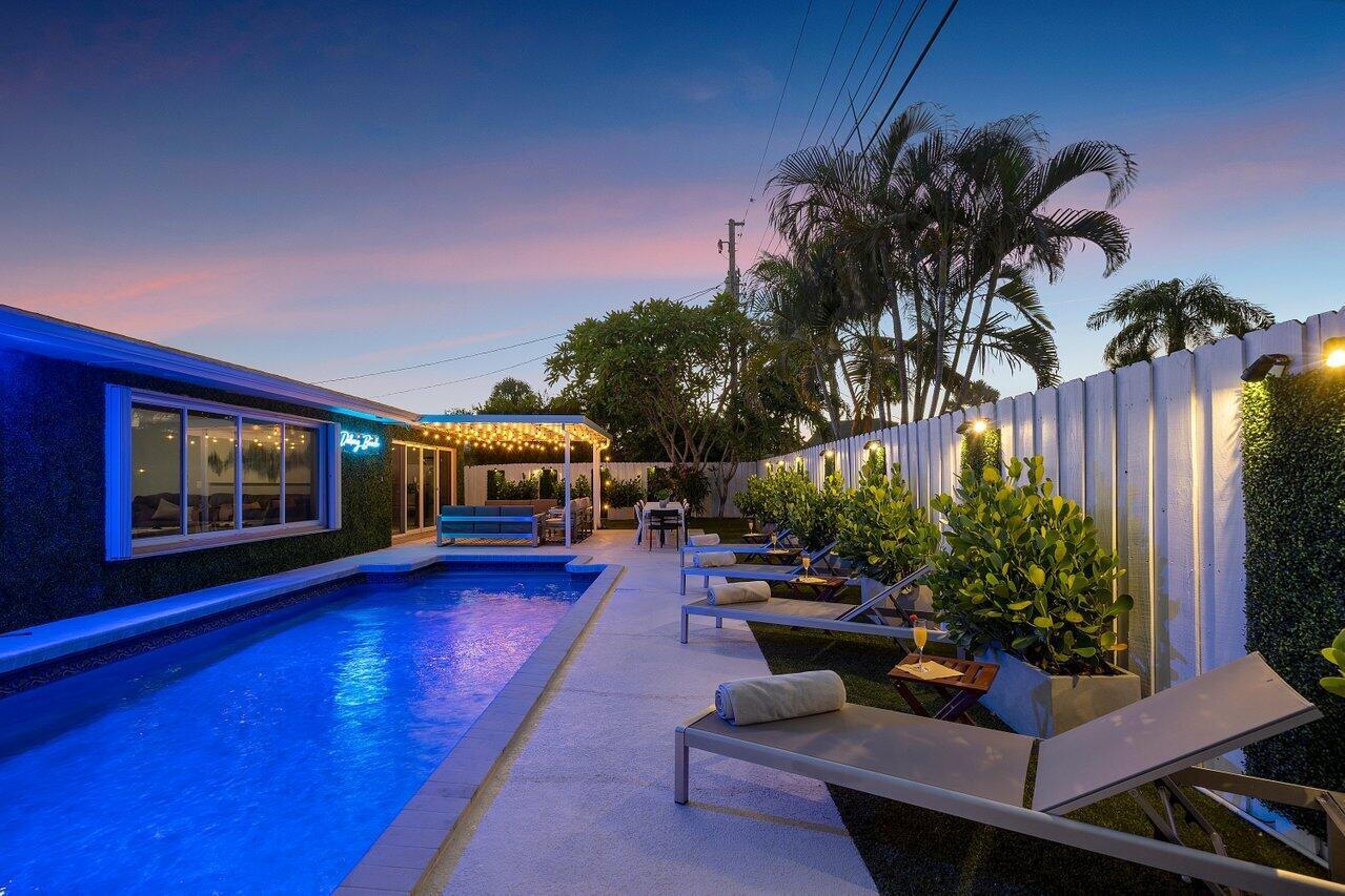 Available for annual rent, seasonal or off seasonal. Stylish & spacious vacation home rental minutes from Delray Beach & downtown. 4 bedroom 2 bathroom home recently renovated home includes a master suite w/king bed, & private bathroom, 1 bedroom w/ king bed, 1 bedroom w/2 queen beds w/sofa & 1 bedroom w/double bed.Open concept living features a large living, dining area & kitchen The pool can be heated for an additional $300 per stay.