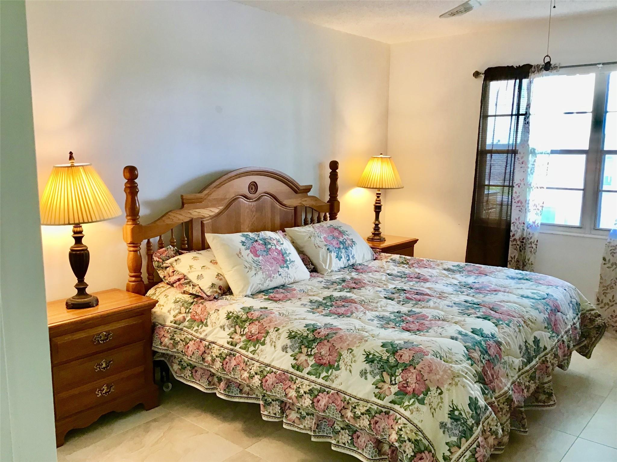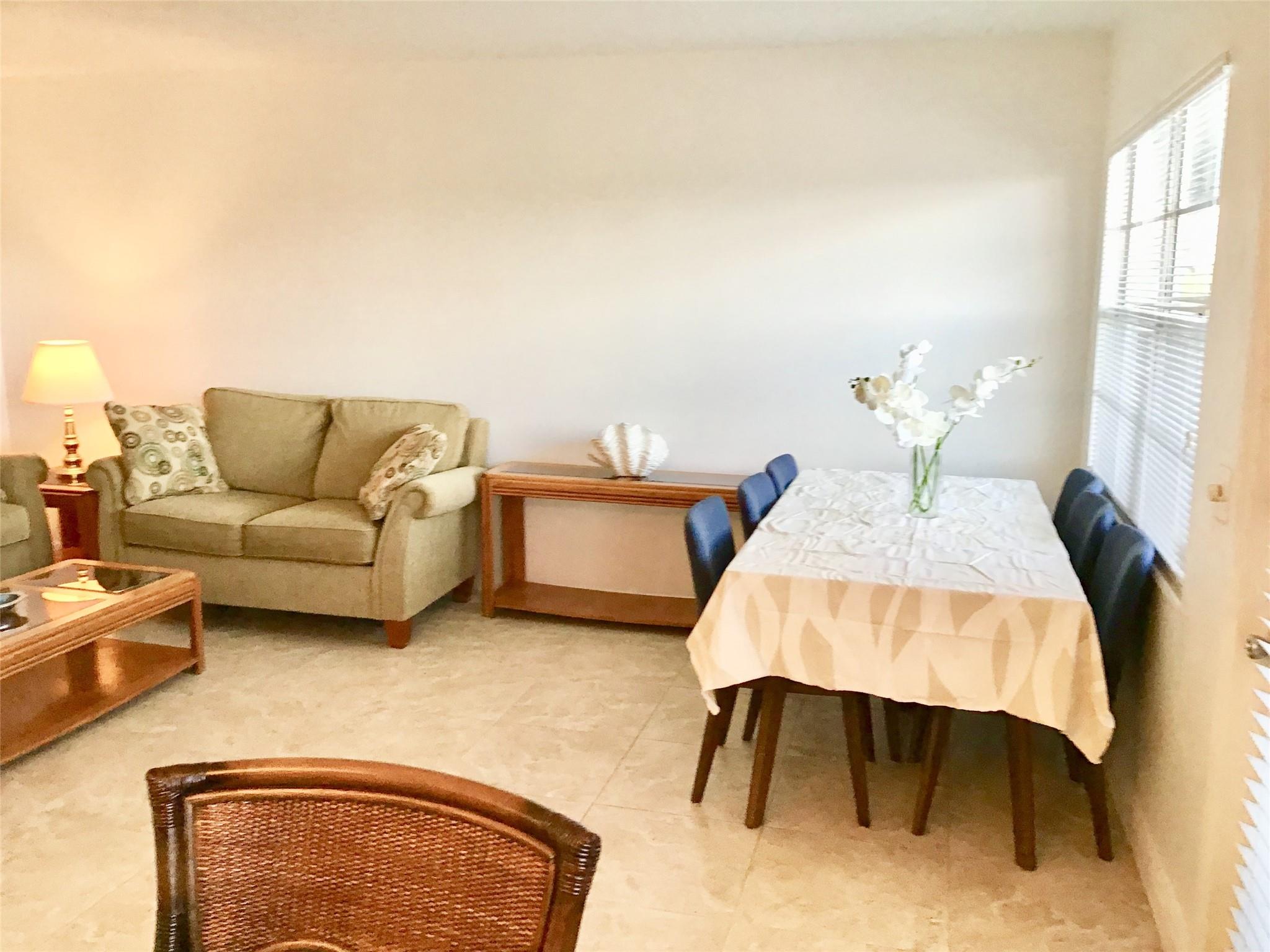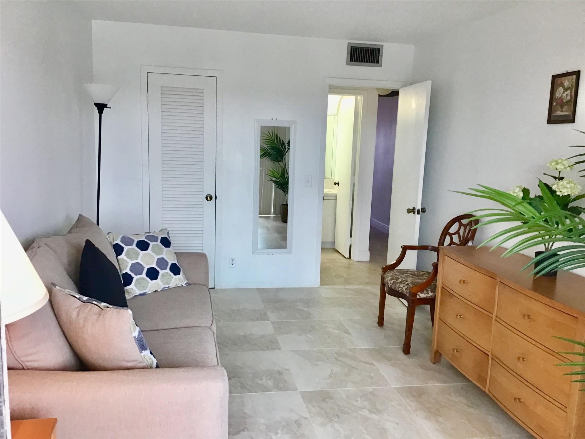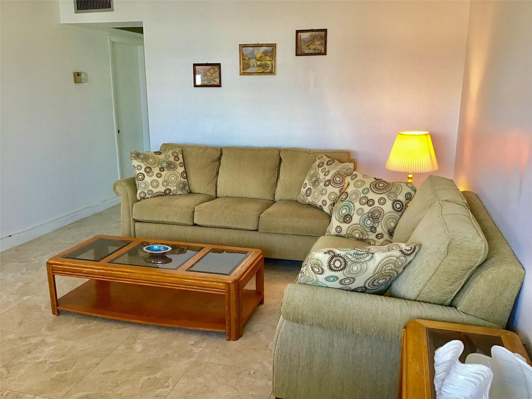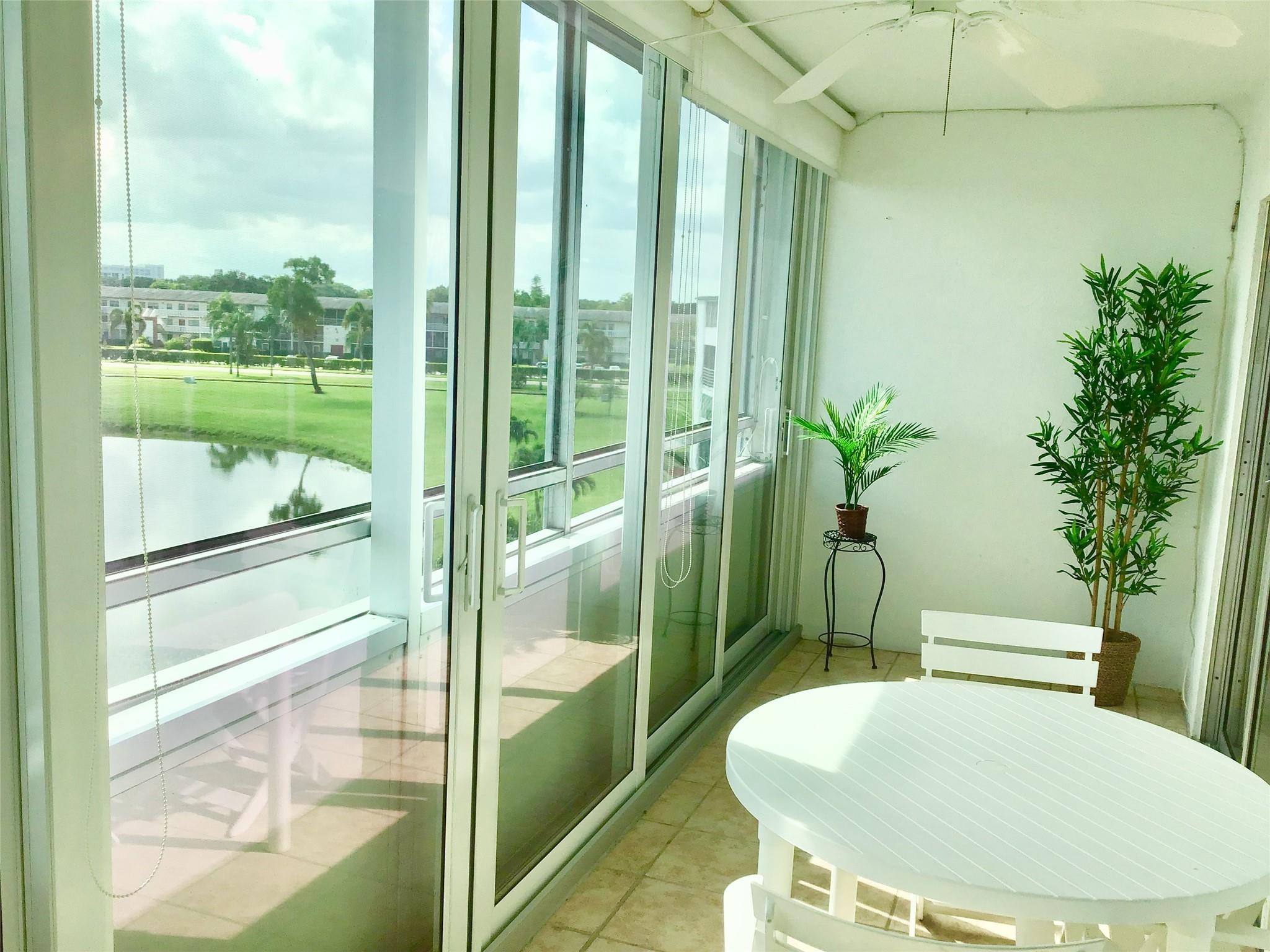 Furnished 2 Bedroom, 1.5 Bath Condo on the 4th floor with Panoramic Water Views is available for Annual Rent. Features an updated Tile flooring throughout the unit, Nice walk in shower, Good size Balcony with Hurricane sliders and much more. 2 minute walk to the pool. Comes Fully Furnished. Century Village is a Gated Active Adult 55+ community with amazing amenities including a Clubhouse with a Gym, 2 Olympic size pools(Indoor and Outdoor), Movie Theater, ping pong, Billiard, card rooms, Tennis courts, Biking and Jogging lanes, Concerts, Daily activities and Much more. Cable/Internet, water/sewage, garbage removal and much more is all included in the rent. Tenant pays only electric. Has an assigned parking spot with Plenty of Guest Parking available. First, Last and Security to move in.