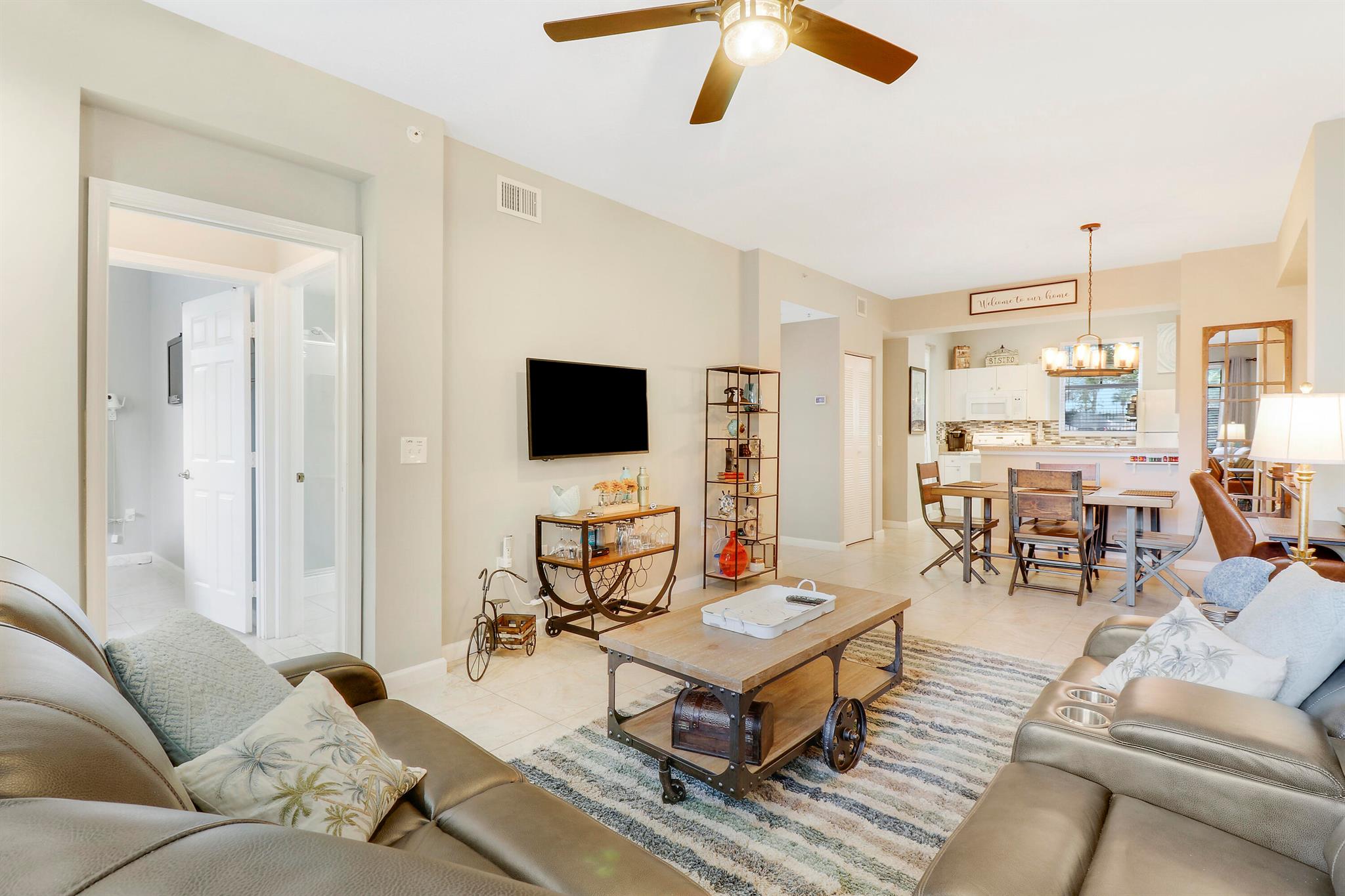 Adorable and Updated 2 bedroom 2 bathroom furnished condo available short term and available for season! Located in the heart of Abacoa overlooking tree lined streets. Walking distance to shops, restaurants and the stadium! Enjoy the front porch or the back patio for your morning coffee. Designated parking space with plenty of additional parking, TV / internet, pool and fitness center included! Pets on a case by case basis.