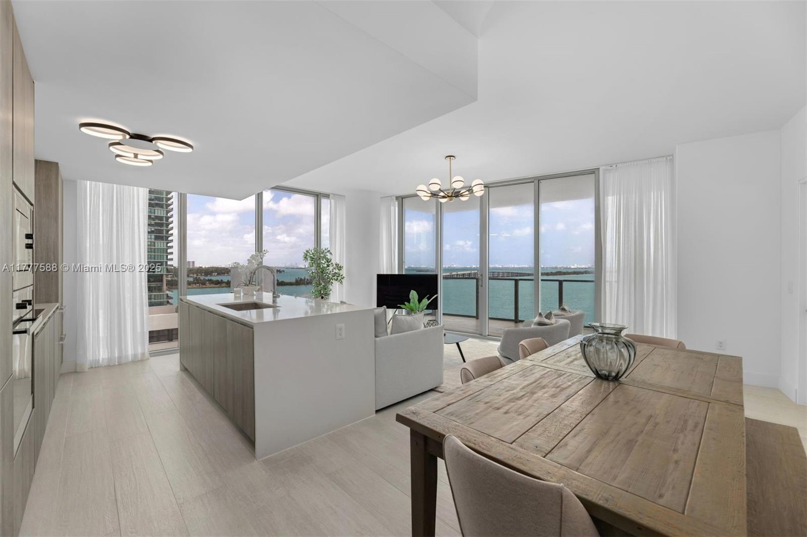 Annual rental! Stunning 3-bedroom + den, 4-bath condo at Biscayne Beach – fully and impeccably furnished in a contemporary style! Natural light throughout! Breathtaking ocean views pour in through 10-foot floor-to-ceiling windows and spacious outdoor living areas. Enjoy the privacy of your own foyer and exclusive elevator entry. High-end appliances, quartz countertops, modern custom cabinetry. Luxury amenities including a beach club with cabanas, resort-style pool, tennis courts, sauna, steam room, playroom, beach volley court, business center, and dog park. Includes two parking spaces. ***The 02 line will be undergoing exterior work and the balconies will be closed off and windows facing East will be covered from approx July 2025-Jan 26. Price will be adjusted for those months***