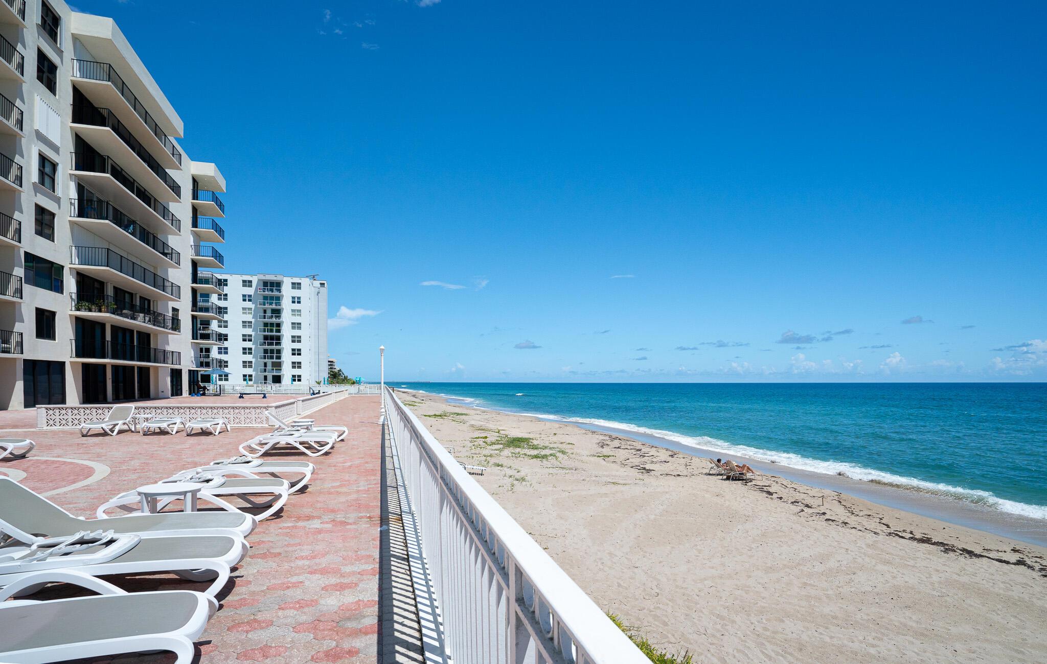 Stunning Ocean Views! This layout is extremely unique and desirable for the building as it is the Oceanfront unit. This lovely condo boasts a wide layout with 2 balconies totaling over 330 sq ft of outdoor space, each with beautiful views of the ocean. Complete Hurricane Impact Glass Sliders and Windows throughout. This building offers an oceanfront pool and deck, fitness room, personal storage, bike storage, and more. Located in the highly desirable South Palm Beach Island, you are surrounded by shops, restaurants, golf, and much more. Only 15 minutes from the airport and Worth Ave. Come and see for yourself!