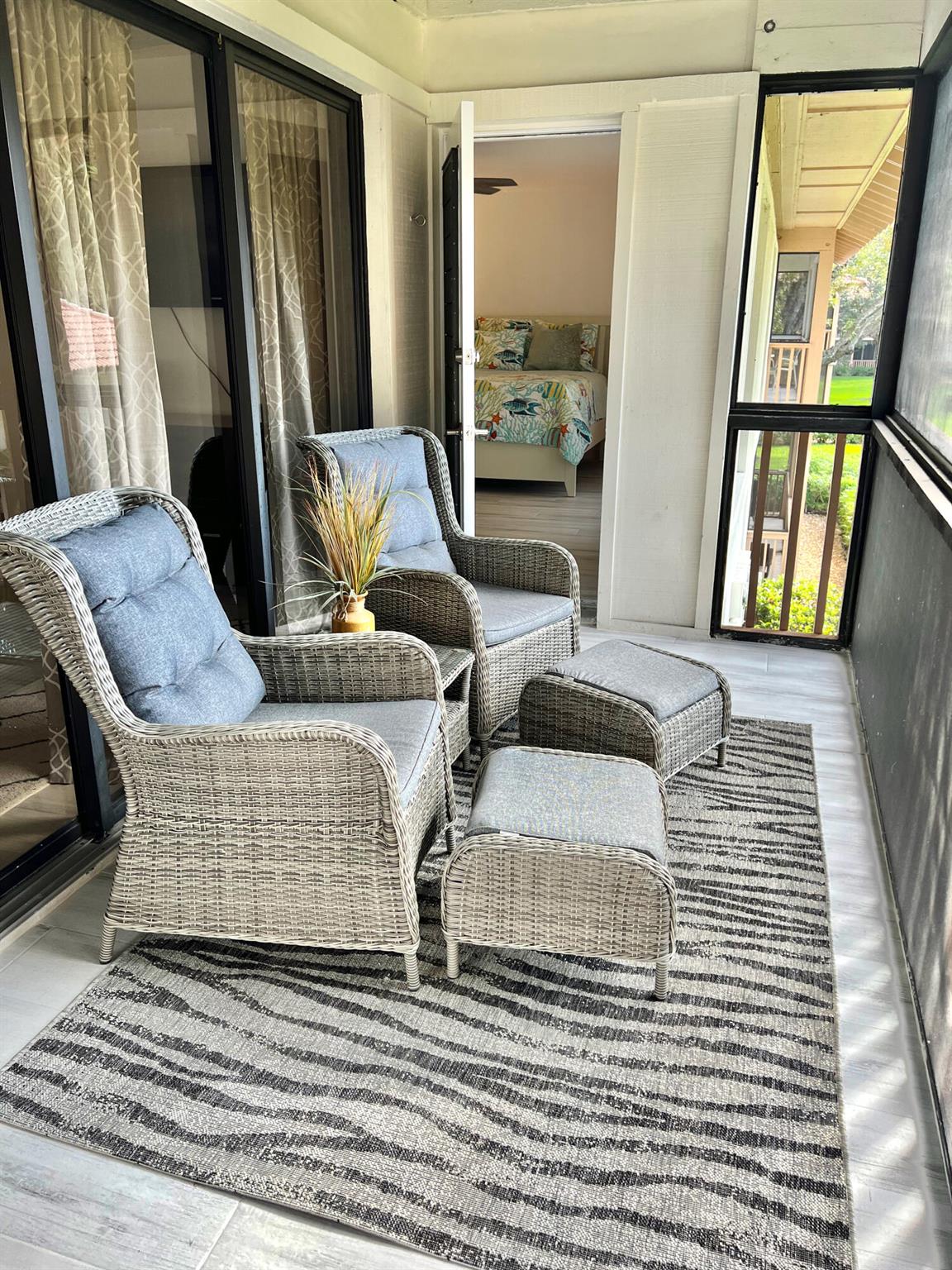 Available for seasonal or annual rental. Private Entrance. All new light grey porcelain plank tile throughout. Guest and master bathrooms have been renovated, new toilets, vanities, mirrors,,lighting, tile work and glass seamless shower doors. TV's have been wall mounted and all new ceiling fans installed. Outside wraparound balcony floor has been tiles as well.