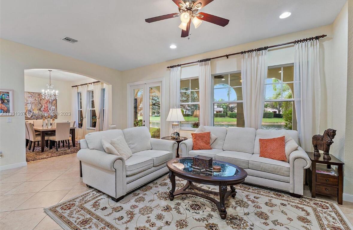 Watch sunsets over the lake from this Prime Location near the Clubhouse in sought-after community of Evergrene! Make this your home this winter. Immaculate lakefront and beautifully furnished and fully equipped 3 bed/2.5 bath Sequoia model, spacious floor plan, extended sitting room/office option and balcony overlooking lake from the Primary Bedroom. Bright family, kitchen, dining room overlook the lake with custom plantings. Sitting room upstairs adjoins bedroom. Evergene is a Audubon International Gold Signature Sanctuary with wildlife/waterfowl, preserve, and lakes. Resort-style amenities/infinity pool, Tiki bar, pickleball, fitness & yoga rooms, children's water park and playground. Close to beach, shops, golf & Palm Beach International Airport. A great place to spend the winter.