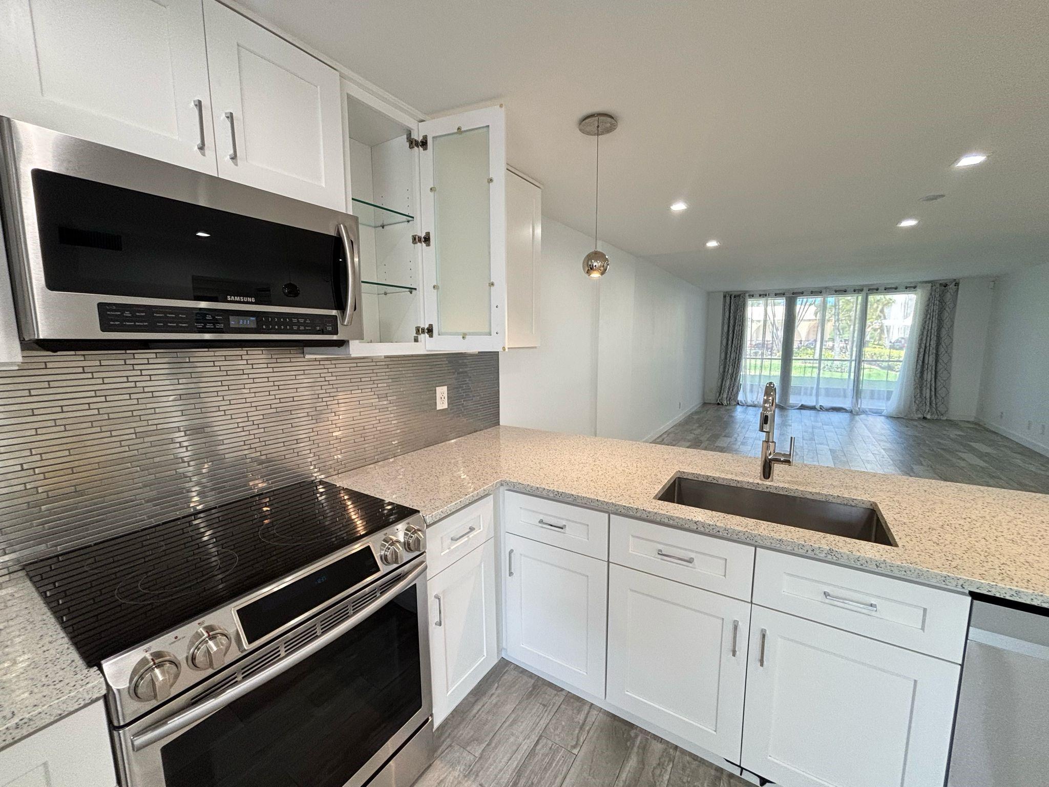 RECENTLY REDUCED!!! 1ST AND SECURITY DEPOSIT WITH ABOVE AVERAGE CREDIT SCORE!!! STUNNING SPACIOUS 2 BED 2 BATH LOCATED MINUTES AWAY FROM THE BEACH. THIS GROUND FLOOR UNIT IS FULLY UPDATED FROM TOP TO BOTTOM WITH QUARTZ COUNTERTOPS, STAINLESS STEEL APPLIANCES, WHITE CABINETS IN THE KITCHEN, VINYL FLOORING THROUGHOUT THE ENTIRE UNIT. BOTH MAIN AND GUEST BEDROOM HAVE AMPLE CLOSET SPACE WITH UPDATED BATHROOMS. UNIT ALSO HAS INUNIT STACKABLE WASHER & DRYER WITH IMPACT WINDOWS. ENJOY THIS MOVE IN READY HOME PRICED TO BE RENTED WITH CLOSE PROXIMITY TO THE BEACH AND EVERYTHING DEERFIELD HAS TO OFFER