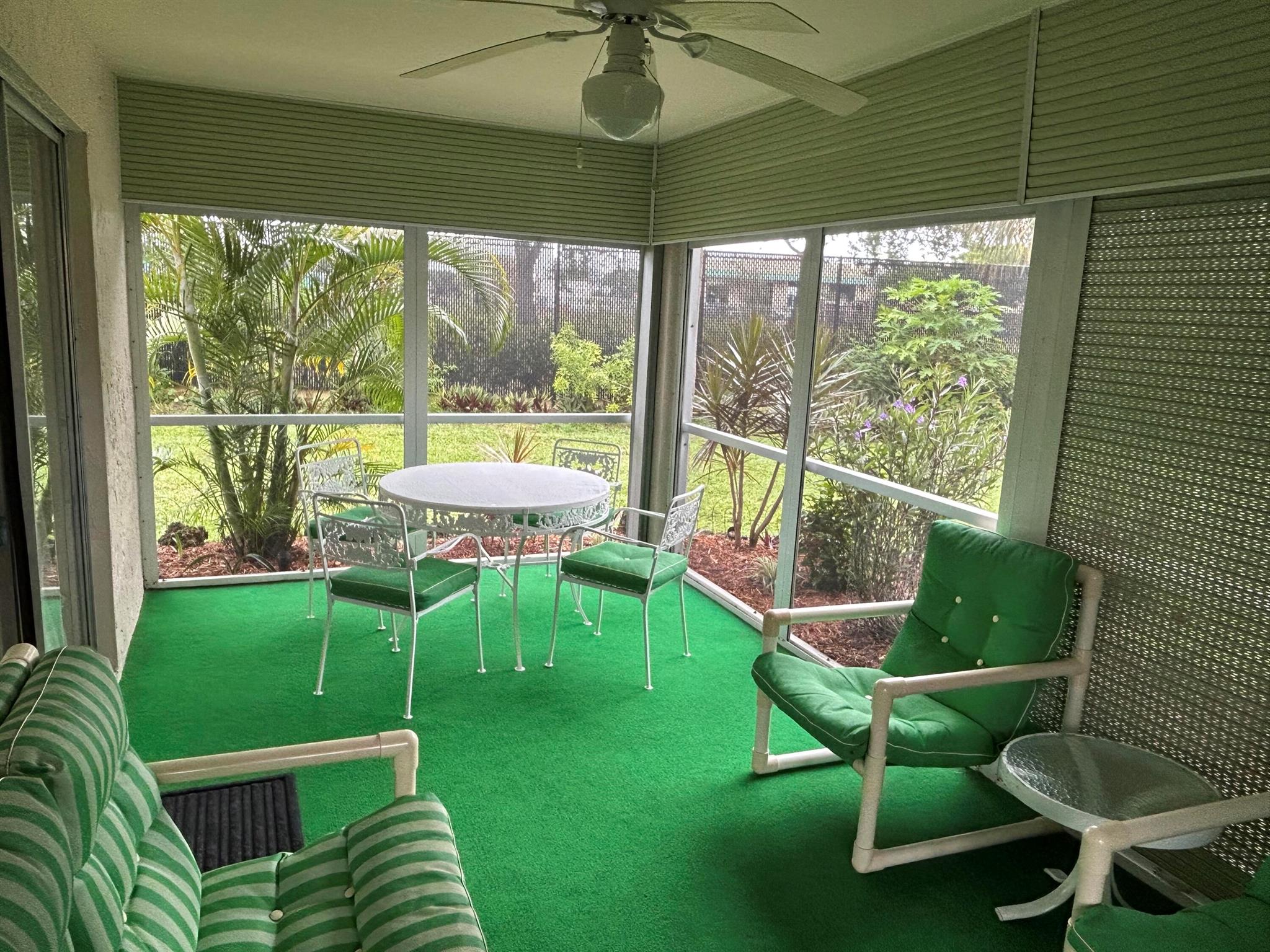 Spacious 2-bedroom, 1 and one half-bathroom, single-family home situated on a premium lot! Enjoy true South Florida living with a huge private screened-in patio, ideal for relaxing or entertaining. Immaculately maintained and move in ready featuring fresh paint inside and out and new appliances! Rent includes lawn maintenance, cable, water, sewer, and trash - an incredible value! Located just 2.5 miles from the beach, this home also offers hurricane protection on all windows for peace of mind. Community pool, weight room, shuffleboard and bocce ball. Annual lease only. Located in a vibrant 55+ active community.