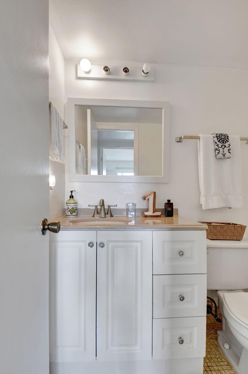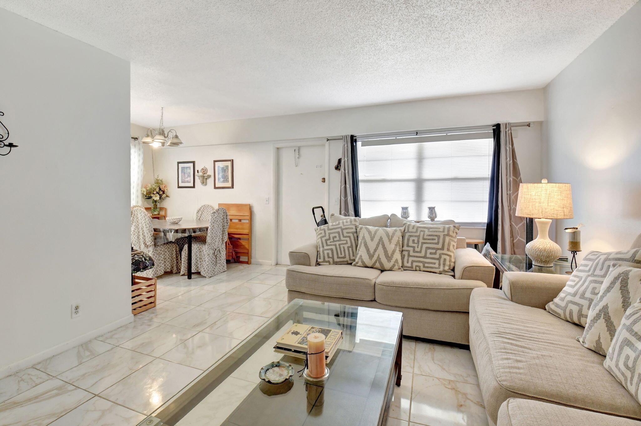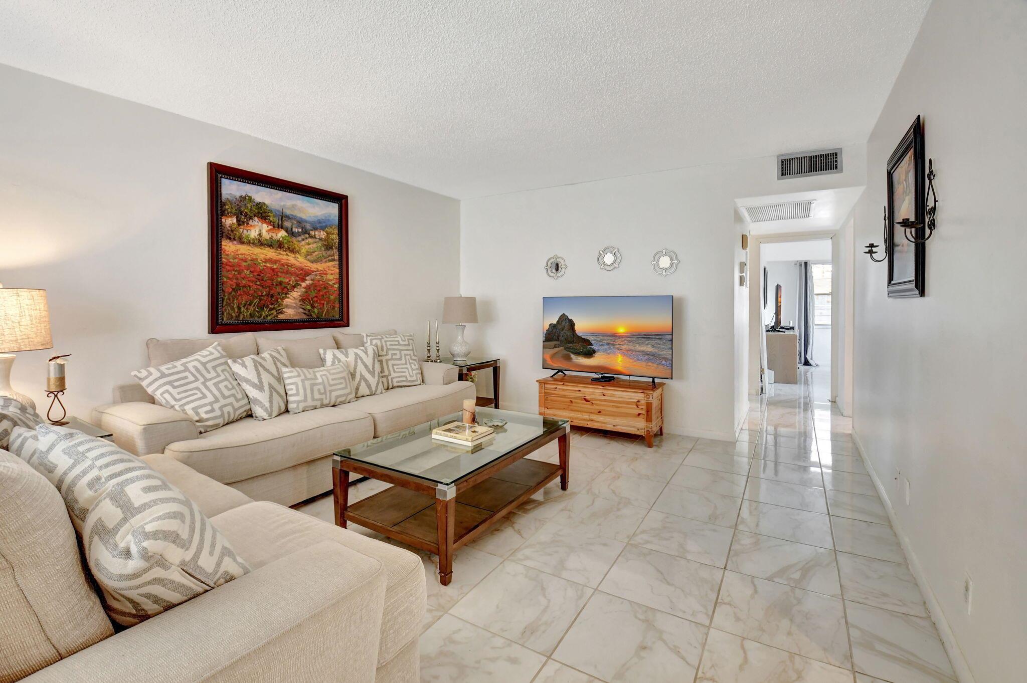 Discover your new retreat in the heart of Boca Raton's coveted 55+ Century Village! This beautifully remodeled 2-bedroom, 1.5-bath corner unit boasts a fresh and stylish interior with a completely updated kitchen featuring brand-new appliances, sleek countertops, and contemporary cabinets. Every inch of this home, including the enclosed patio, is tiled, creating a cohesive and low-maintenance space perfect for relaxation. Both bathrooms have been elegantly updated, with a glass-enclosed stall shower to be completed soon. Freshly painted and truly move-in ready, this property is more than just a home--it's a lifestyle. Enjoy Century Village's vibrant amenities, from pools and fitness centers to social events and shuttle services, all within a lush, well-maintained community.