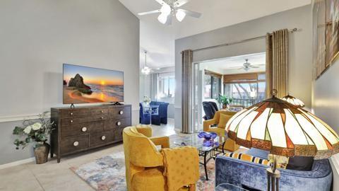 Just bring your toothbrush! Spacious beautiful lakefront rental in the heart of Juno Beach is featuring 3 bedrooms, 2 bathrooms, a one car garage. A ton of natural light comes through this corner residence. A large living and dining area with vaulted ceilings opens to a light filled sunroom, extending your living space and creating the ideal space to entertain, lounge and enjoy the serene water views. The primary suite features beautiful views, a large walk-in closet and a bathroom. Located in beautiful Sea Oats featuring a heated pool, clubhouse, table tennis and tennis courts. Walking distance to restaurants and stores, gorgeous beaches and I95 just minutes away. THIS PRICE IS FOR AN ANNUAL LEASE ONLY