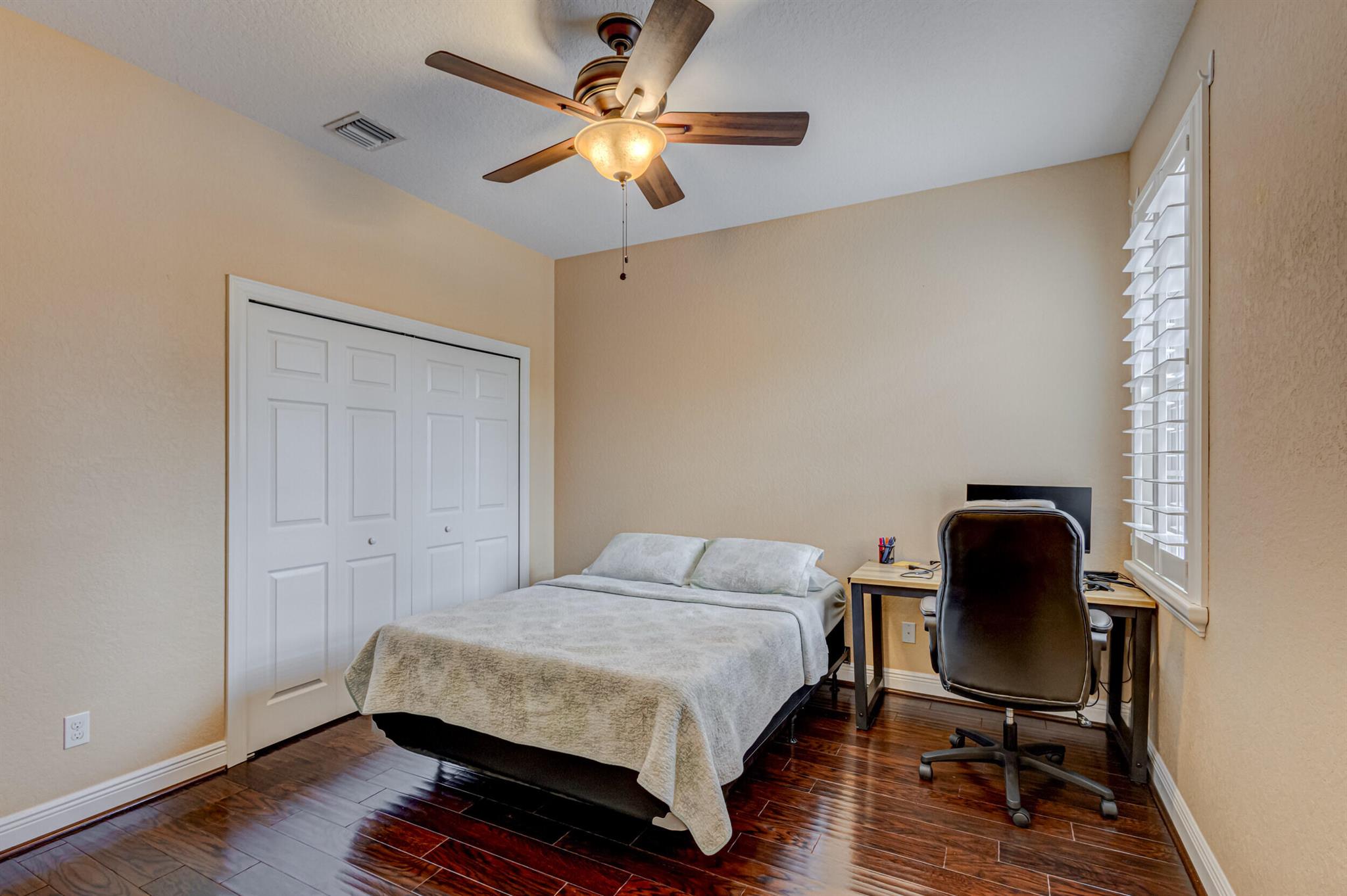 Annual unfurnished rental available 11/7/2025 in the heart of Palm Beach Gardens close to everything offering 3bed/2.5bth/2car. Enjoy the open plan living downstairs with your oversized private fenced courtyard & lush landscaping to enjoy the shaded afternoons. Interior features include full impact windows & doors, plantation shutters, all tile down stairs and wood flooring upstairs, custom wall paper, dual walk in closets. Pets allowed. Close to community pool. Gated community close to I95 & Turnpike. Minutes to white sandy beaches, Gardens Mall, shopping, fine dining, golf and so much more. Easy commute to I95, Turnpike & PBI airport. Tenant to pay electric.