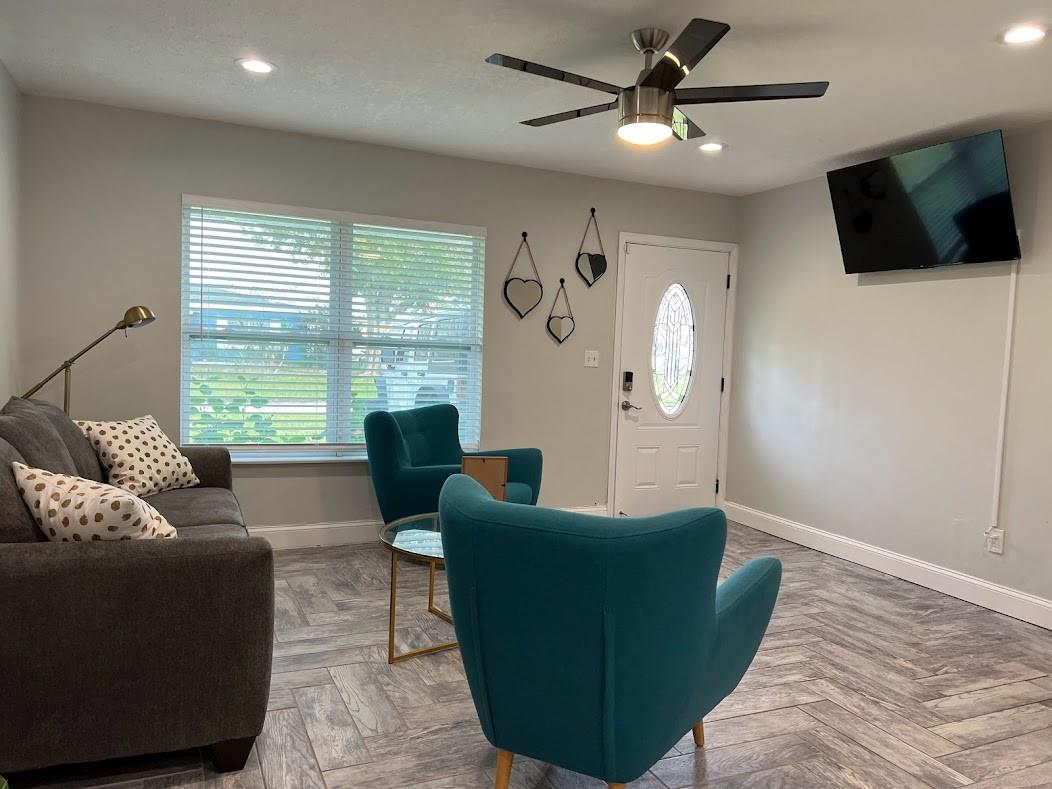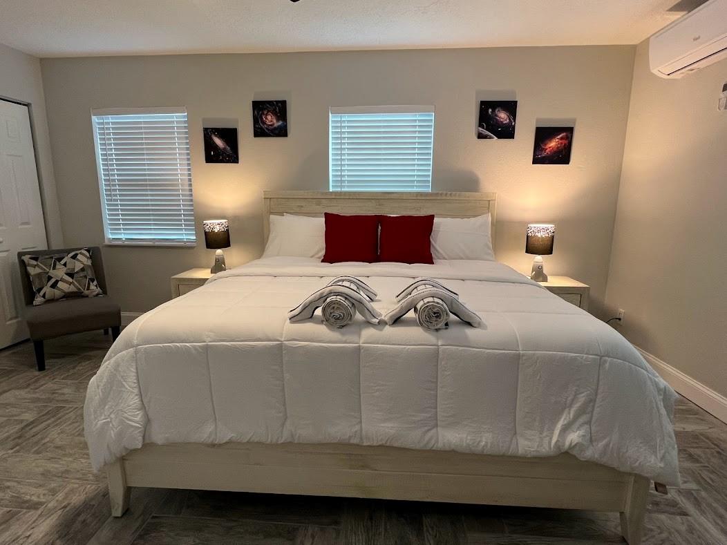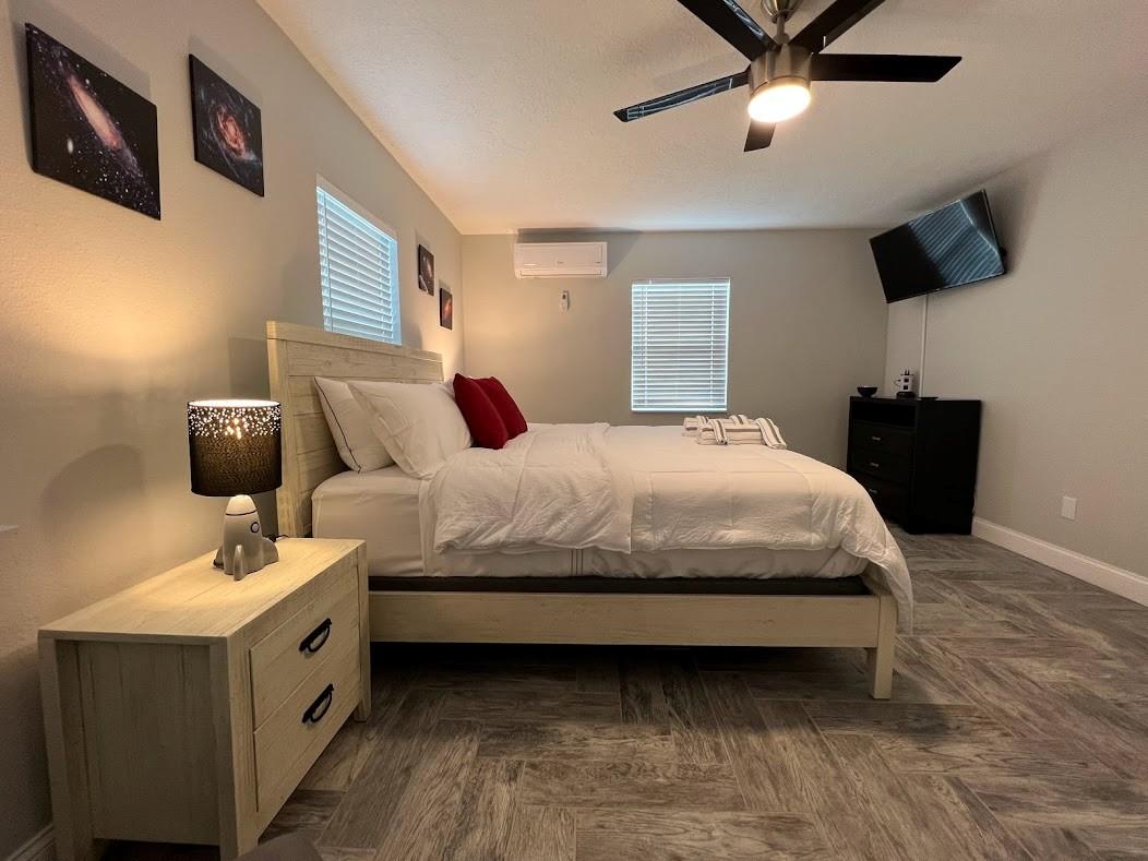 Single Family Home for rent (short term rental) minimum 3 months. All utilities included. 5 minutes away from the Melbourne Downtown. Everything inside is clean, new & ready for you. This home is located 5 minutes away from the Melbourne Airport, 5 minutes from Holmes Regional Medical Center, 8 minutes from Indialantic Beach and Canova Beach. The Patio, with new turf, is the best. You can play Soccer, Volleyball, Pickleball, Cornhole and after you can take an outside shower. VERY CLEAN PLACE. The house has 4 bedrooms and is described as Space Room, Mickey Mouse Room, Harry Potter Room and Star Wars Room, all with Galaxy sky light projector, charging station and TV with HDMI wires to connect any device. Also the house is equipped with the following: continued in supplement remarks...