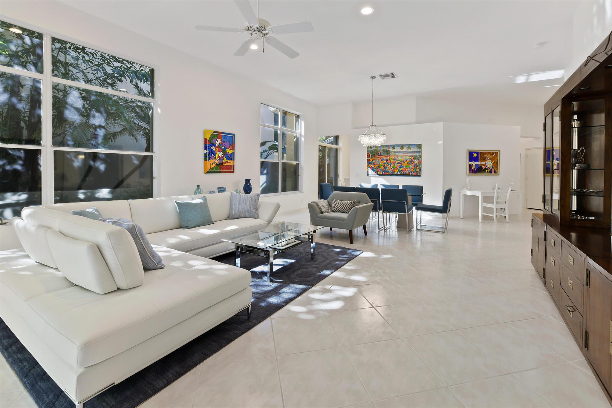 Enjoy the quintessential Boca Raton lifestyle in this bright, beautifully furnished turnkey, 3 bedroom, 2 bathroom single family home located within the prestigious, guard gated community of The Banyans at Broken Sound . Offering 1,950 sq. ft. of comfortable living space. This is a rare opportunity for those seeking style and relaxation in a fantastic central Boca location.Turnkey Furnished: Move right in! This home comes complete with newer modern furnishings, linens and cookware!Spacious Layout: Featuring a sought sought after split bedroom plan, high cathedral / volume ceilings and large windows throughout, creating an airy, open atmosphere. Master Suite Retreat: The ground floor primary bedroom includes a luxurious master bath with dual sinks, a separate shower
