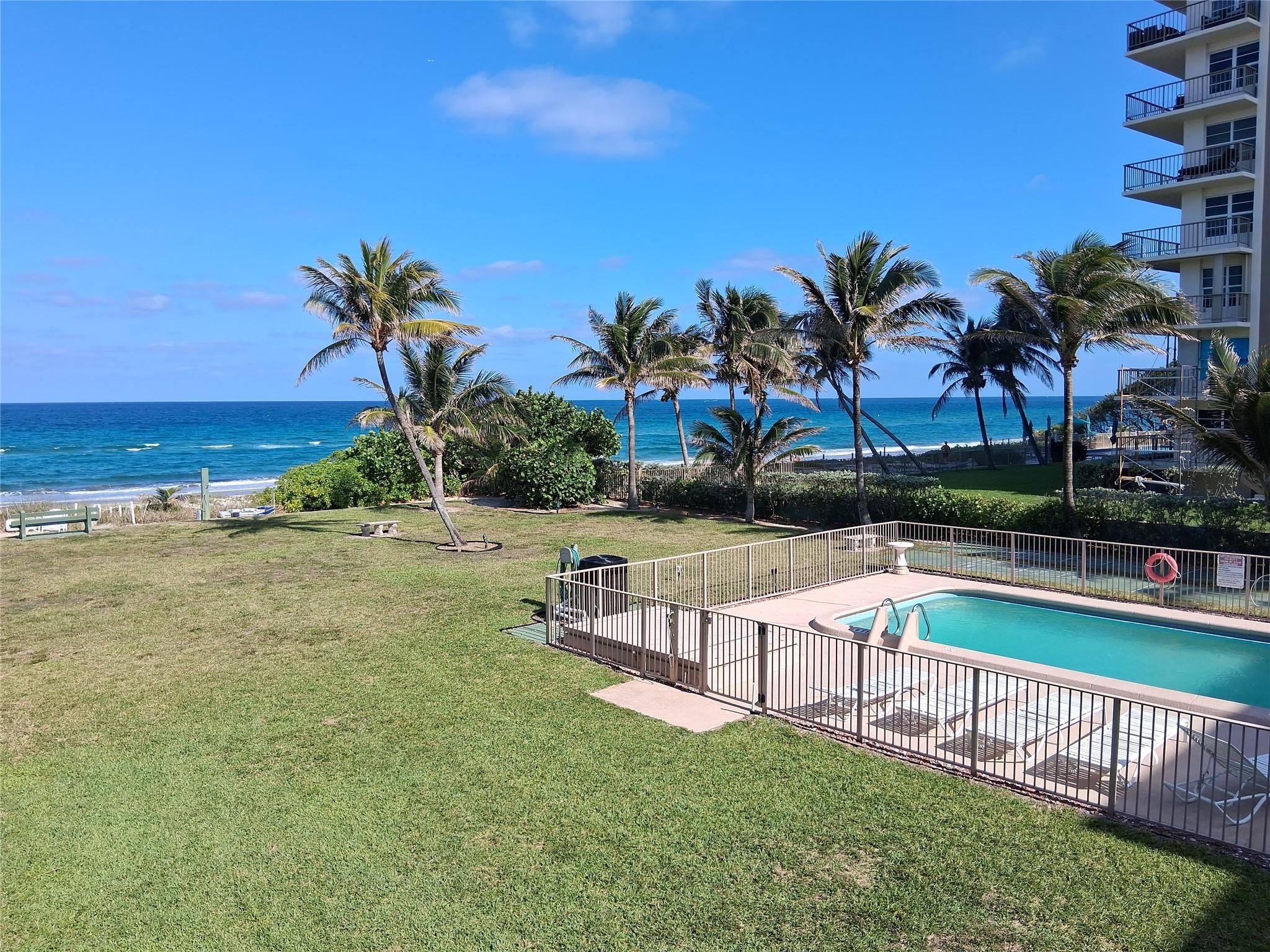 Enjoy coastal living at its best in this 2-bedroom,2-bath condo with stunning ocean & pool views from the living room & private balcony. Located on the exclusive Hillsboro Mile, this residence is available for rent for 4-6 months, with consideration for an annual lease at $3,450/month. The open floor plan features a bright living room, dining area, & kitchen with a brand-new refrigerator (2025), plus newer microwave, stove, & dishwasher (2022). This unit is fully furnished & freshly painted, making it move-in ready. Impact-resistant windows & sliding doors for safety & energy efficiency. Laundry facilities are conveniently located on the 1st & 3rd floors of the building. Board approval required. No smoking. No pets. 1 assigned parking space-Letter R. Background & credit check required.