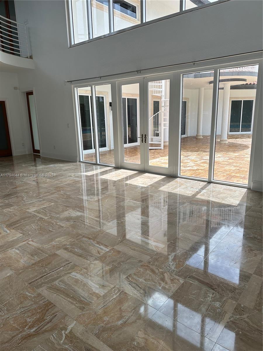 Gorgeous, gated estate spans 5,849 sq ft on 40,519 sq ft of land, offering 6 spacious bedrooms and 4.5 marble bathrooms. The interior showcases elegant marble and porcelain flooring, a fully renovated design with high-end finishes, and a gourmet kitchen featuring GE Monogram appliances and new wall oven/microwave. The private second-floor primary suite includes a marble shower, jacuzzi tub, custom walk-in closet with built-in dresser, and a private balcony with direct pool access. Each bedroom has an en suite walk-in closet, en suite bathroom, complemented by a private office and a solarium room. Outdoors, enjoy a heated pool, jacuzzi spa, 145 feet of canal frontage with koi fish, and impact windows for added security and efficiency. Your dream home starts here!
