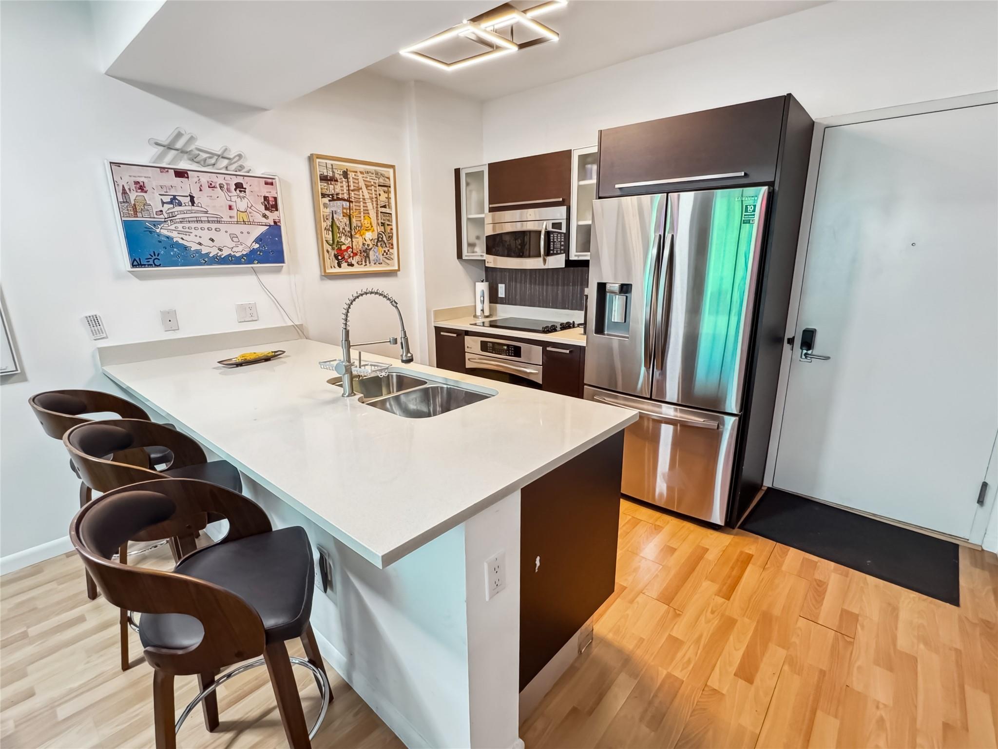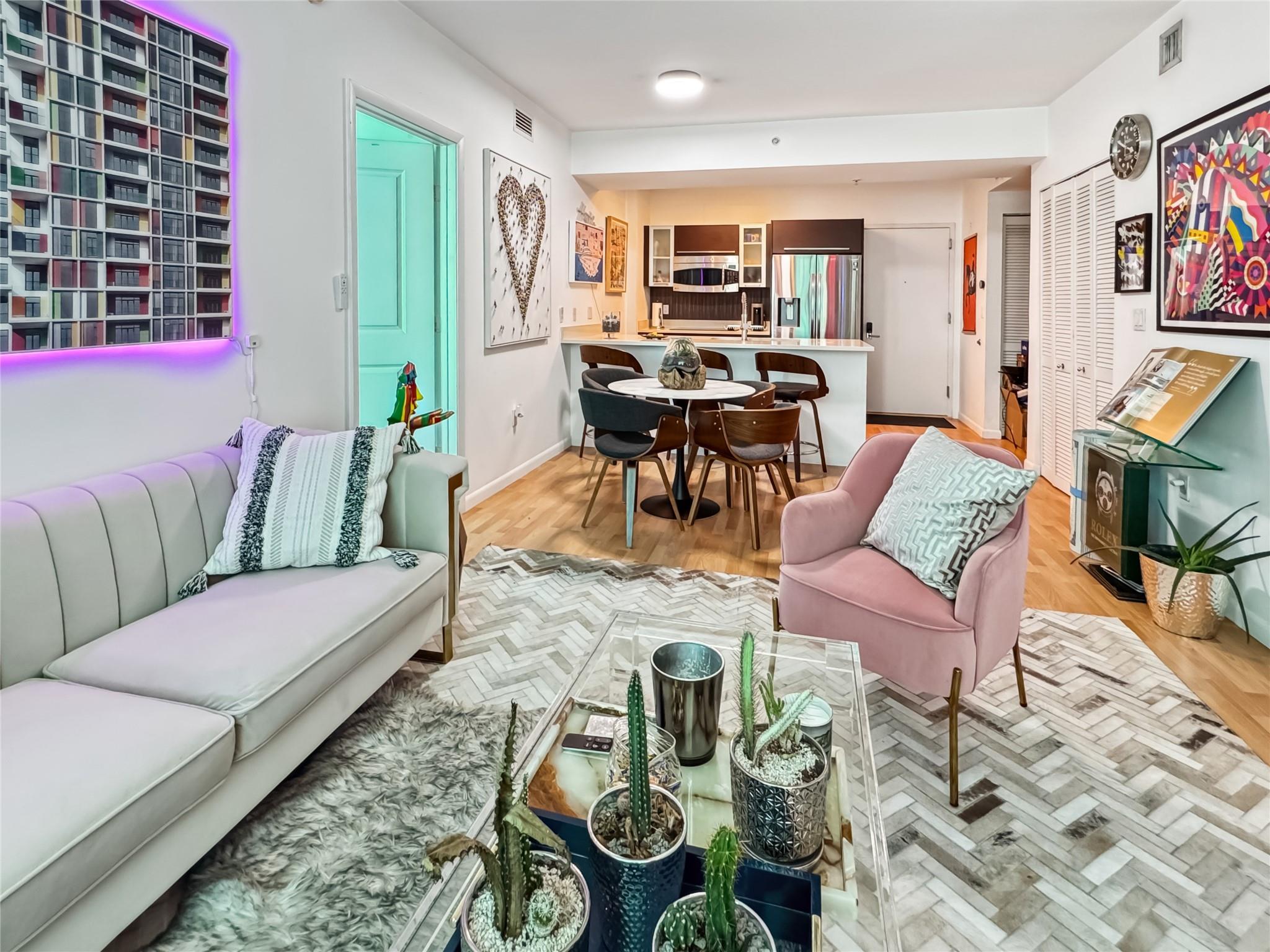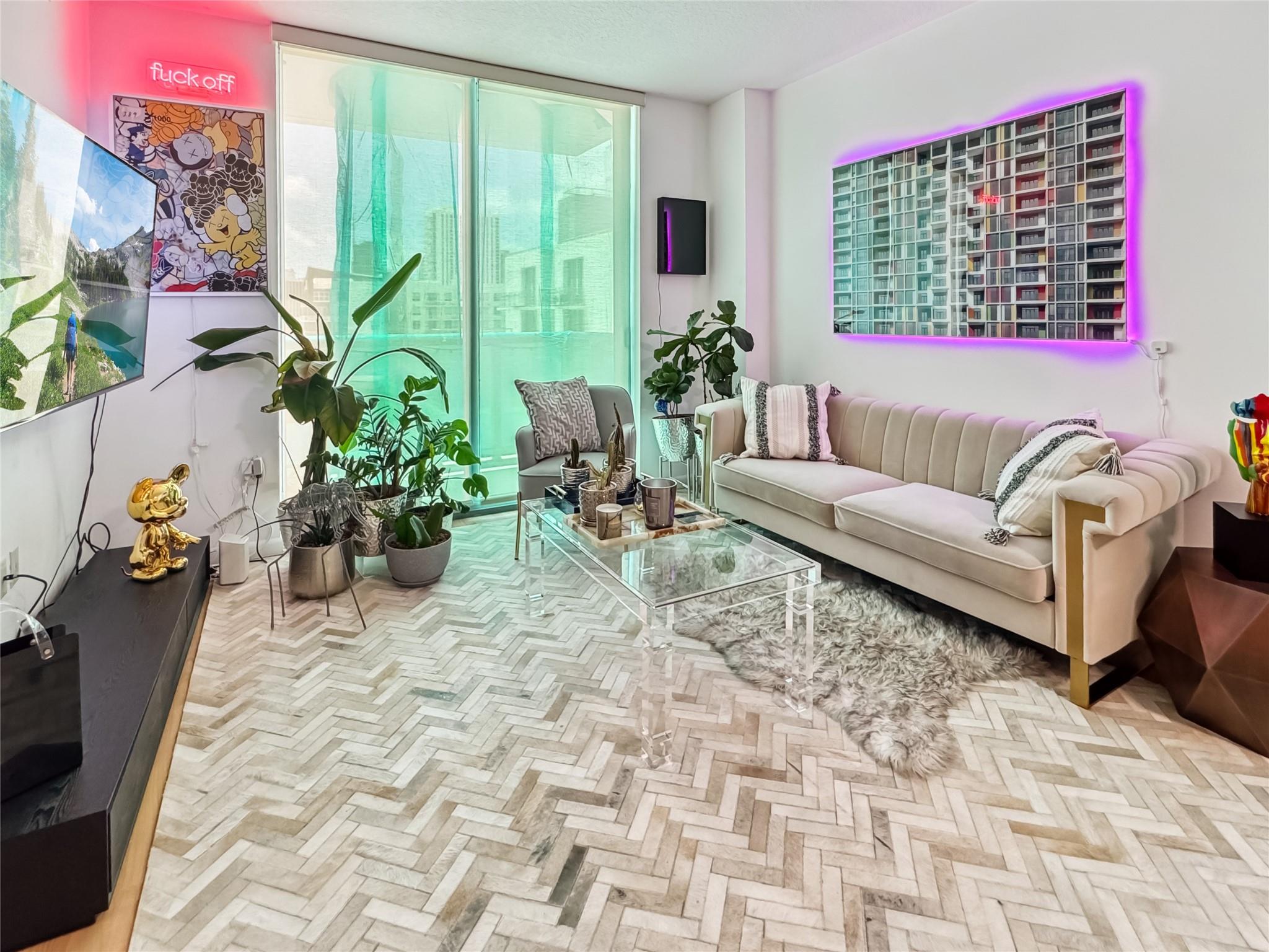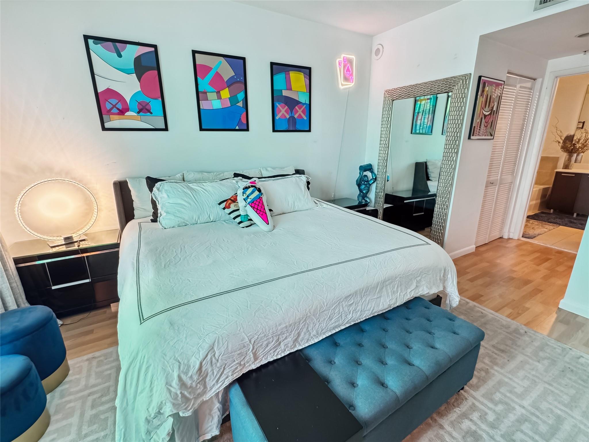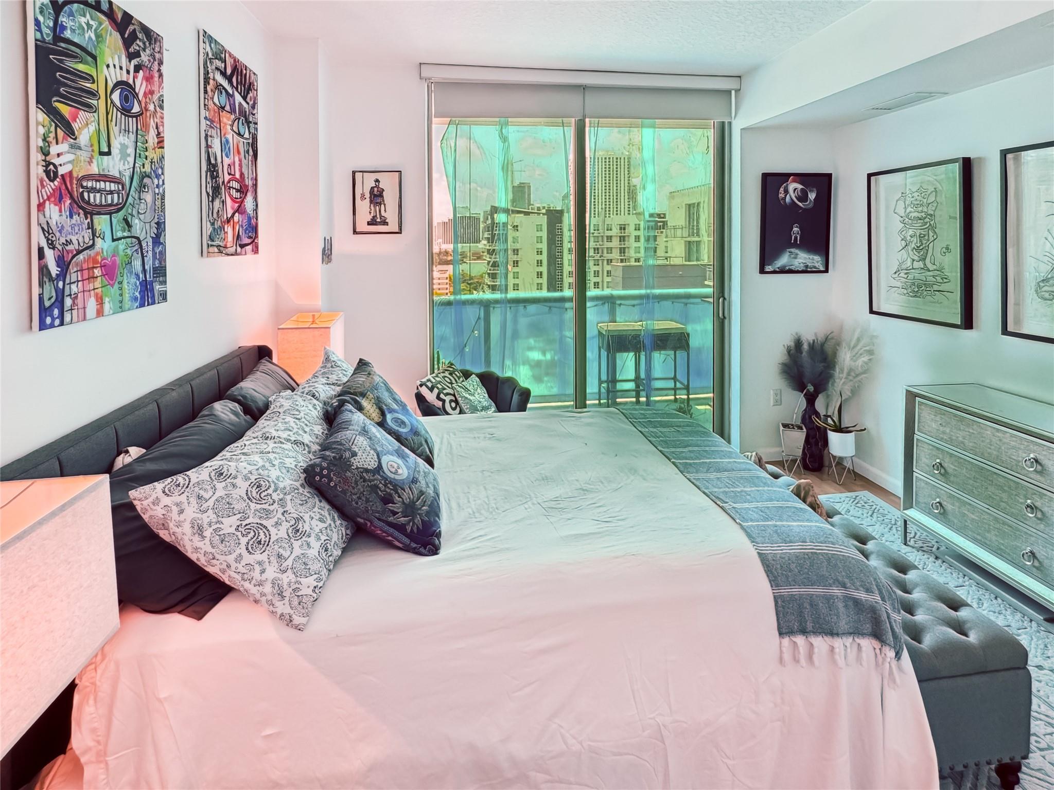 Beautiful furnished condo at Gallery Art in Edgewater. Floor plan features a split two-bedroom, two-bath plan with en-suite baths for both beds PLUS a bonus office space off the kitchen. Spacious balcony looks south with peeks at Biscayne Bay. All rooms have HUGE sliding glass doors to the outdoor space. Wood floors and ceramic tile throughout. Designer kitchen with stainless-steel appliances features a breakfast bar and dining room. High ceilings afford a contemporary open feel. HUGE washer & dryer are included. Building currently undergoing renovations that should be complete by the anticipated July 1 move date.