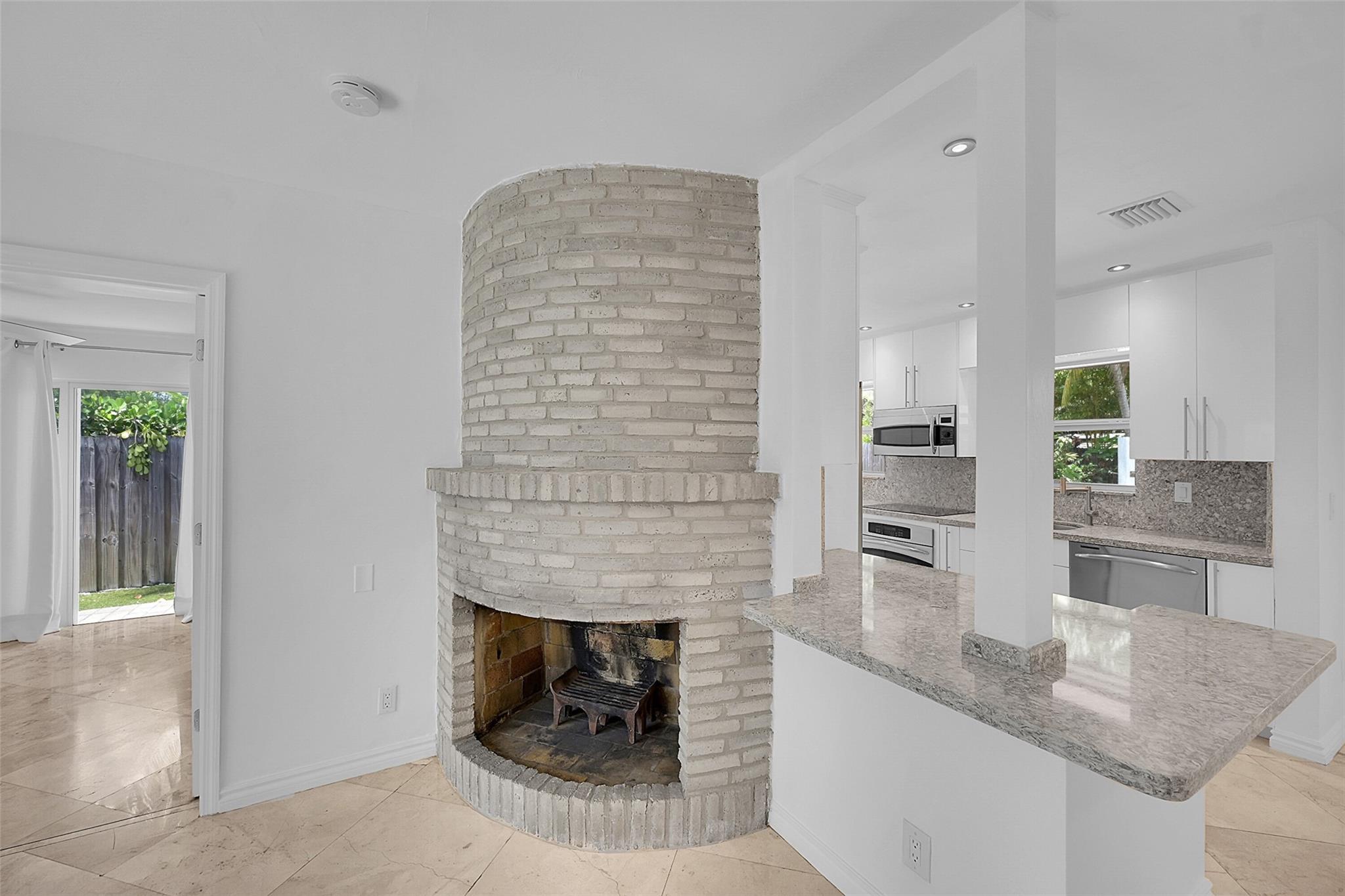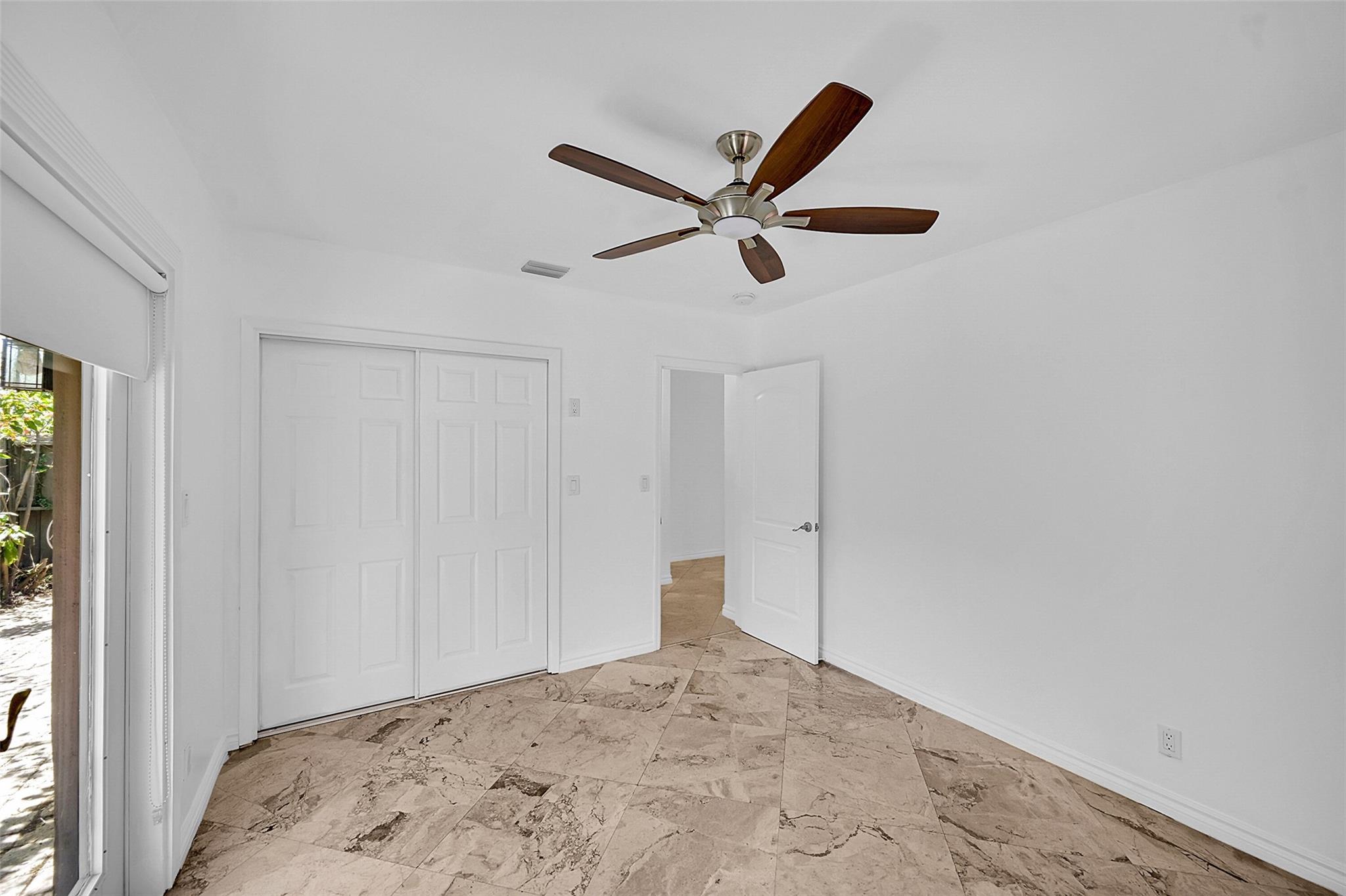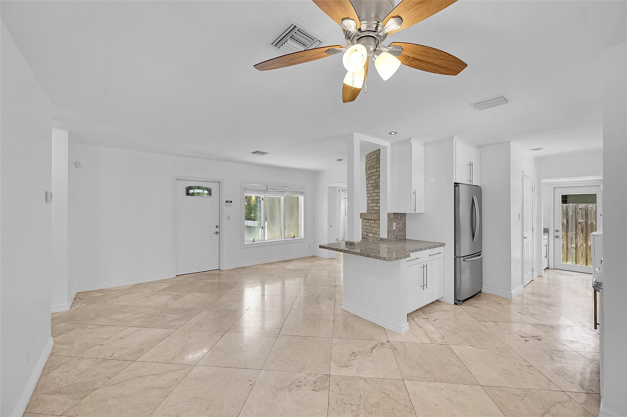 This beautiful home is located in Poinsettia Heights area of Ft Lauderdale. Enjoy the views of the large tropical backyard pool area. This three bedroom, two bath home has marble floors, renovated kitchen and baths with step- in showers. Bedrooms all have access doors to the yard. Yard has wood covered deck for out door living. The garage has been converted into third bedroom. Pool is heated.