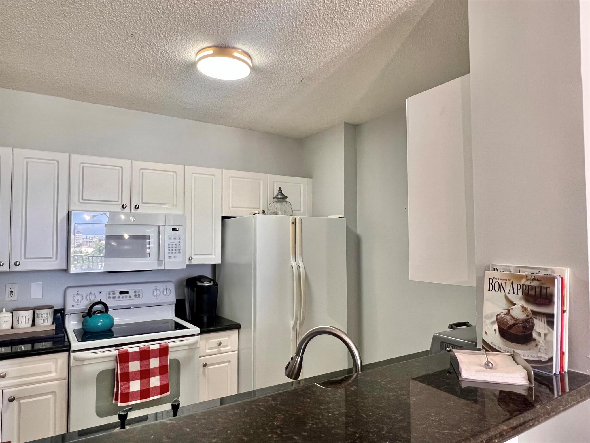 Don't miss this bright and cozy 1-bedroom, 1-bathroom fully furnished turnkey rental in the heart of Downtown West Palm Beach! Contemporary decor, fully stocked kitchen, queen-size bed, in-unit washer and dryer, and a spacious living room with a queen sofa bed and plasma TV. Just bring your luggage- forget about utilities ! ALL UTILITIES included: BASIC CABLE Wi-Fi,- WATER and ELECTRICITY up to $ 100 per month. Rental terms: Short-term lease only. Not available JANUARY through April 2026.All payments due upfront. Perfect for corporate stays or travel nurses. Secure this exceptional rental opportunity! Enjoy great amenities and a prime location--walking distance to Rosemary Square.