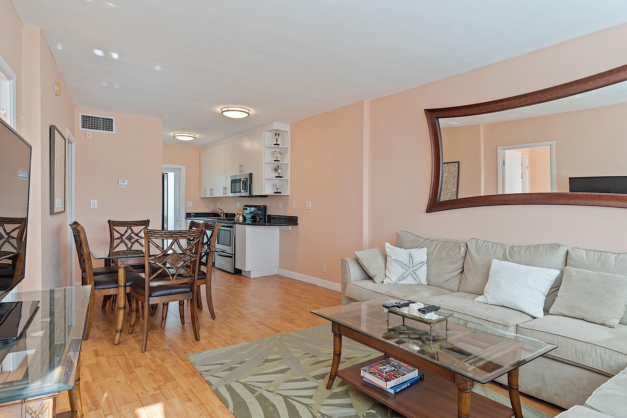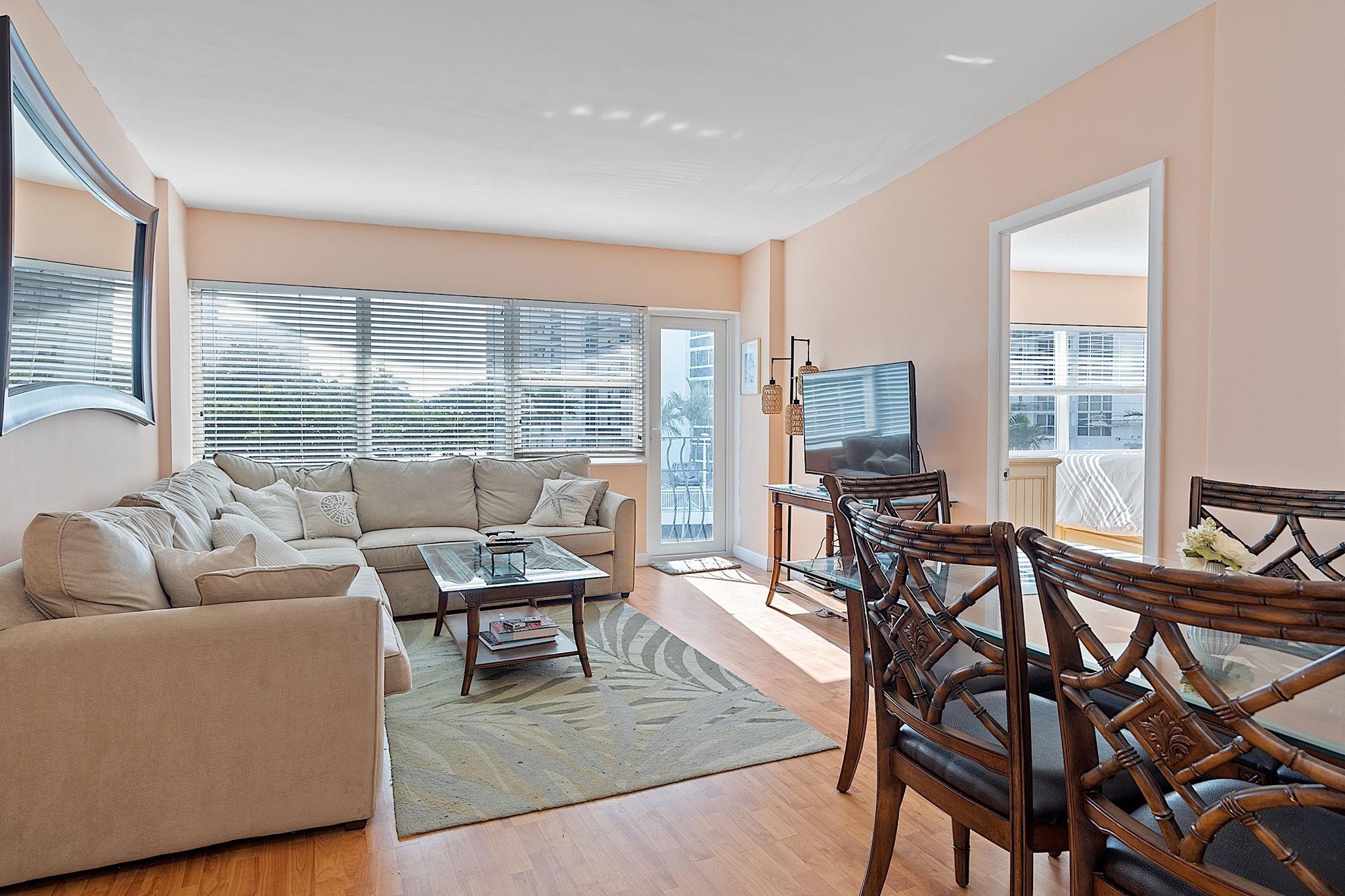 Great beach rental! LOCATION, LOCATION: 2 blocks from the beach, walk to restaurants, night life and shopping! 2 bedroom unit in Boutique condo, renovated lobby, management office on premises. Updated kitchen with granite countertops and S/S appliances. Bath includes granite top vanity and tumbled marble tiled shower. Laminate wood floors, light and bright decor. King bed and walk in closet in main bedroom, bunk beds in 2nd bedroom including a full and twin. Heated pool, outdoor BBQ area, outdoor shower, fitness center, lounge, security cameras, and furnished roof top sun deck. Great beach vibe, friendly building! Short term considered...
