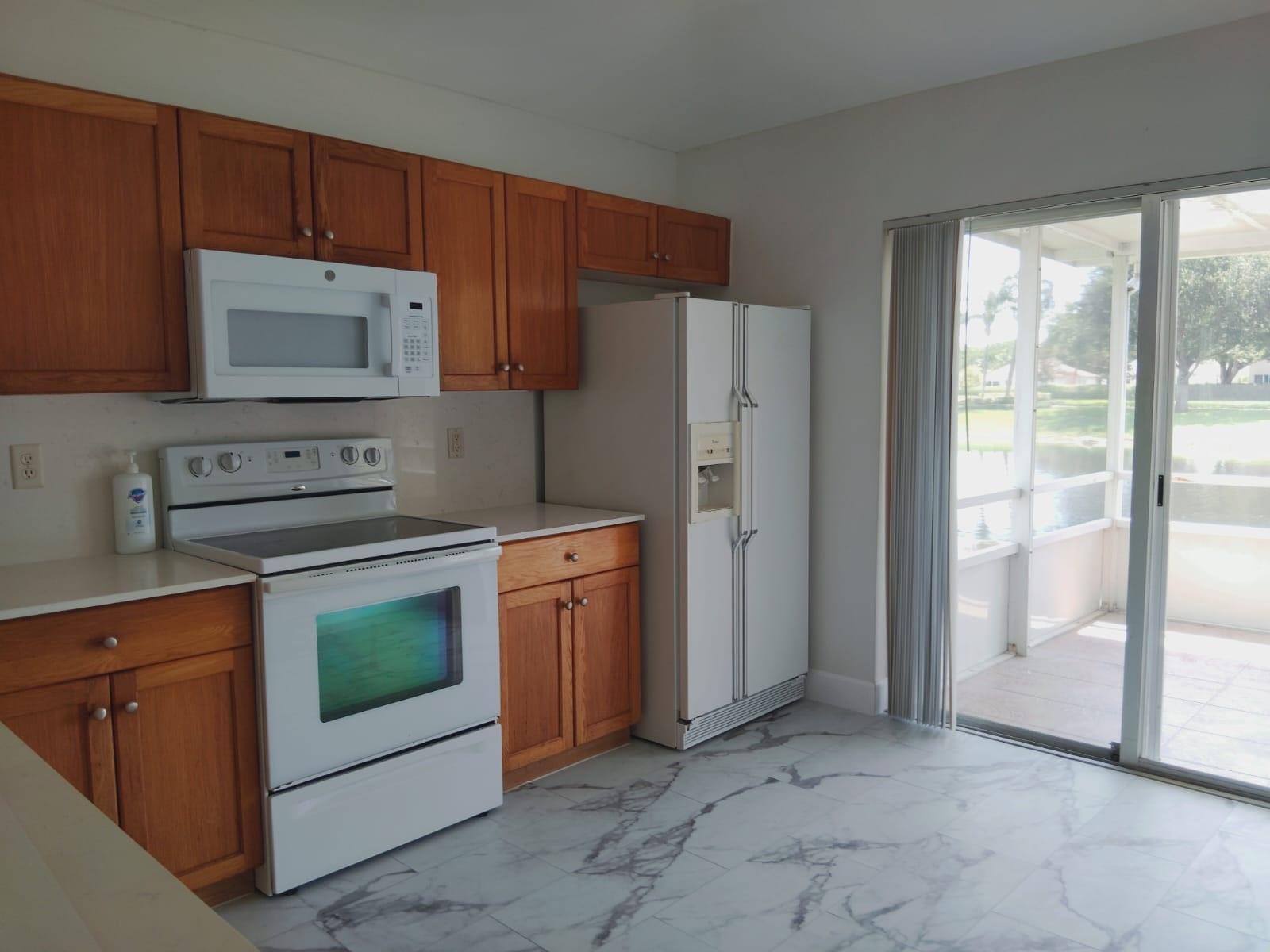 Beautiful and newly remodeled One-Story corner Villa with 3 bedrooms & 2 baths boasting a beautiful lake with east exposure to enjoy sunrises & fresh afternoons. Completely covered & screened oversized patio facing the relaxing lake & huge green garden areas. brand-new Quartz kitchen counters and brand-new flooring all throughout the home. The villa offers a spacious floor plan with neutral colors & laminate wood floors throughout. Close to great schools! All pets considered on individual basis with pet deposit. Needs HOA approval. Available June 1st, 2025. Includes basic Cable service.