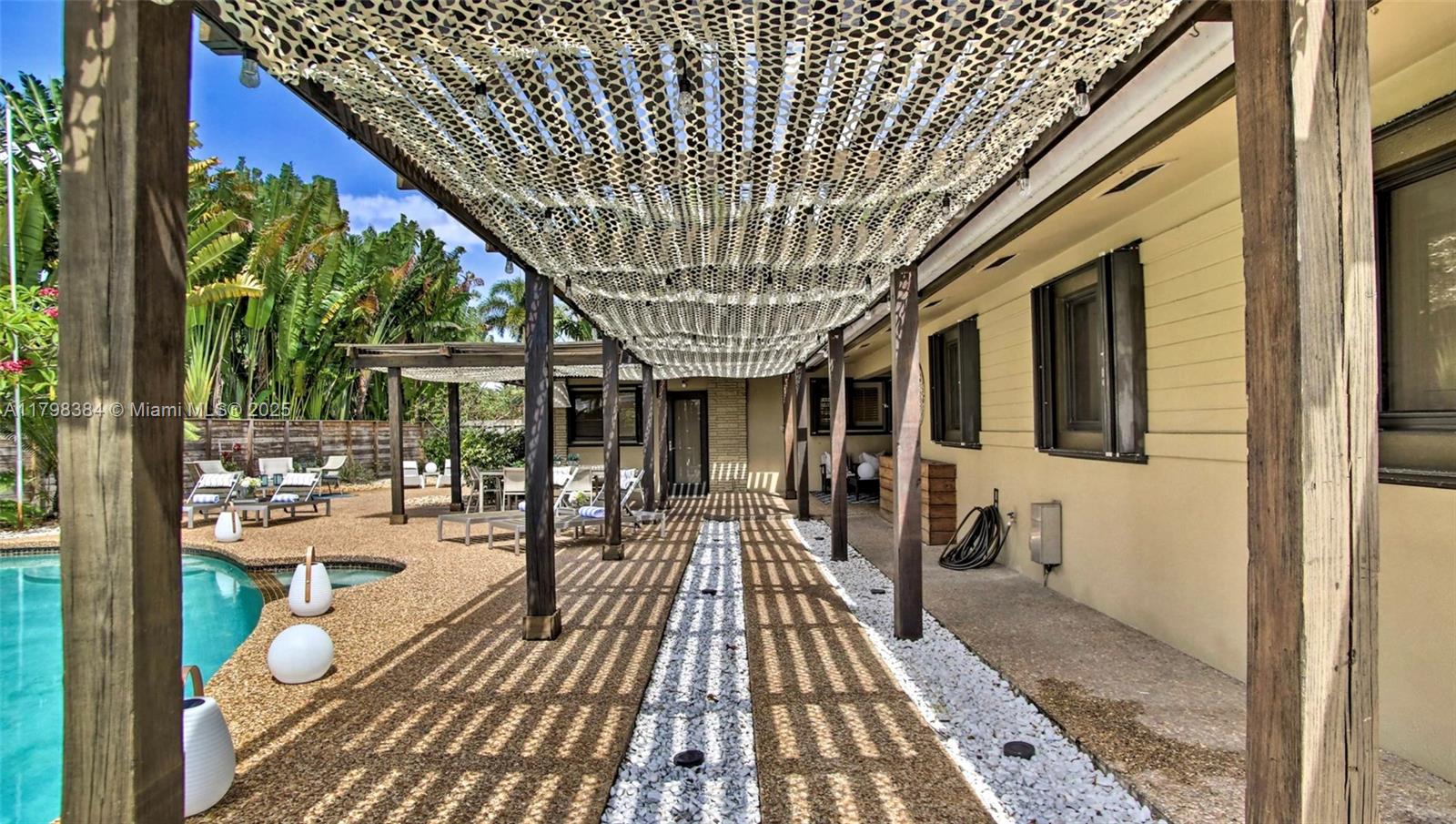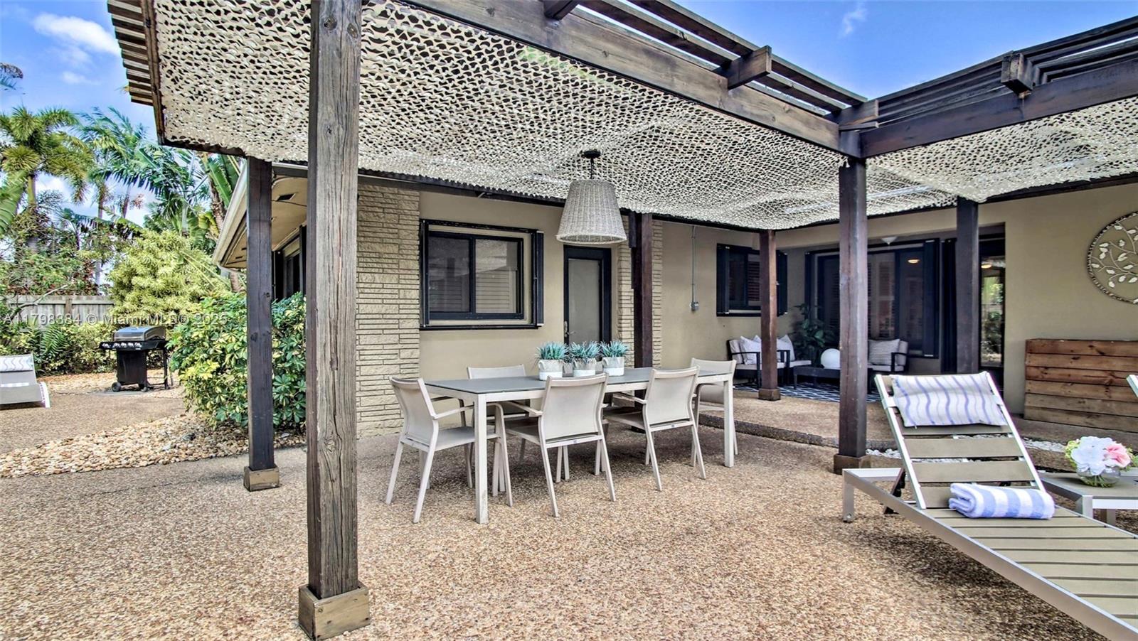 Escape to your own Private Resort in this stunning 4-bedroom, 3-bathroom home, complete with an oversized pool & expansive outdoor space perfect for entertaining. The open layout features a split floor plan with two primary suites, plus a convenient cabana bathroom for post-swim rinses. The kitchen offers ample storage, while the living room provides a comfortable place for relaxing. Situated on a huge corner lot, the outdoor entertainment area is a tropical paradise, filled with lush plants, trees, & vibrant flowers. Ideal for outdoor dinners & sunset cocktails or simply relaxing in the peaceful garden setting. Located just 5 minutes from the beach, close to shops, restaurants, cafes, and bars, this home offers the perfect for a relaxing vacation. Ask about rates & availability.