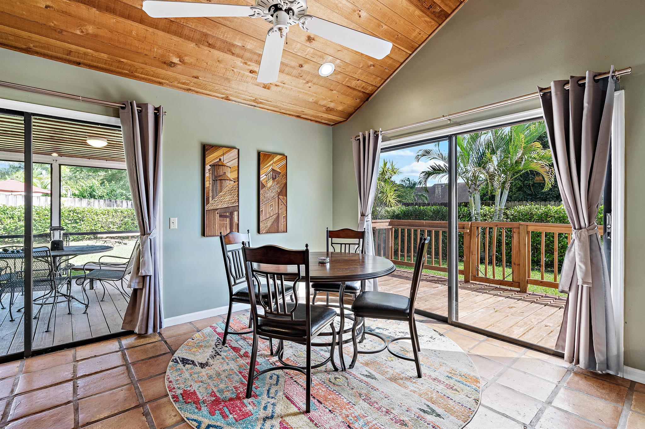 Great seasonal rental in the quiet Tree Tops community. This single family home features two bedrooms, a living room, dining room and huge fenced in yard with screened porch and wrap around porch. Tree Tops has a community pool and is centrally located in Wellington. This rental is nicely furnished, primary bathroom recently updated and is a lovely place to spend your winter months. Available starting August. Pets welcome with approval. Don't miss out on this one, it is great! The landlord is fantastic too!